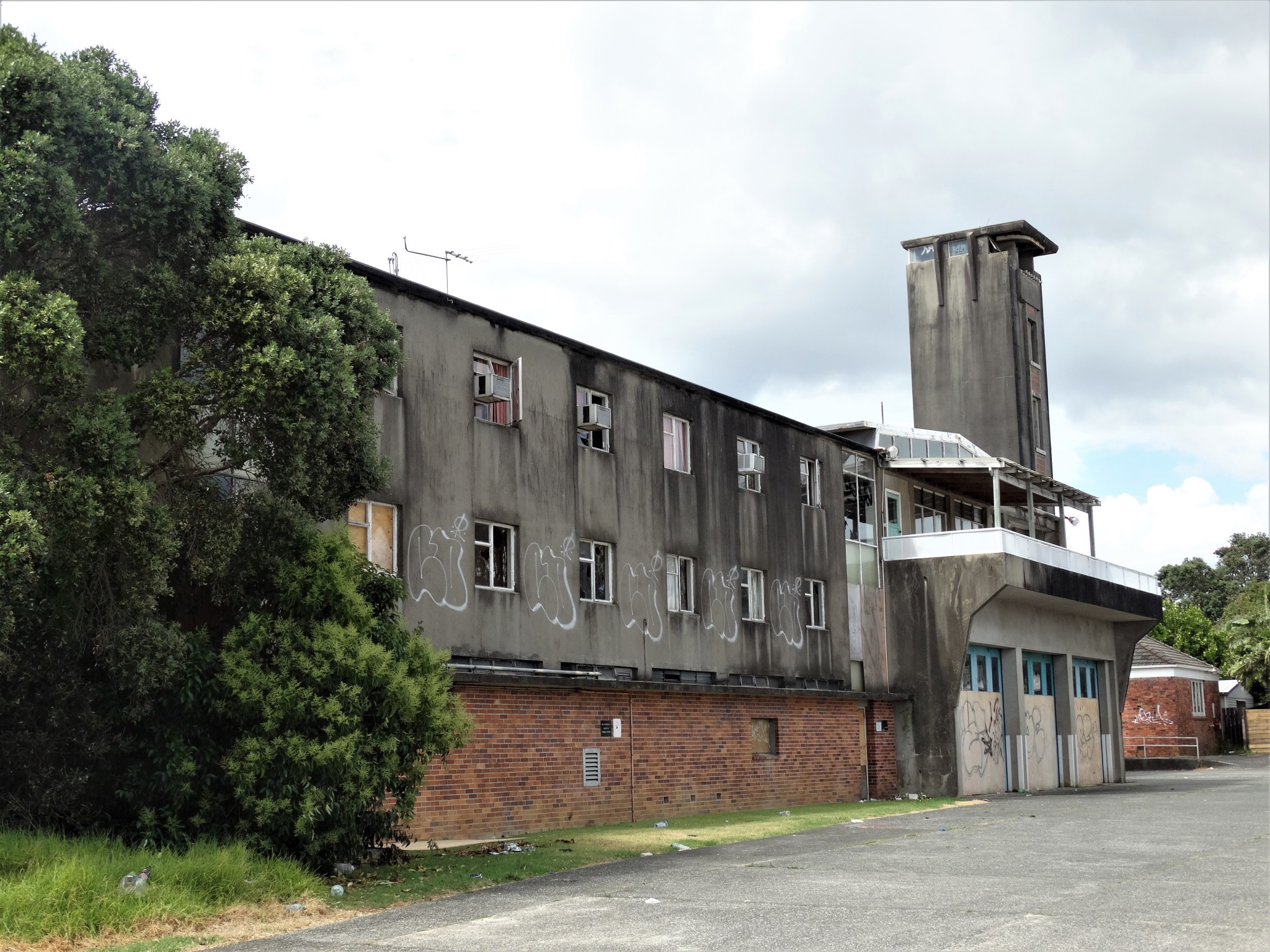 The Takapuna Fire Station and administration buildings include the original 1952 single storied fire station of 134 sq m; the larger multi-level 1959 fire station with accompanying training tower encompassing 1530 sq m; a 1972 fire training building and a double garage in the north western corner of the site.