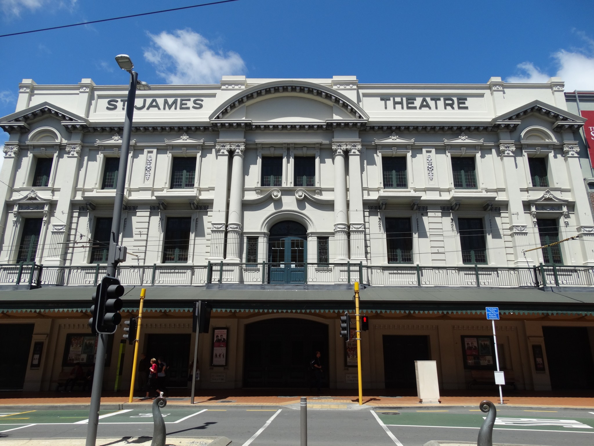 The St James Theatre, (previously known as His Majesty’s Theatre, and the Westpac St. James Theatre from 1997–2007) (shortened to “St. James” by locals) is a stage theatre located in the heart of NZ’s capital city, Wellington. The present theatre was designed in 1912 by Australian theatre designer Henry Eli White. The theatre currently faces on to Courtenay Place, the main street of Wellington’s entertainment district, opposite the Reading Cinema complex. The building is number 83.