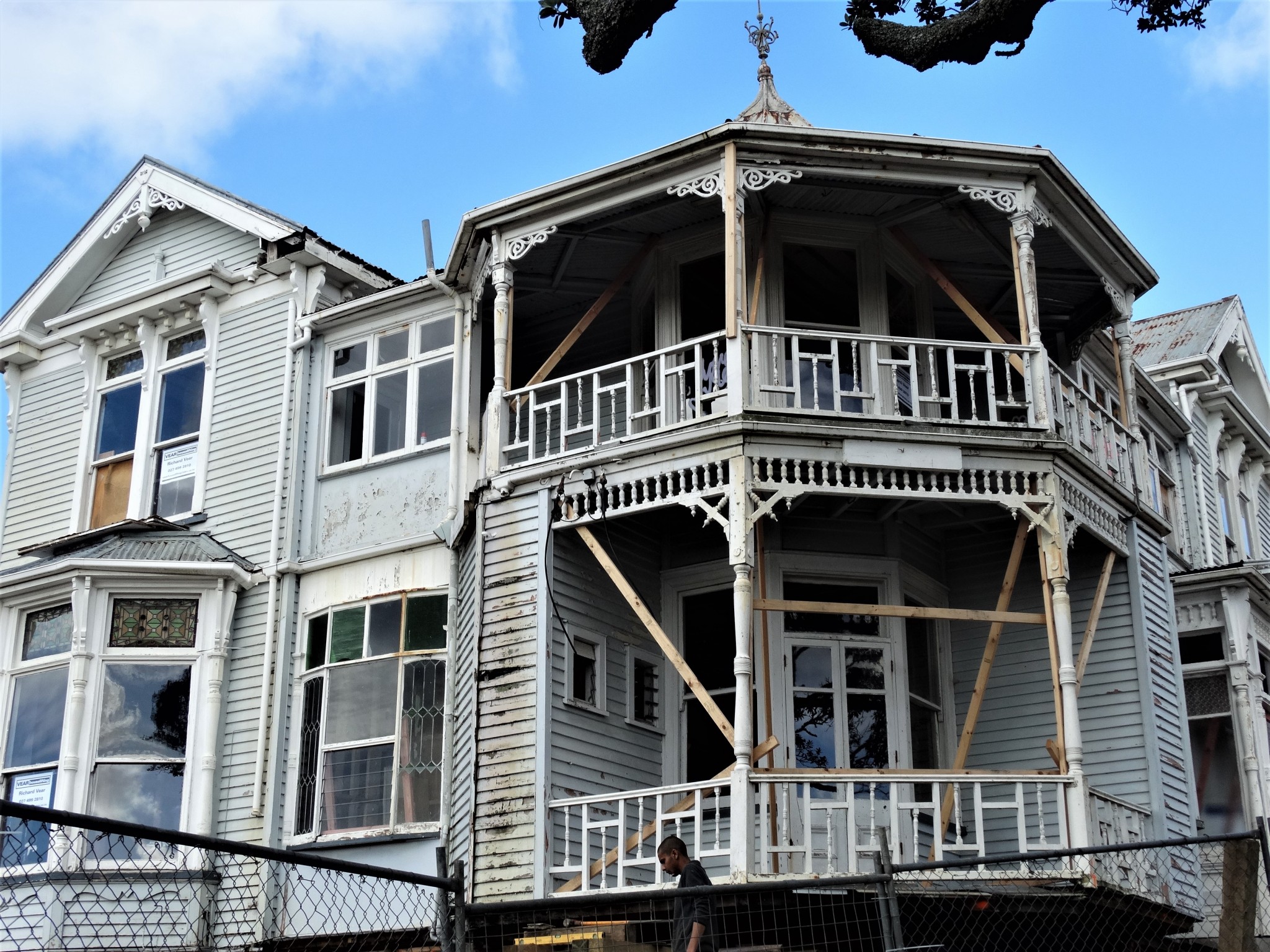 Stately but faded, this once-glorious historical home has been a long-standing presence on a massive 1246 square-meter site in Auckland’s central suburb of Freemans Bay, perched atop a large section alongside a huge mature pohutukawa tree.