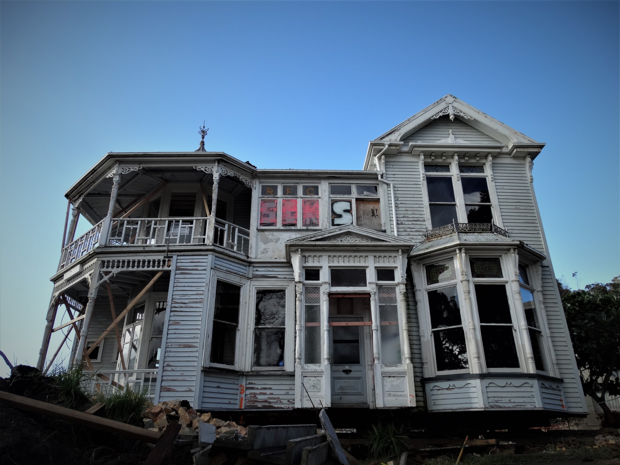 Consent has been granted to relocate the now historically recognised and registered 1880s Victorian architectural gem on the property, allowing for a single-level addition. The years have taken their toll on the house’s architectural facade, which now looks worn, its paint peeling and faded. The weatherboard cladding is rotting; the formerly magnificent turret has rusted and windows are painted over and boarded up.