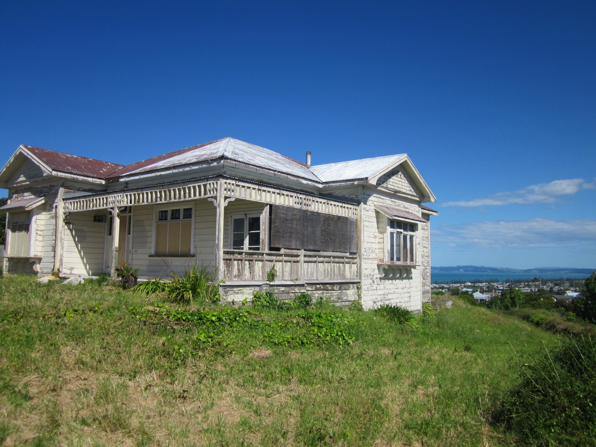 With a majestic view over Napier, this beautiful old villa stands out on a hilltop, open to the elements. Proud, though in need of some TLC.