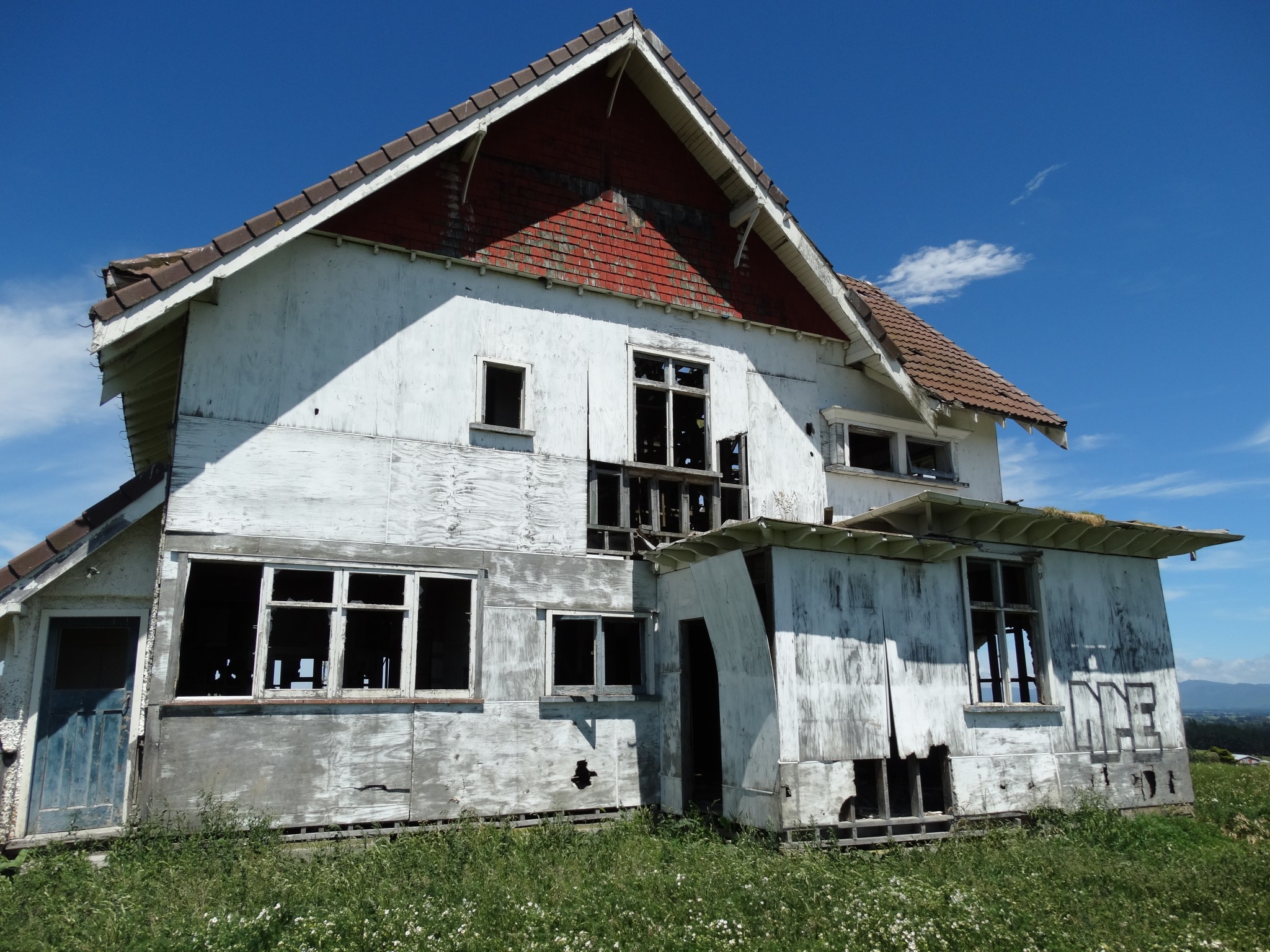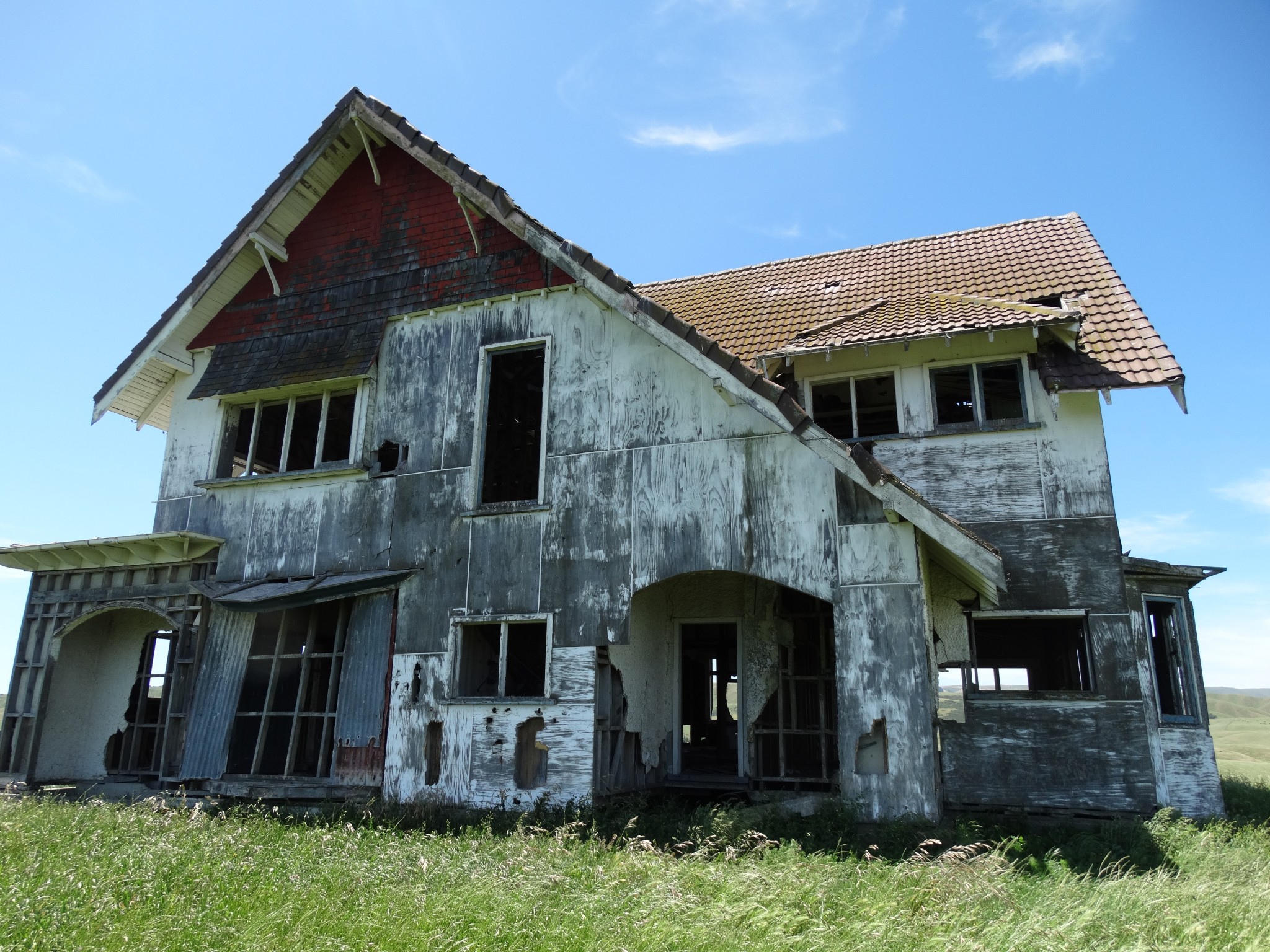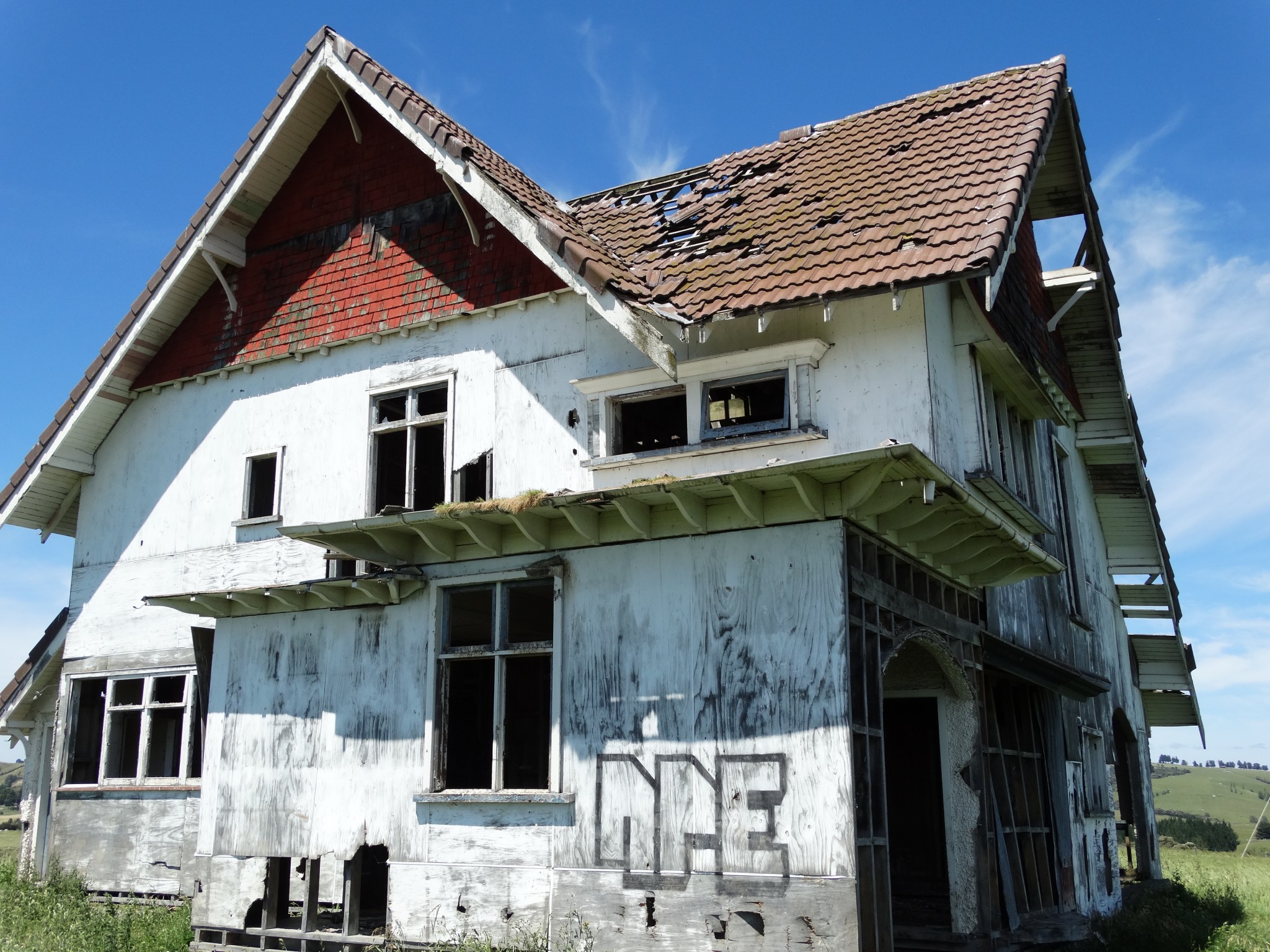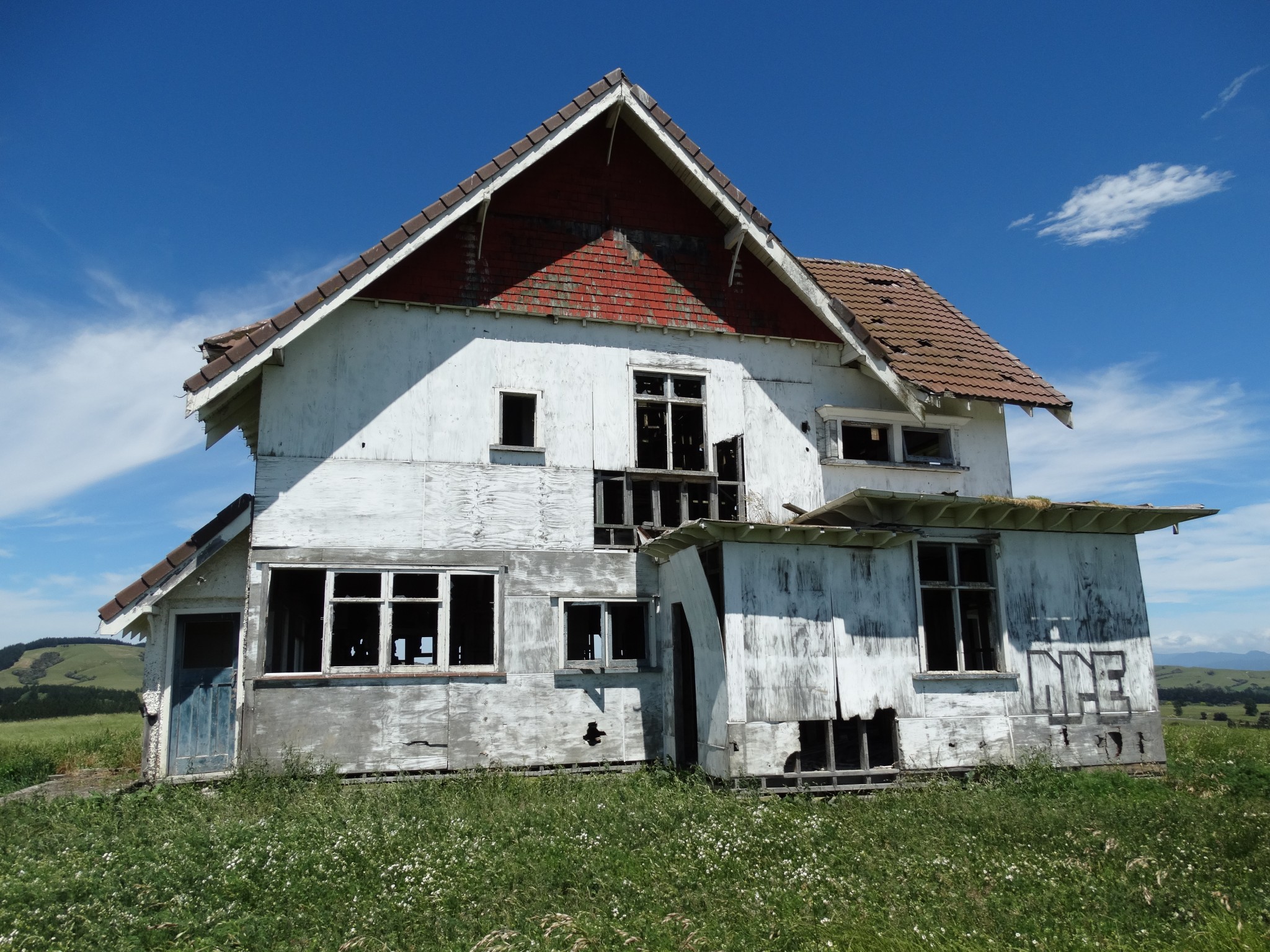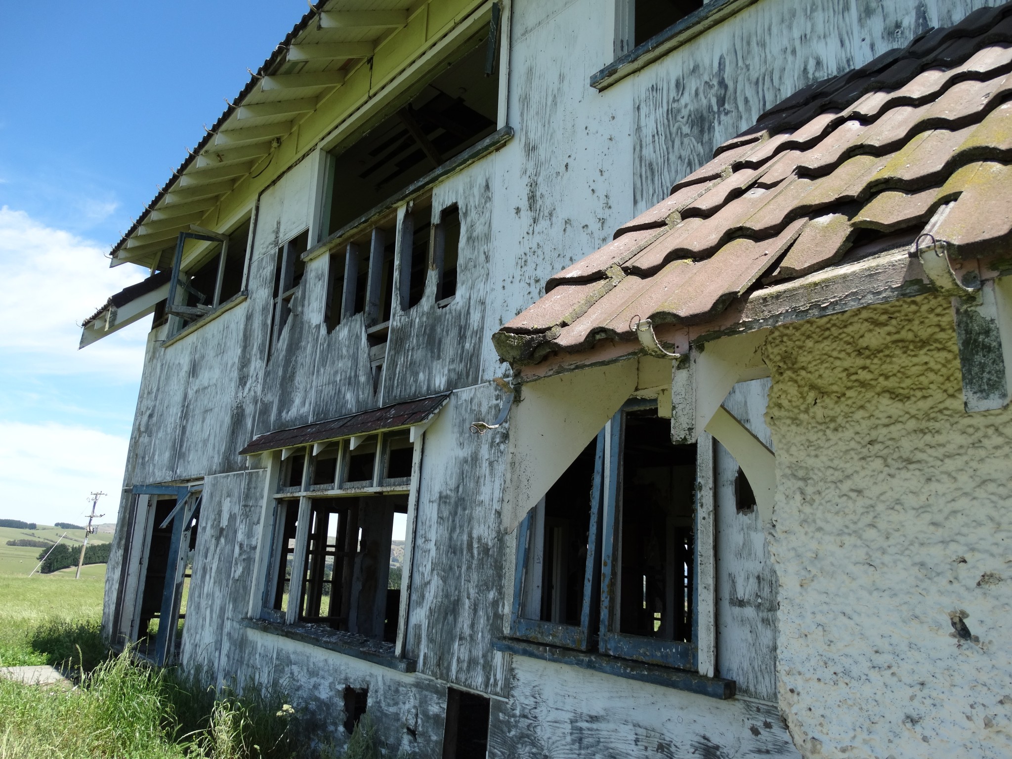 Perhaps the most frequently enquired after house in Wairarapa is a derelict mansion that sits atop a ridge in the Ahiaruhe district, across the road from Stonehenge Aotearoa. It must surely be the most photographed building in Wairarapa.