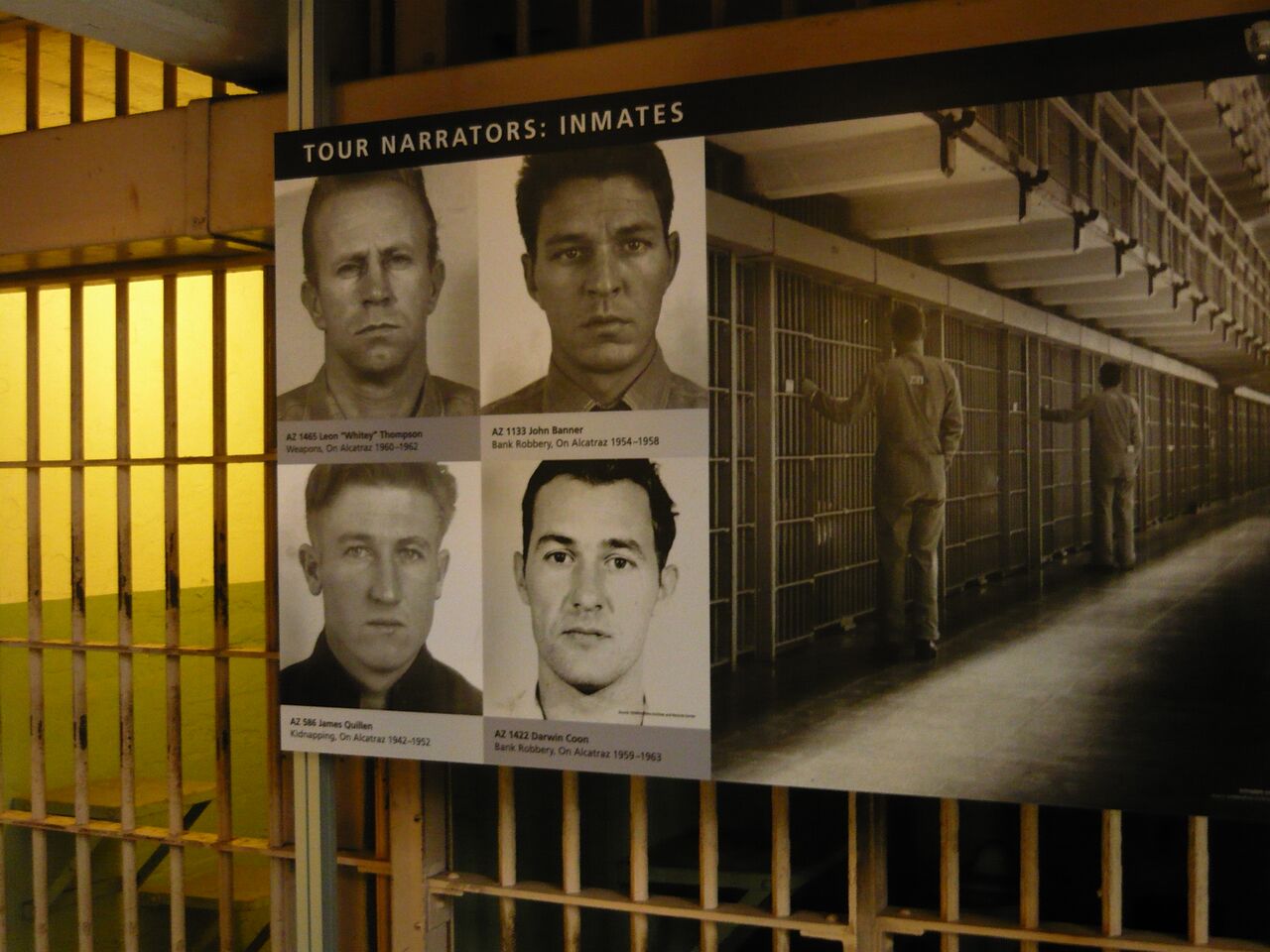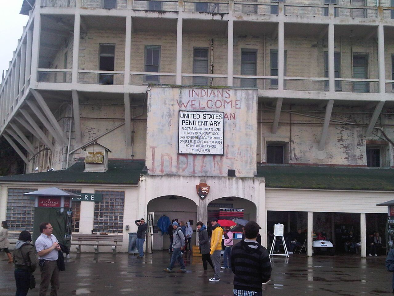 Alcatraz is a small island (of about 9 hectares) located in San Francisco Bay about 2.4kms from San Francisco, California. The island was originally developed with facilities for a lighthouse but was a prison from 1933 – 1963. Alcatraz Penitentiary was designed not for reforming prisoners, but for punishment and housed prisoners who had caused trouble at other prisons throughout the US. Most of the original prisoners were notorious bank robbers and murderers and over the 29 years it ran there were some famous prisoners housed there including Al Capone, Robert Franklin Stroud (the Birdman of Alcatraz), George “Machine Gun” Kelly, Bumpy Johnson, Rafael Cancel Miranda (a member of the Puerto Rican Nationalist Party who attacked the United States Capitol building in 1954), Arthur R. “Doc” Barker, James “Whitey” Bulger, and Alvin “Creepy” Karpis (who served more time at Alcatraz than any other inmate). At the time of Acatraz’s closure the prison housed 250 inmates and 60 family members and staff resided on the island.