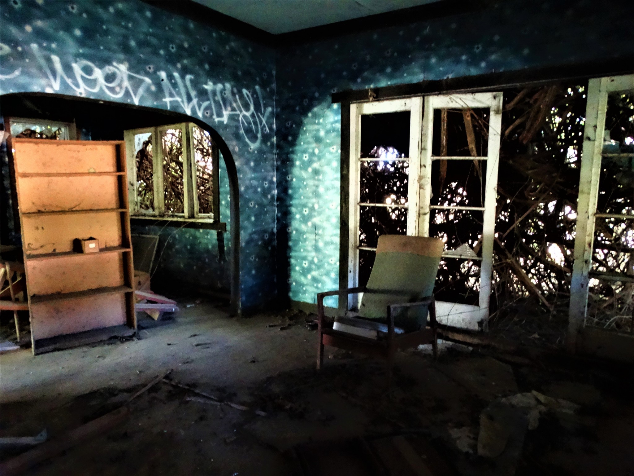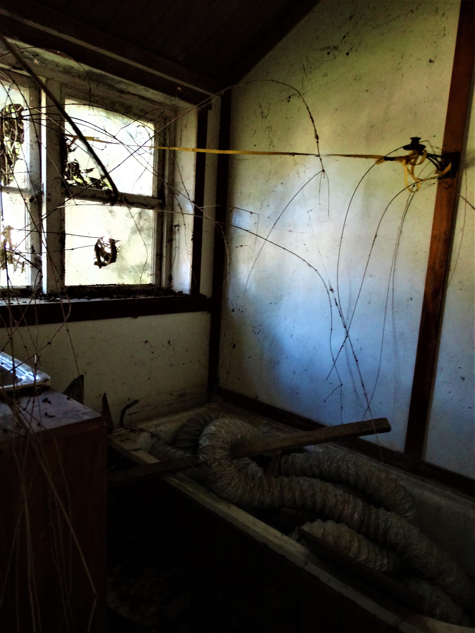 Almost drove past this old thing. I spotted a glint of reflecting light off a window; pretty much the only thing visible from the road. This derelict old farm house has been completely engulfed by the surrounding folliage. Still, had to stop and say Hello…..Im guessing it doesn’t get many visitors these days.