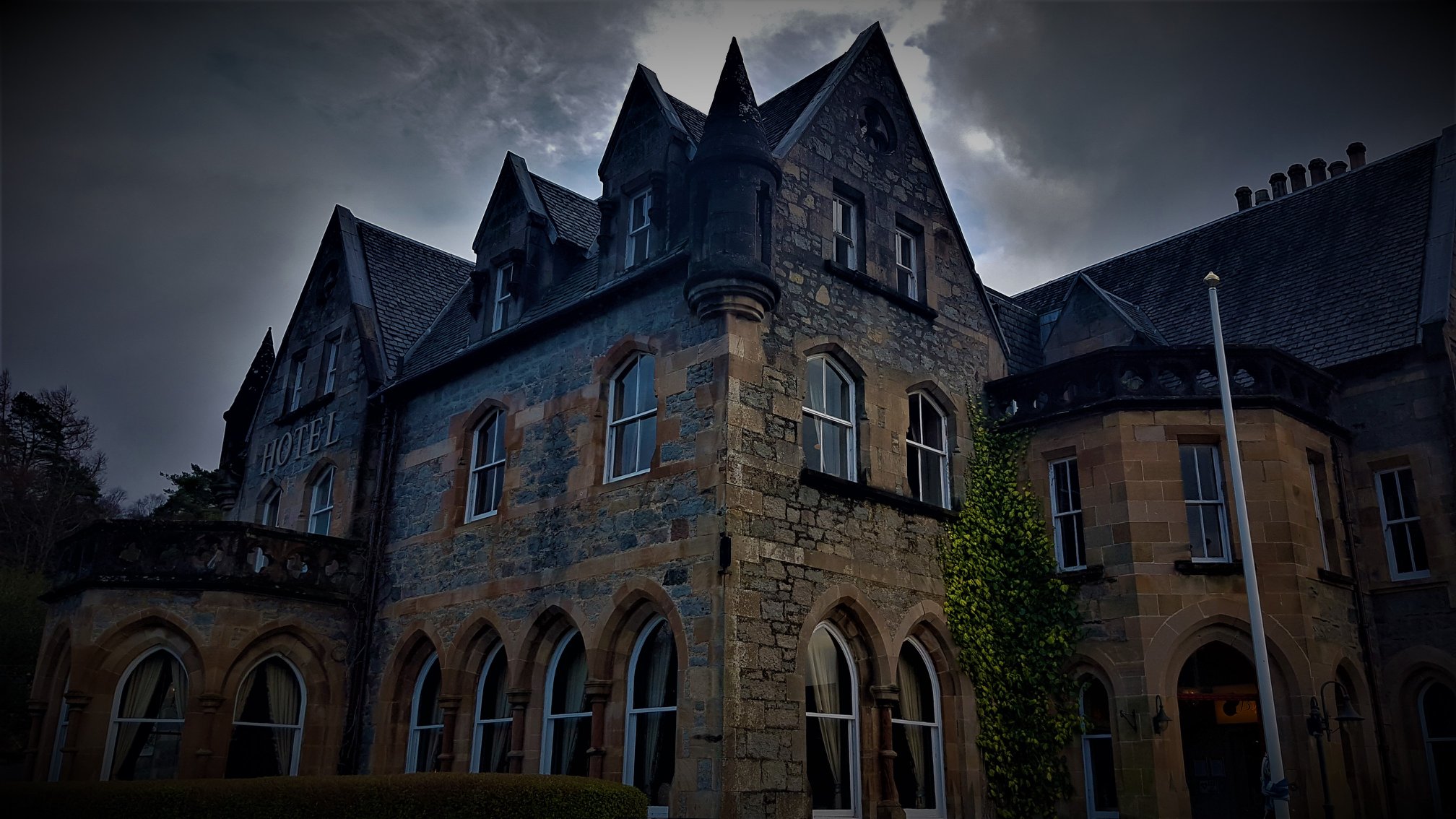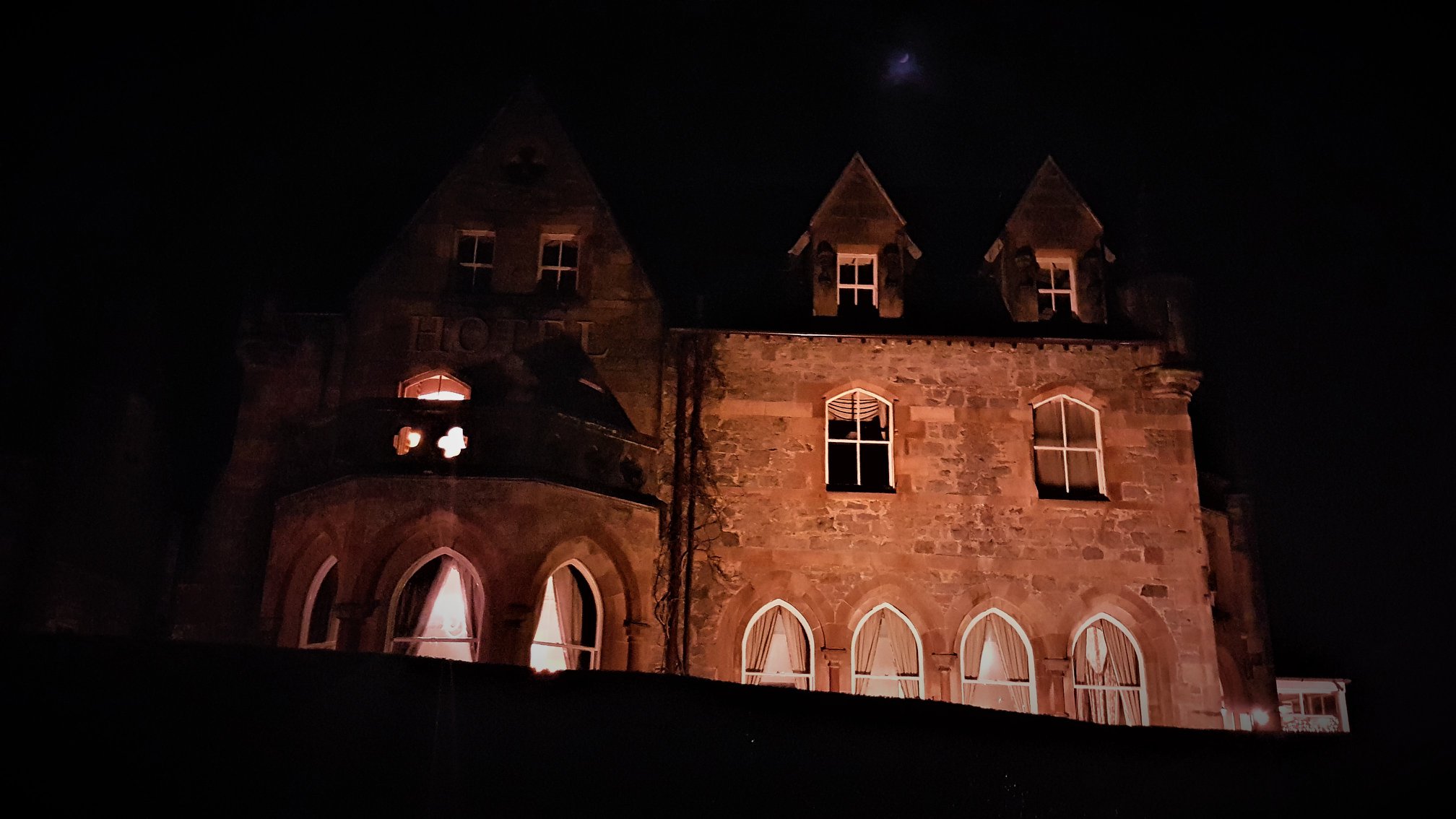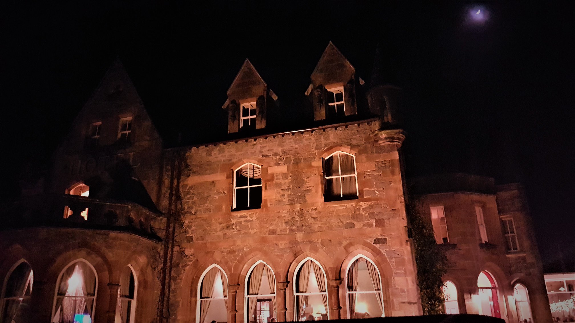 Another night, another allegedly haunted hotel ticked off our itinerary. This one was the Ballachulish Hotel in Glencoe, in the Highlands of Scotland. Lots of stories from this place. Everything from shadows, footsteps and ”touchings”, to a mysterious ghostly young boy and an elderley woman seen often in corridors and rooms. Aside from a few creaks from the floorboards above (we assumed there was someone staying above us and didnt check….poor investigation move; I know, I know) and the odd car driving past, it was a quiet night and an easy, full sleep. Oh, we also got to meet Diego, the hotel’s resident cat. – Mark