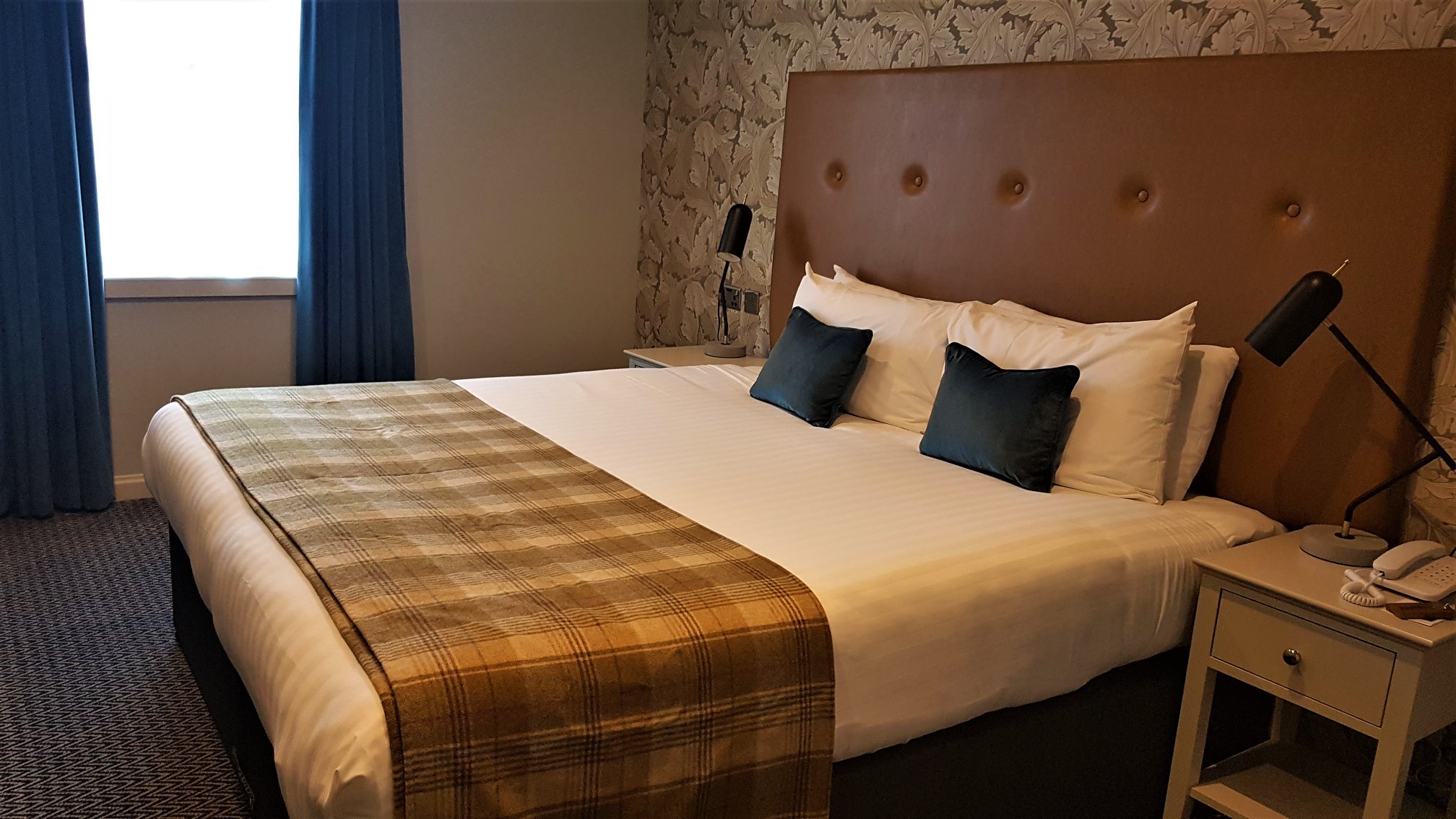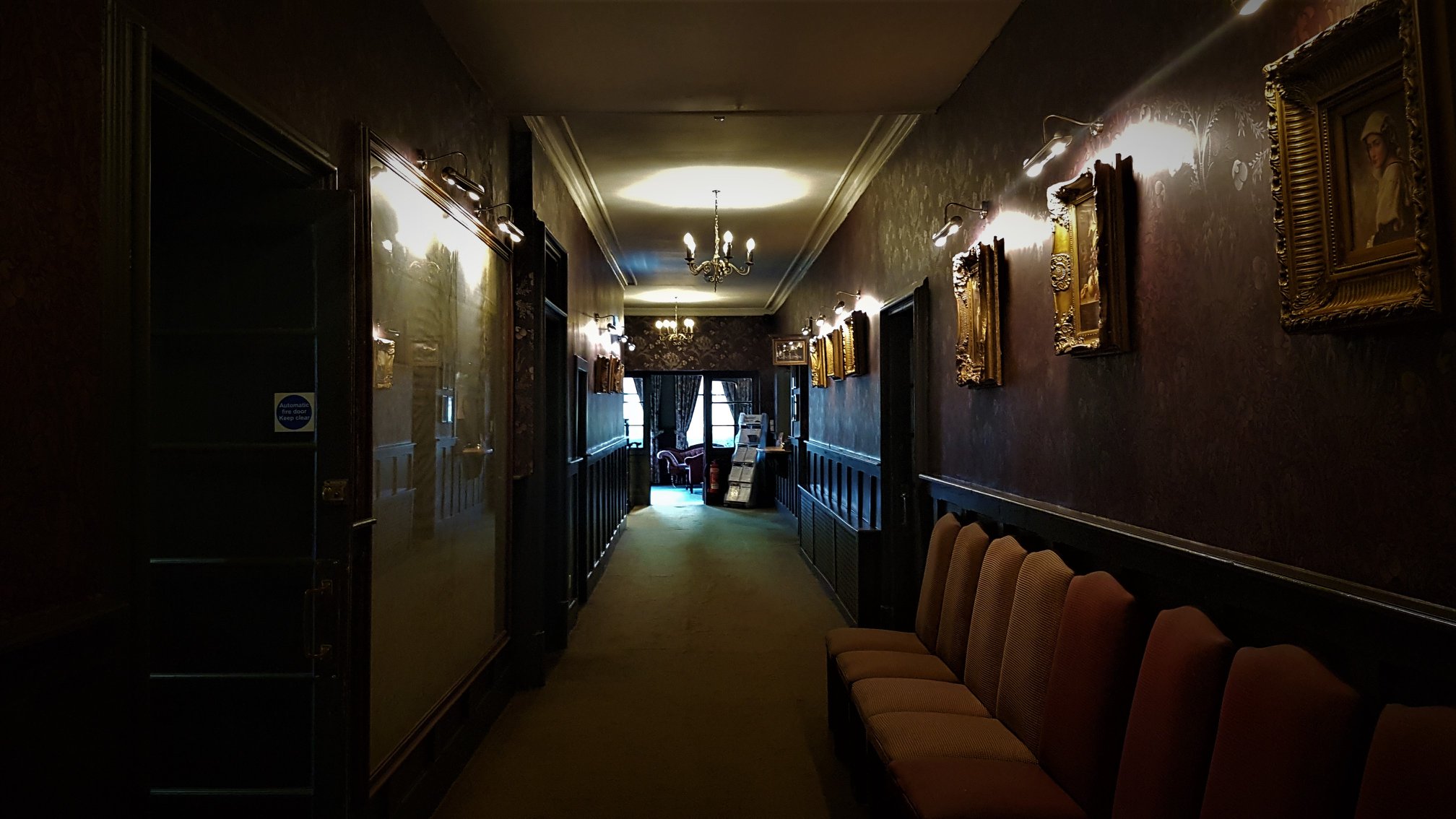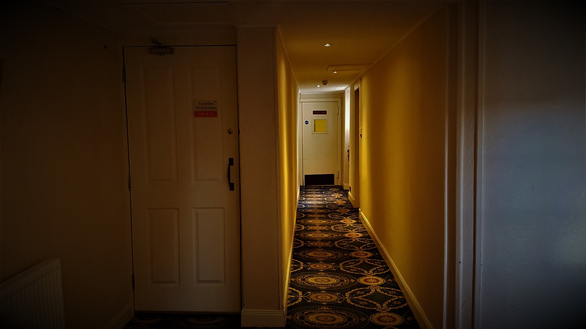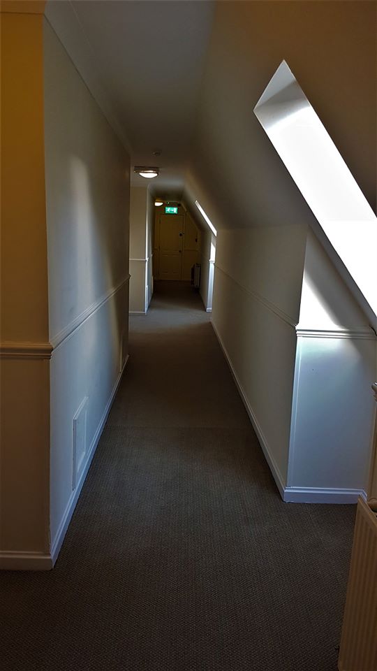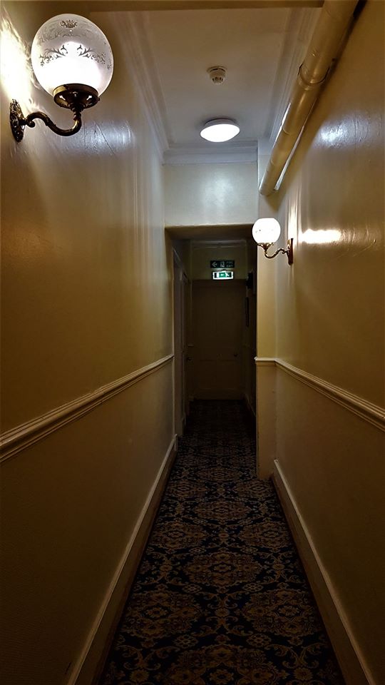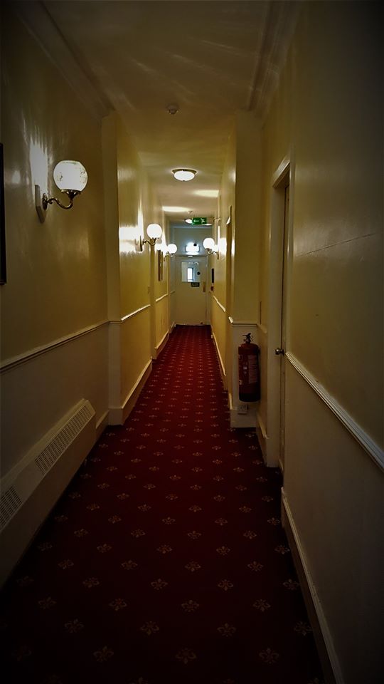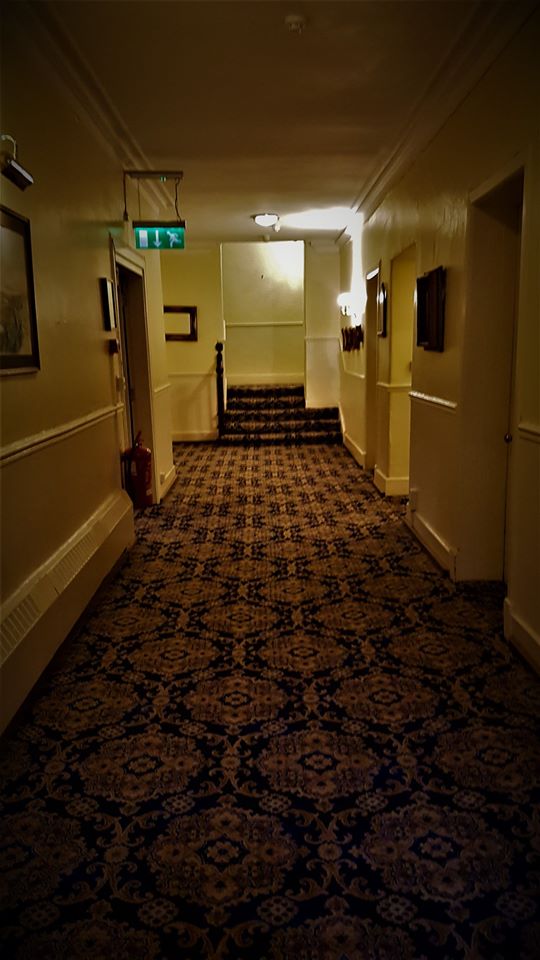 My friend and I were on a bus tour through Scotland and Ireland and we stayed at this hotel , we had an odd encounter after we retired to our room . We both were reading and we kept hearing this loud footsteps come down the hall and then stop outside our door. We figured it was just other guests because our hallway had 5 rooms including ours. But it seemed very unlike the guests staying in other 4 rooms who were also on the bus trip , this happened about 5 times over next few hours. We also heard people talking in the room beside ours only to find out no one was actually in that room , the other 3 rooms was a family( a father in one , 2 sisters in another and 2 sister in laws in 3rd, they took the father on the trip because his wife had died) . I am glad we didn’t know the hotel had a reputation for being haunted till after the fact or it would have been a very long night.