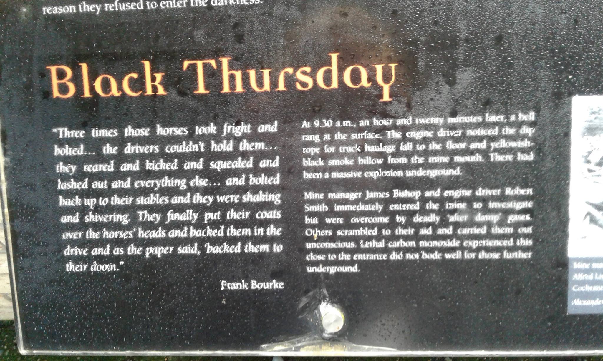 Rescuers entering the mine after the explosion found themselves suffocating on the afterdamp gas and had to return to the surface, often unconscious, carried by other rescuers, however the determination was such to find the bodies, and to find any survivors, that the rescuers – mostly miners from nearby mines – would insist on returning to the airless mine as soon as they had been revived on the surface.