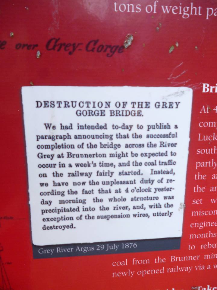 Today, a monument to the men and boys (aged from 13 to 70) who perished at the site, the ruins of the Brunner Mine and the support industries around it can still be seen while visiting the site. It is an interesting 2 km walk and can be easily done within an hour (although we spent a lot longer there). Although the actual entrance to the mine is now covered by thick bush and to this day emits toxic gas you can still see the remains of the mine, the coke ovens, brickworks and other support buildings. There is also a historic suspension bridge (built in 1876) to cross the Grey River and link with a walk up to the historic Tynsdale Mine chimney.