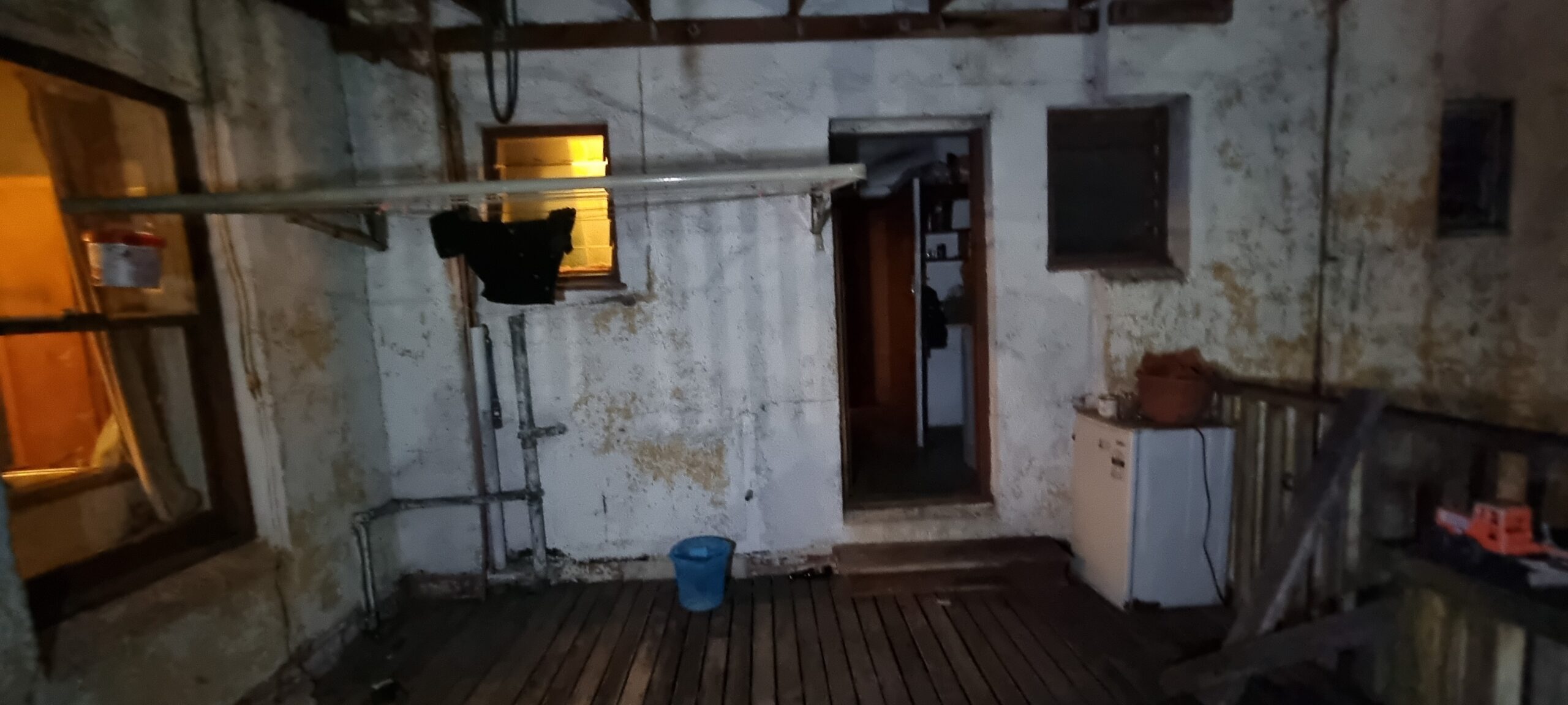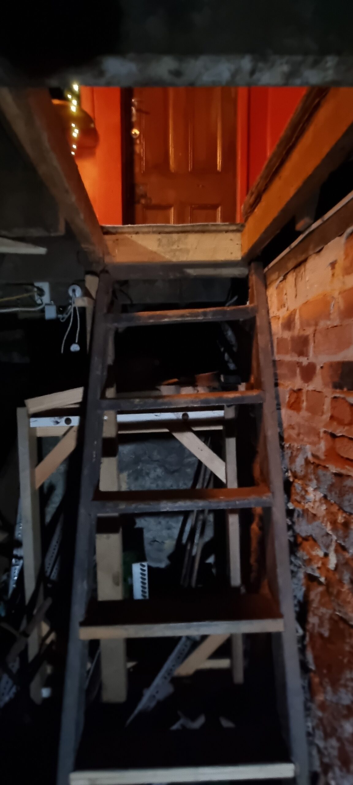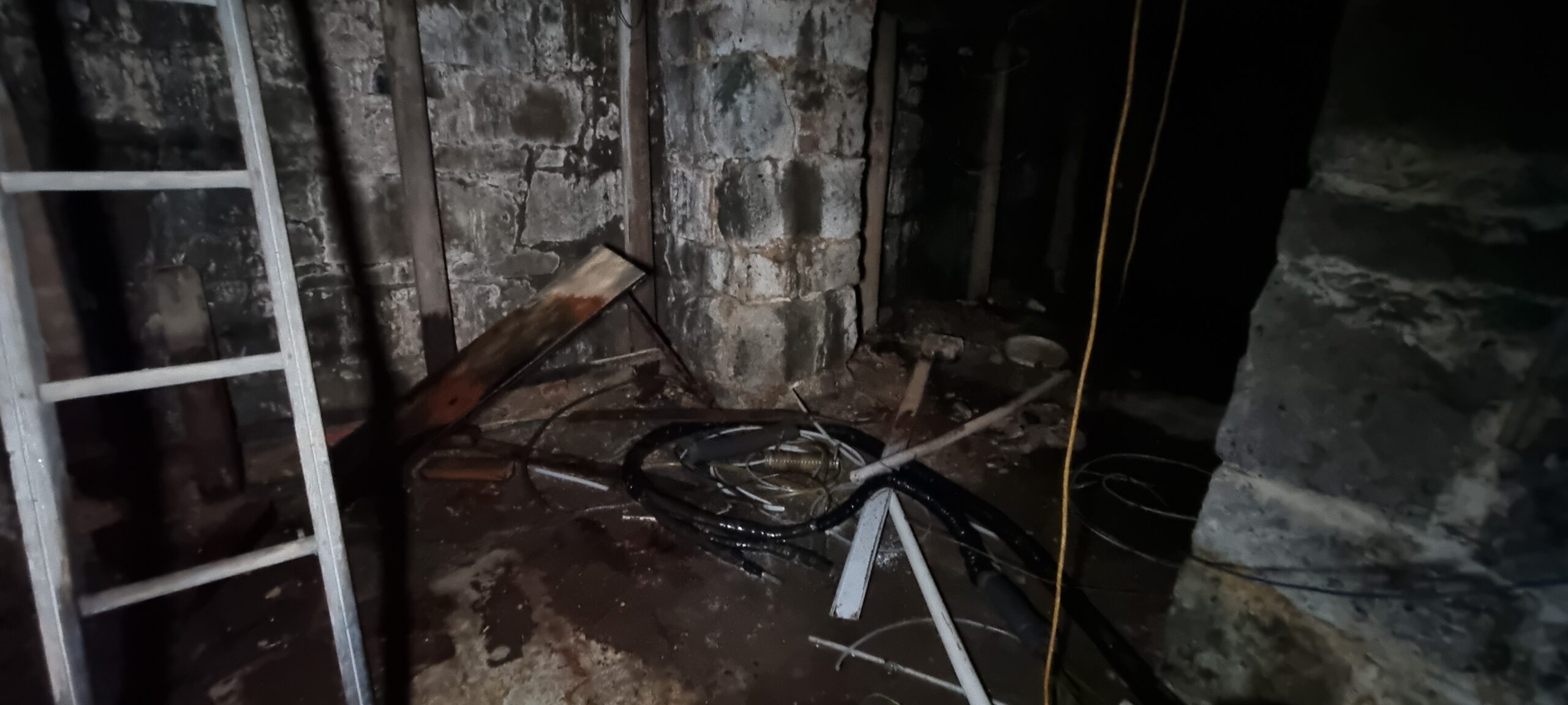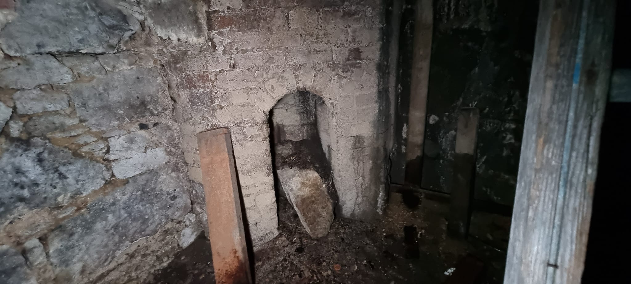The basement was used as a cellar to store the beer kegs and is accessible via two trapdoors. One is behind the bar for closer access to the keg chiller. The tunnel entrance in the basement is now bricked up and inaccessible.