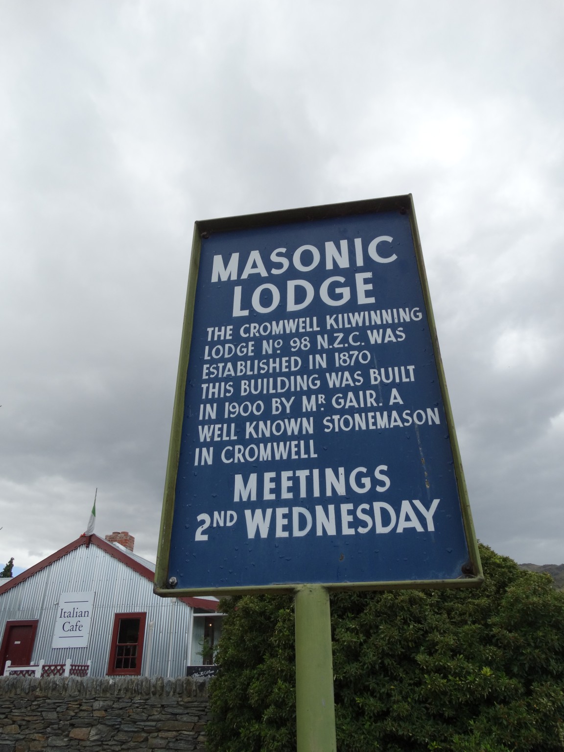 The Cromwell Kilwinning Lodge No. 98 was founded in 1869 for the Freemasons of Cromwell, with the Lodge building constructed in 1900. The Lodge is a small but impressive building, constructed of local stone set in the old part of Cromwell, immediately adjoining ‘Old Cromwell Town’ which is the surviving section of the largely flooded historic Cromwell business district.