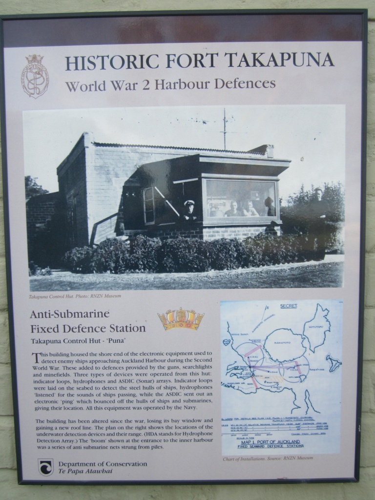 The Observation Post for these guns is located above the old fort. Auckland’s World War II harbour defences included underwater detection devices and an anti-submarine boom