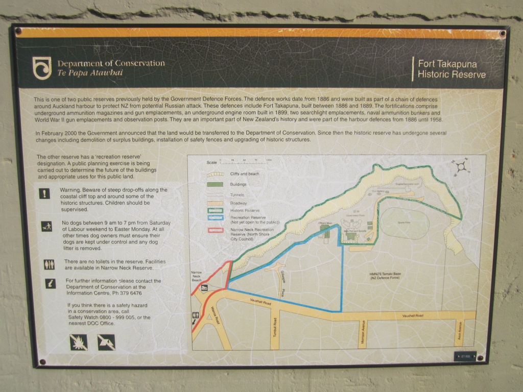 This area has been known by a number of names: Fort Cautley, HMNZS Tamaki, and Narrow Neck. The original military title for the area is ‘Fort Takapuna’, named for the point on which it stands.