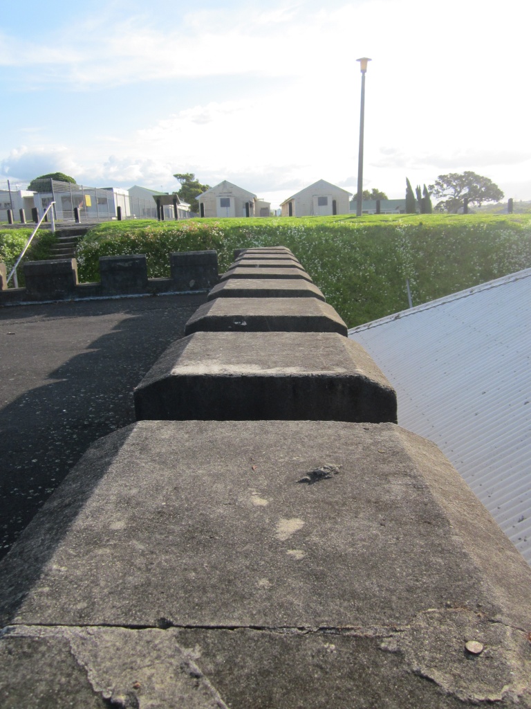 The concrete slide on the south eastern side of the ditch was built as part of the tramway used to move the ammunition around. The magazines next to the road by the playing fields were also built at this time. The fort was the main naval munitions store until 1937, when the Kauri Point magazine complex was built.