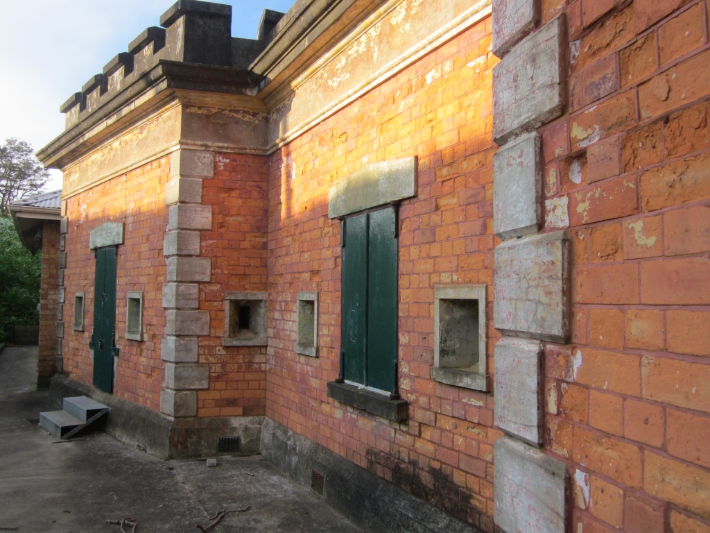 At this time there were 172 tons of ammunition stored in the old fort. The engine room is the underground building with a small courtyard on the south-western point of the Head. This room and the searchlight on the point were built in 1899.