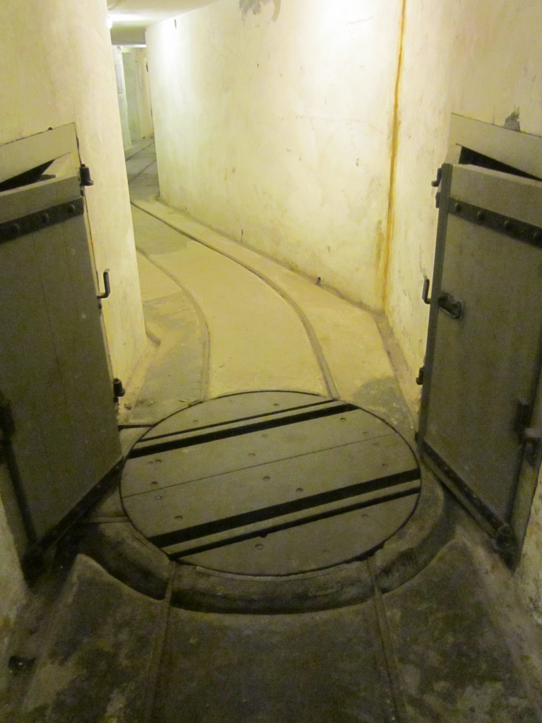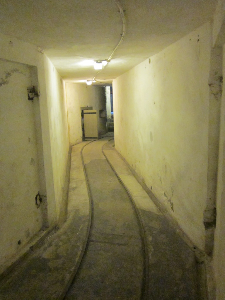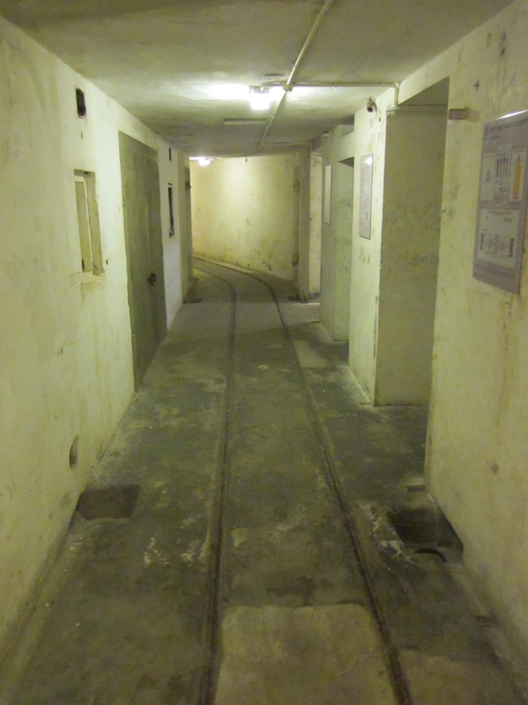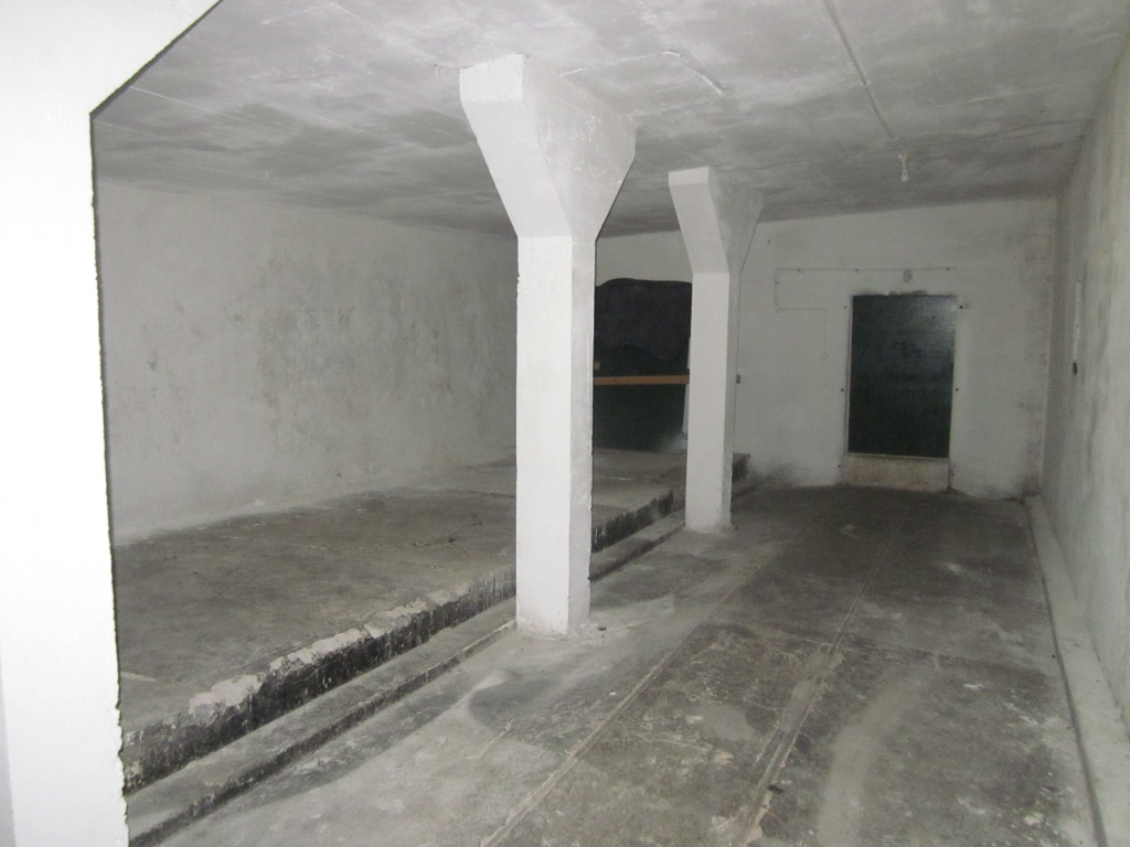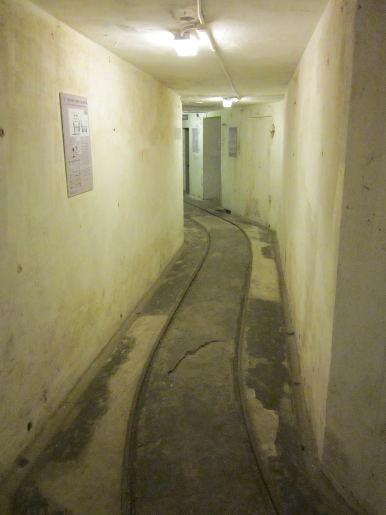 Between the gun pits there is an underground magazine for storing ammunition. On the floors of the tunnels you can still see the railway tracks on which the ammunition trolleys ran.