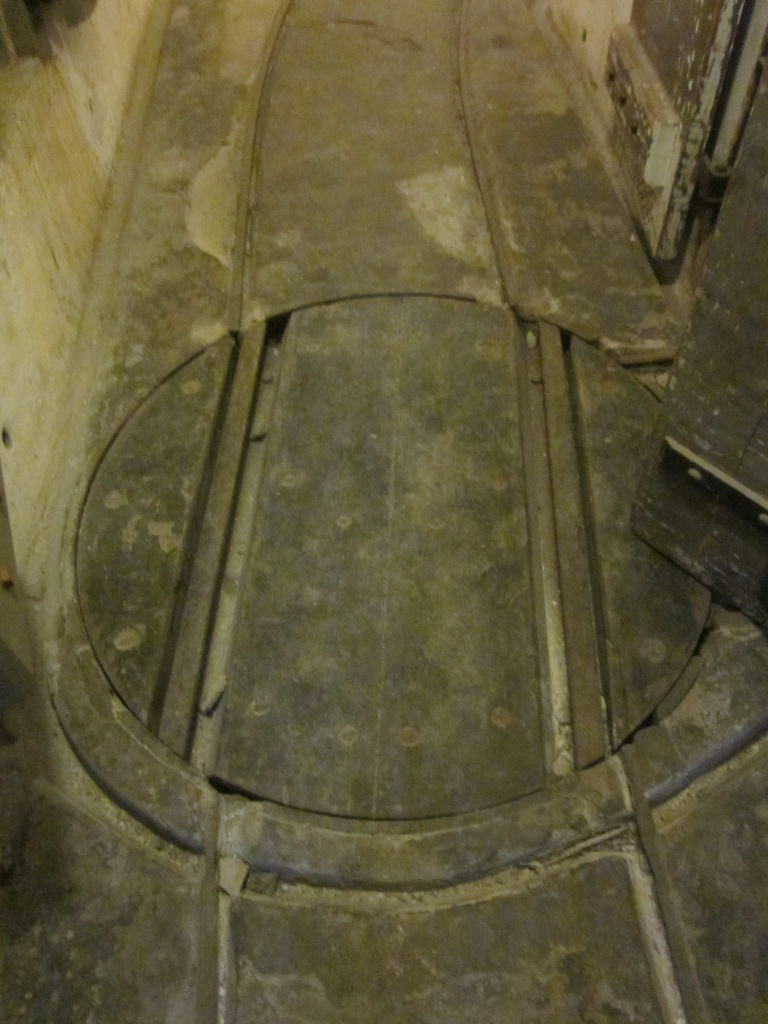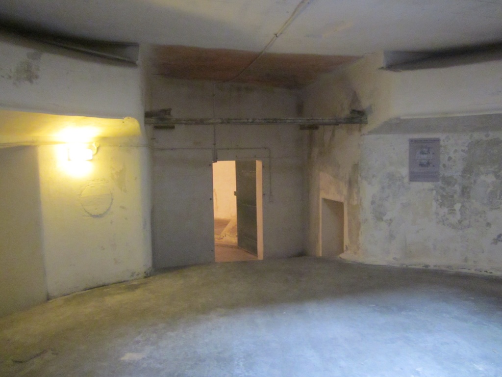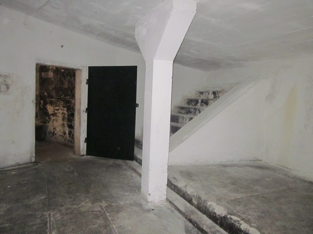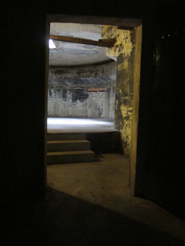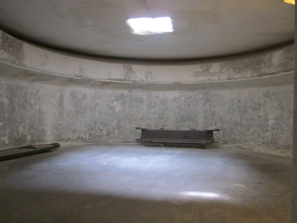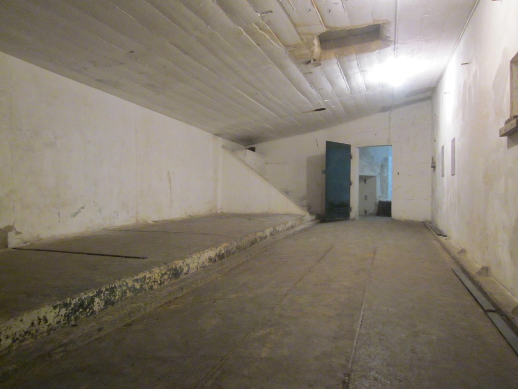 Between the gun pits there is an underground magazine for storing ammunition. On the floors of the tunnels you can still see the railway tracks on which the ammunition trolleys ran.