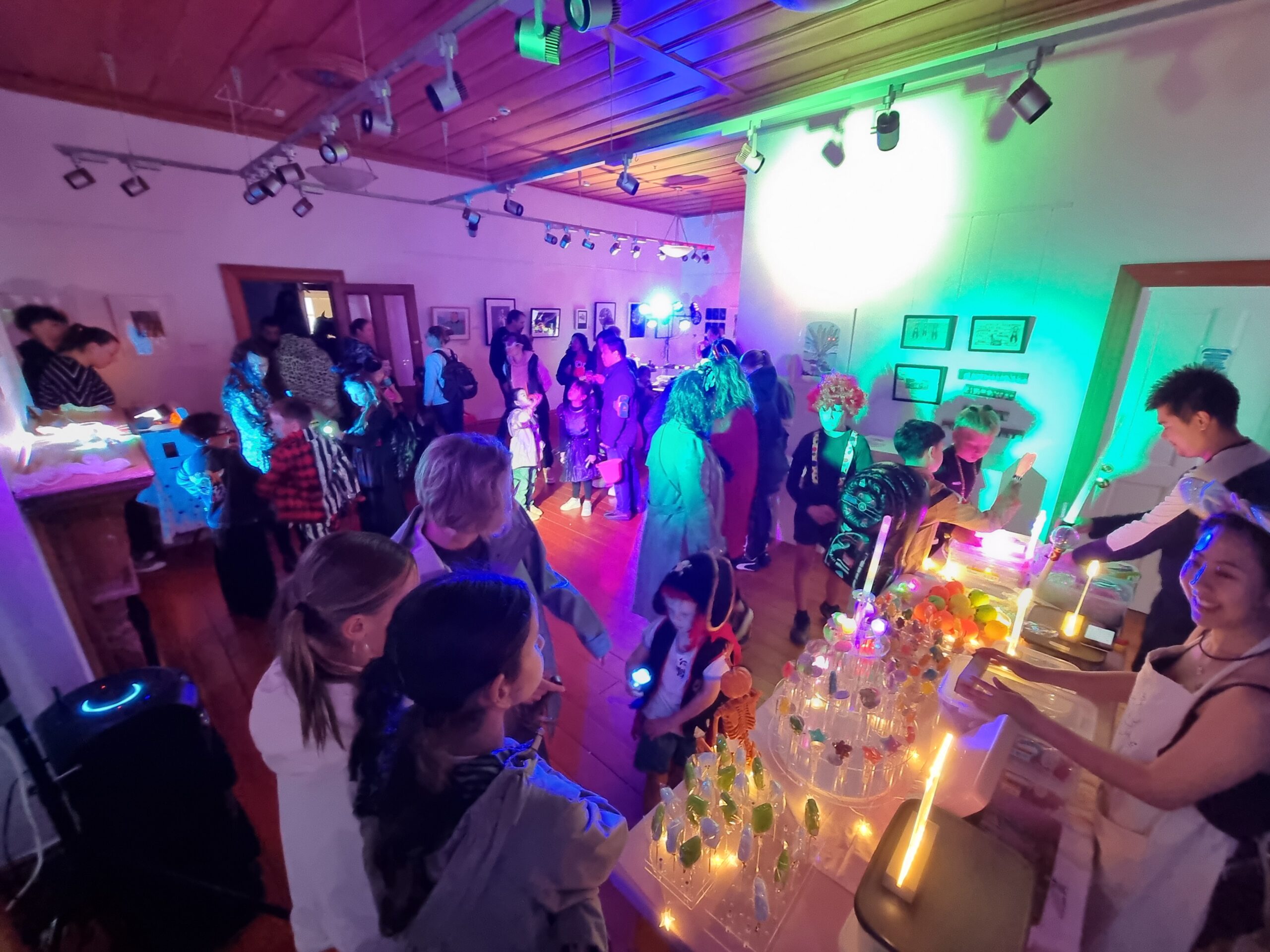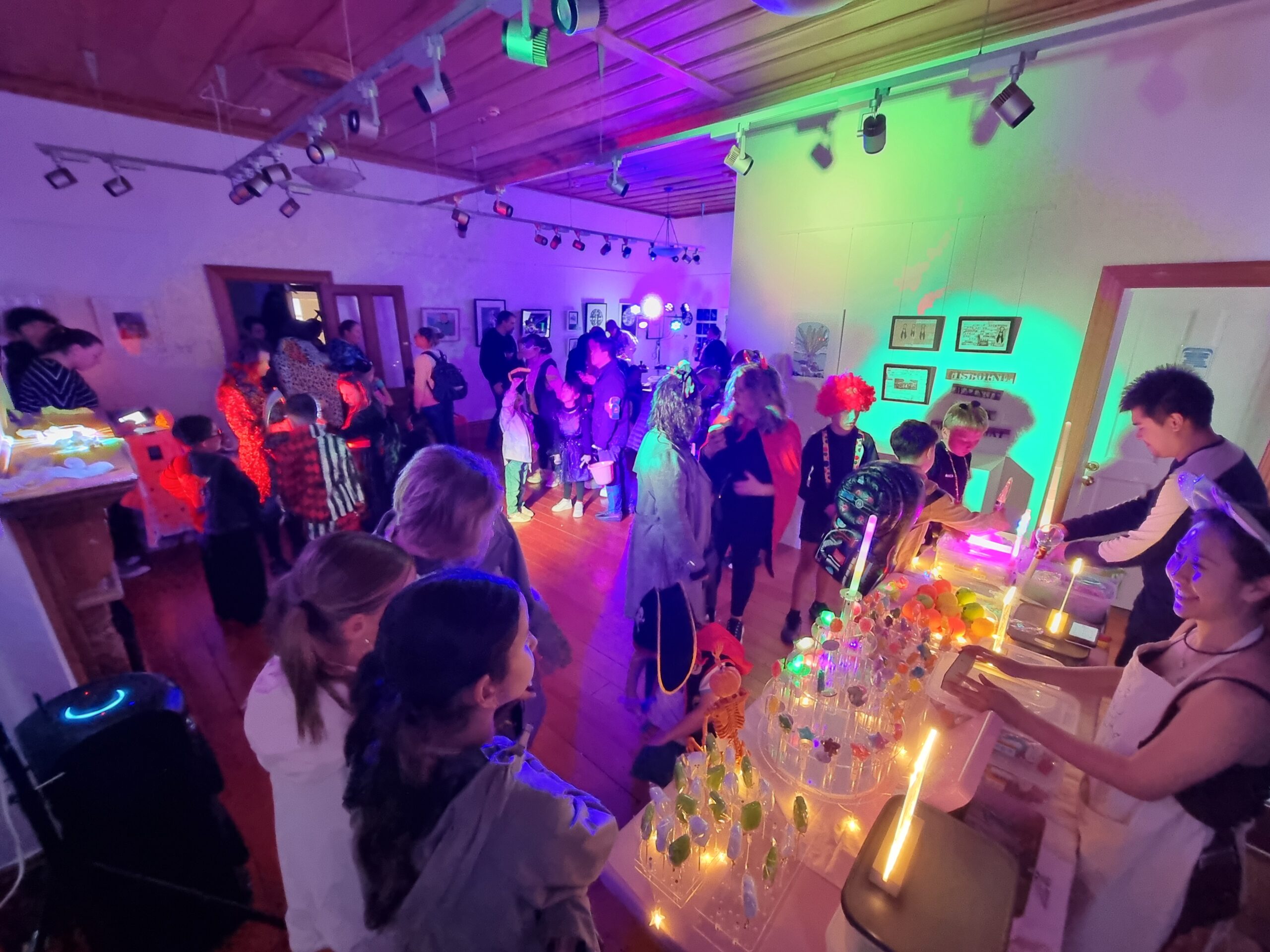 Wow, what a night! Hundreds of costumed and sugar-fuelled kids (and adults) headed to one of our favourite research locations, the Lakehouse Art Centre in Takapuna, for their annual “Lights Out” Halloween event. The rain certainly didn’t seem to put anyone off coming, either. The energy was high, and the squeals of joy were loud. It was a fantastic night, and we were continuously bombarded with questions from the curious throughout, which is always welcomed and encouraged. Thanks to all those who came to hang out with us and filled the room to capacity for our team talk / Q&A session. Great fun!