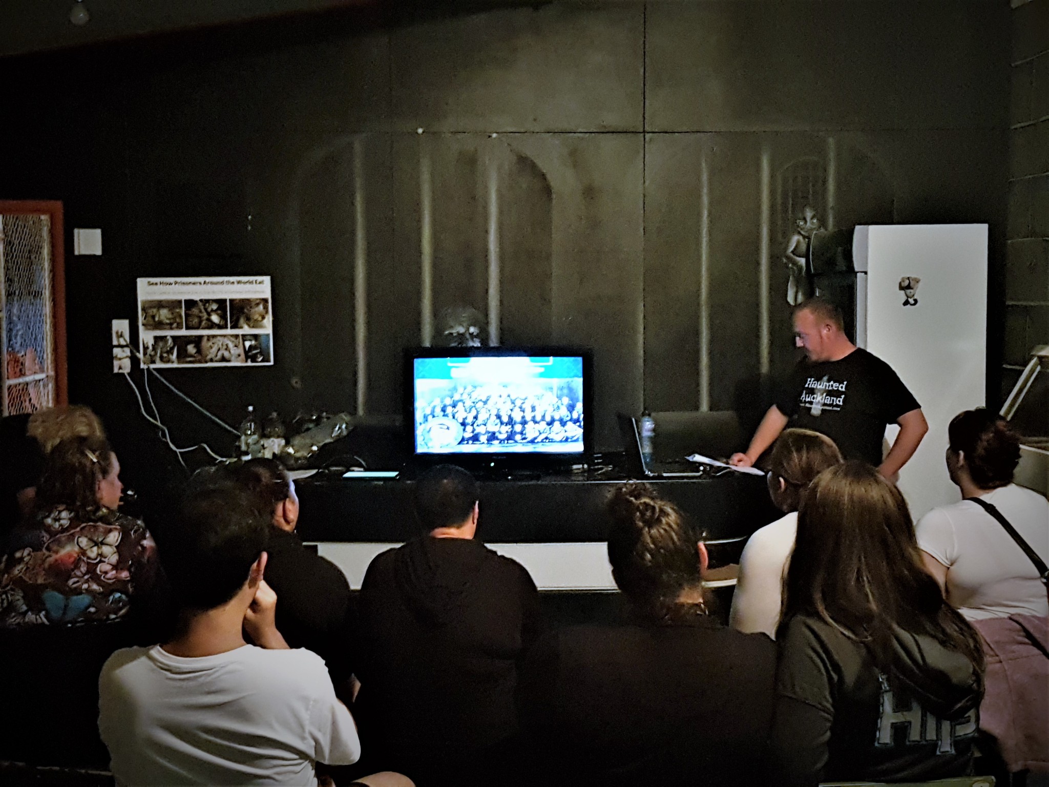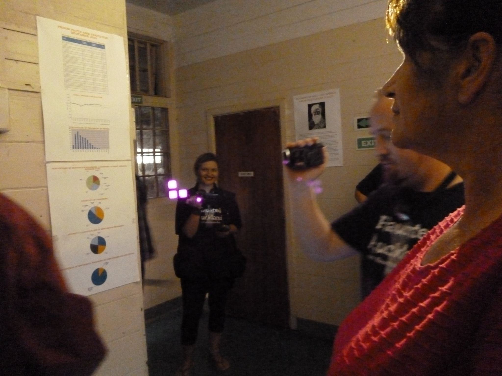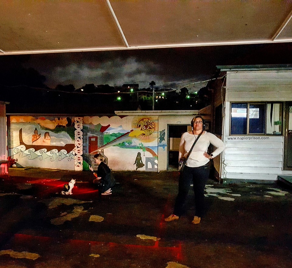 The team roadtripped its way back down to the beautiful Hawkes Bay region once again to spend the night at the mighty Napier Prison. We were running a public ghost hunt event that night and when everyone had gone home, we spent the next few hours in investigation mode. It was a long day / night, but well worth it. The team had a great fun day driving there; stopping in at cafes and bars for food, visiting the local cemetery, old Napier Hospital, as well as taking in the sights during the many toilet, food, drink and photo opp stops along the way. A huge thank you to Shannon and Ali at the prison for being so helpful with the event and organising access. A big shout out to those that attended; especially those that came along and faced their fears. Here’s a selection of photos taken by the team of our journey, a few team frolics and the ghost hunt event. Click on a pic to enlarge and scroll through the gallery. Enjoy!