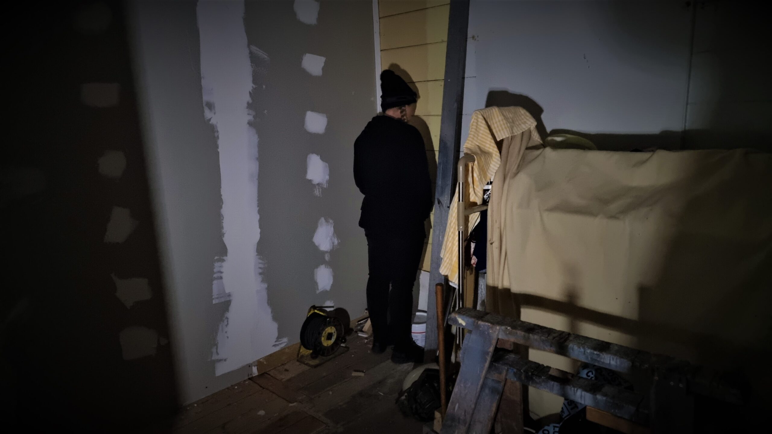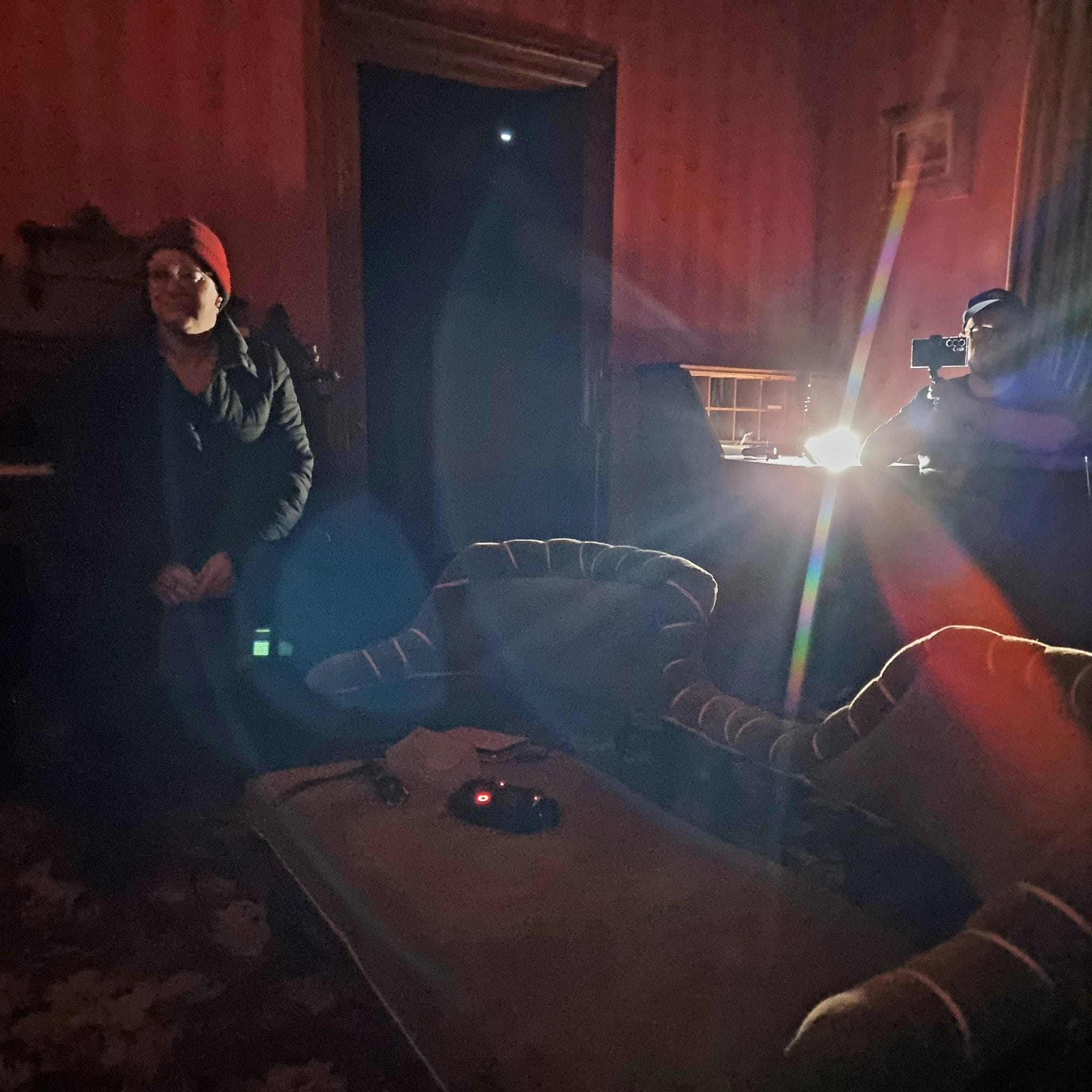 Mark stayed in Hec’s Barn, Sam amongst the art and historical archives, Natasha in the Courthouse and Aimee in Hedley House. You’ll have to wait to hear if there were any findings, or whether any of us were visited during the night, as we’ve got a lot of video and audio to scan through.