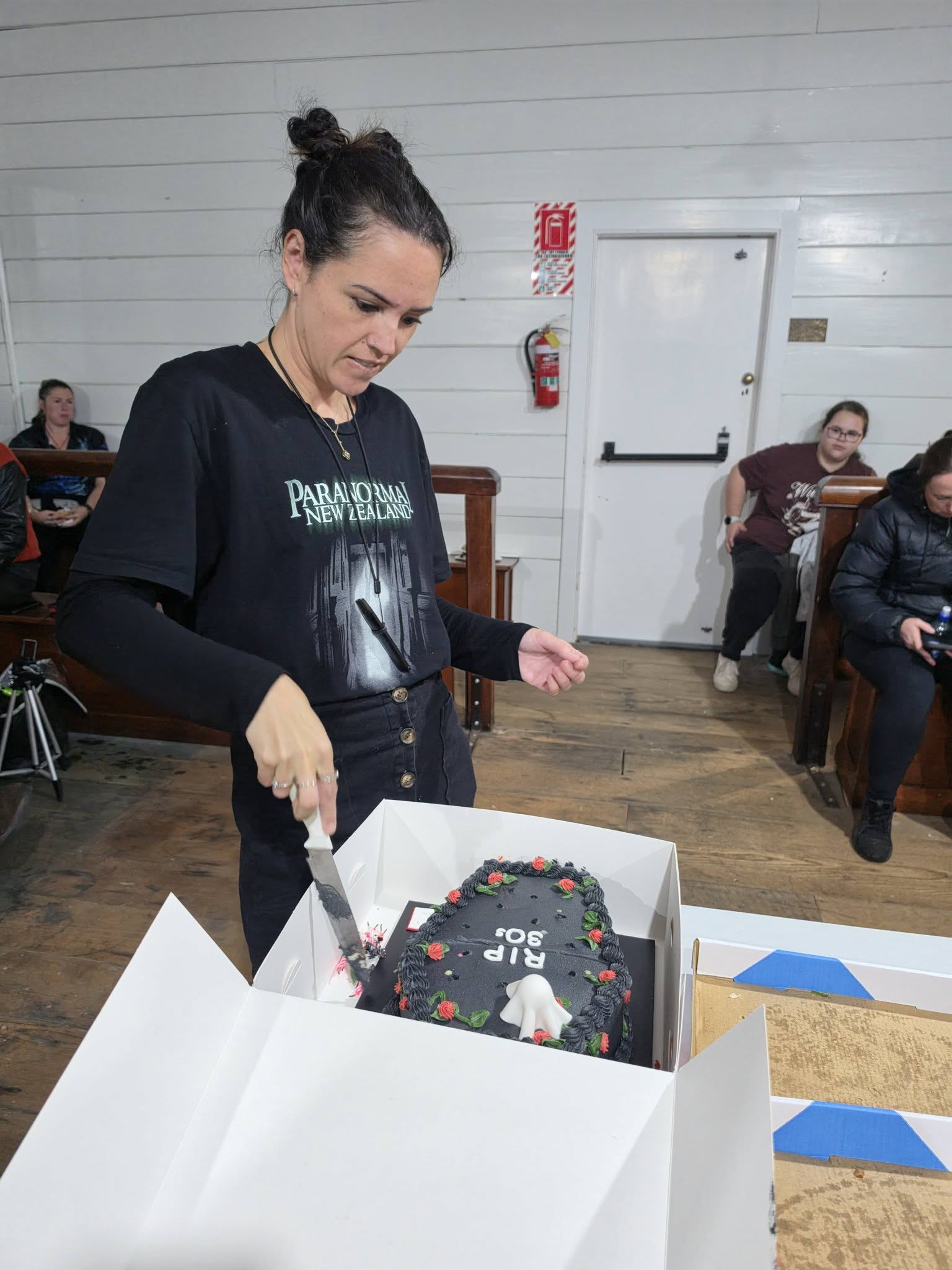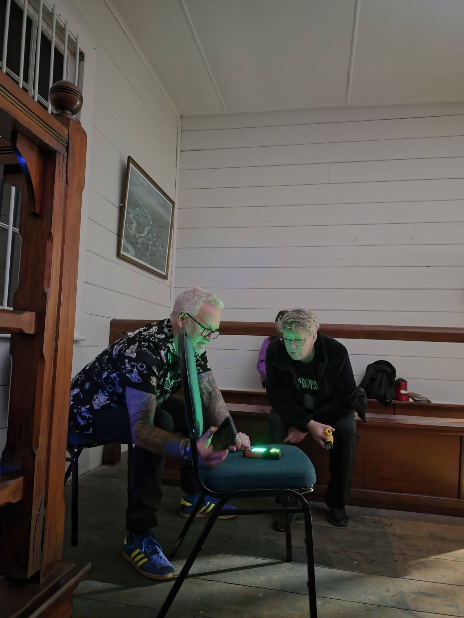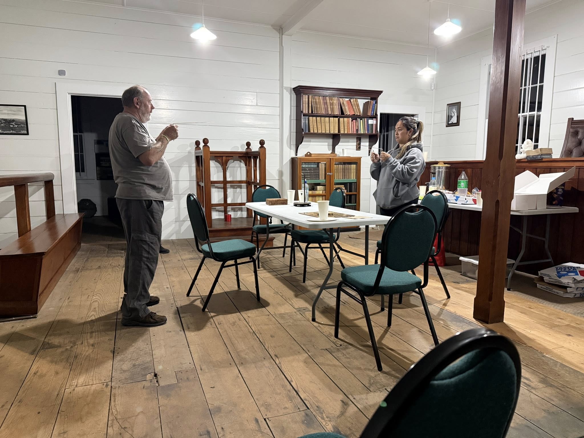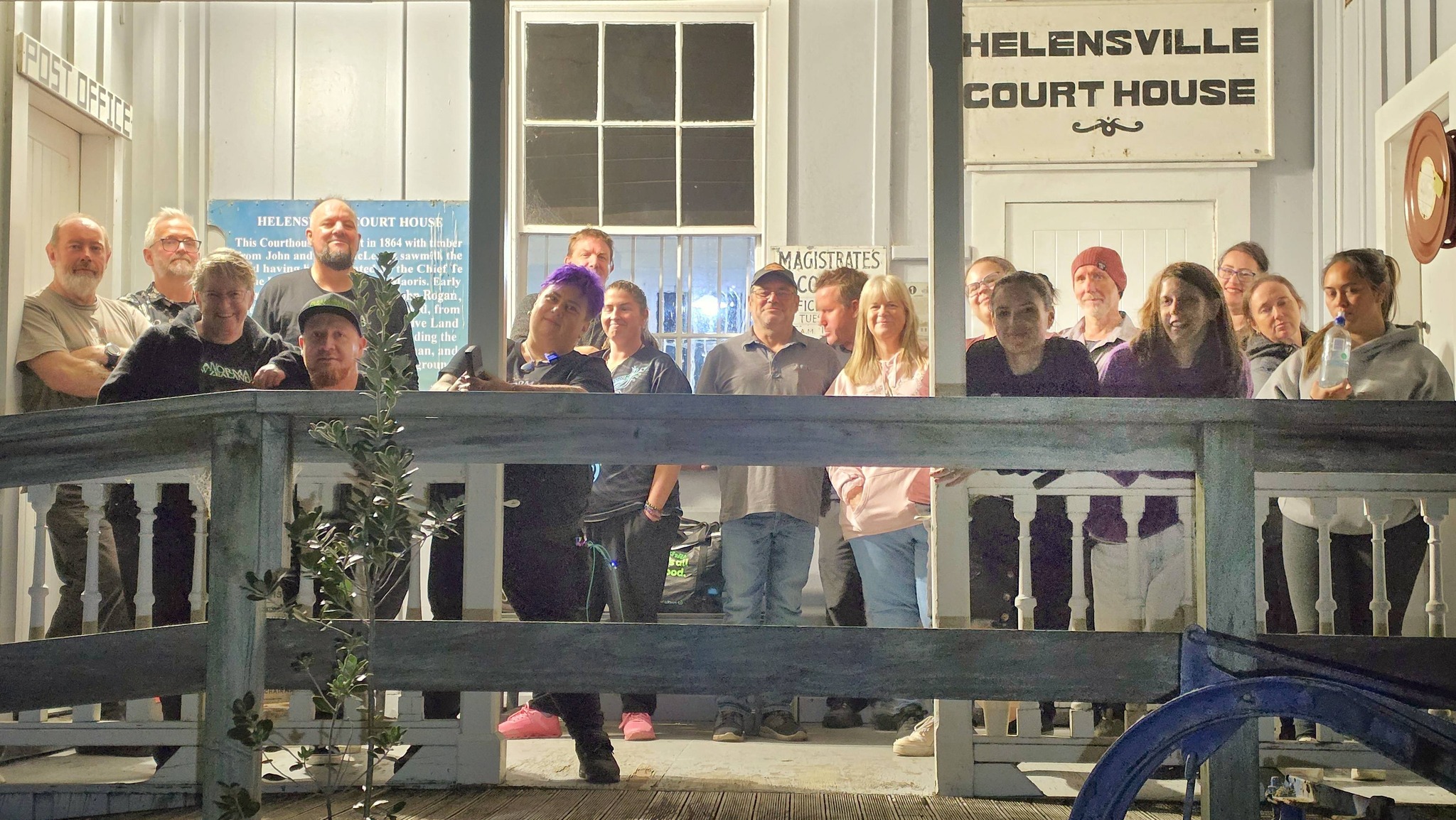 We wrapped up a little after midnight. Once everyone had headed off, we cleaned up, then sat down for a bit of a chill and debrief. Around 2 a.m., we all turned in, each claiming a different building for a few hours’ sleep. Sean was in the courthouse, Sam was out in the Waitoki Schoolhouse, Jenn and Bella were in the other old school building, and I took Hedley House.