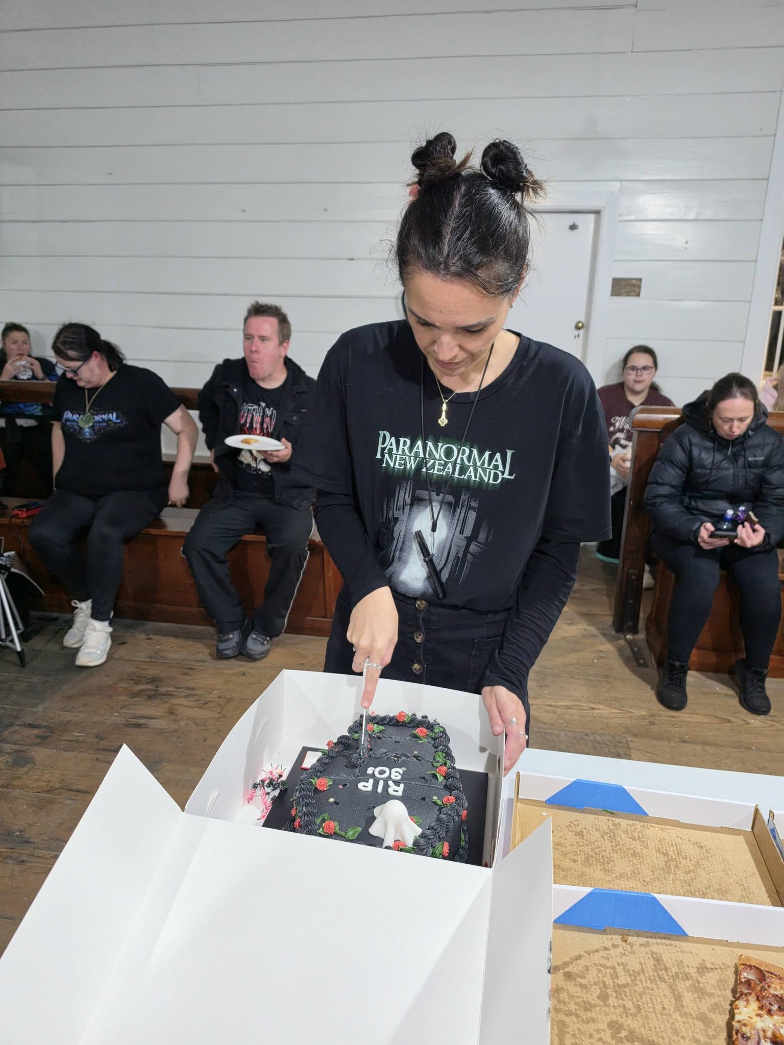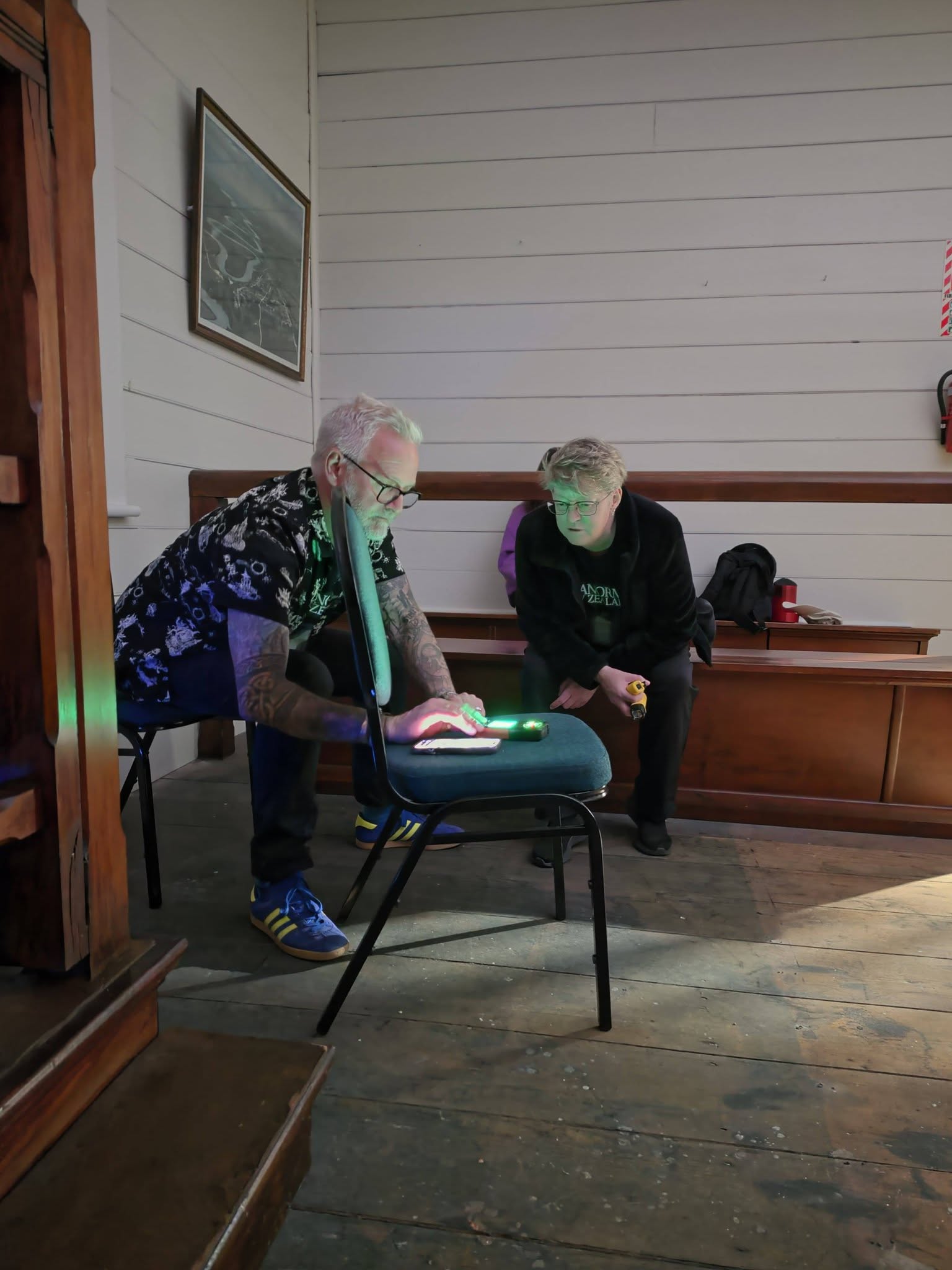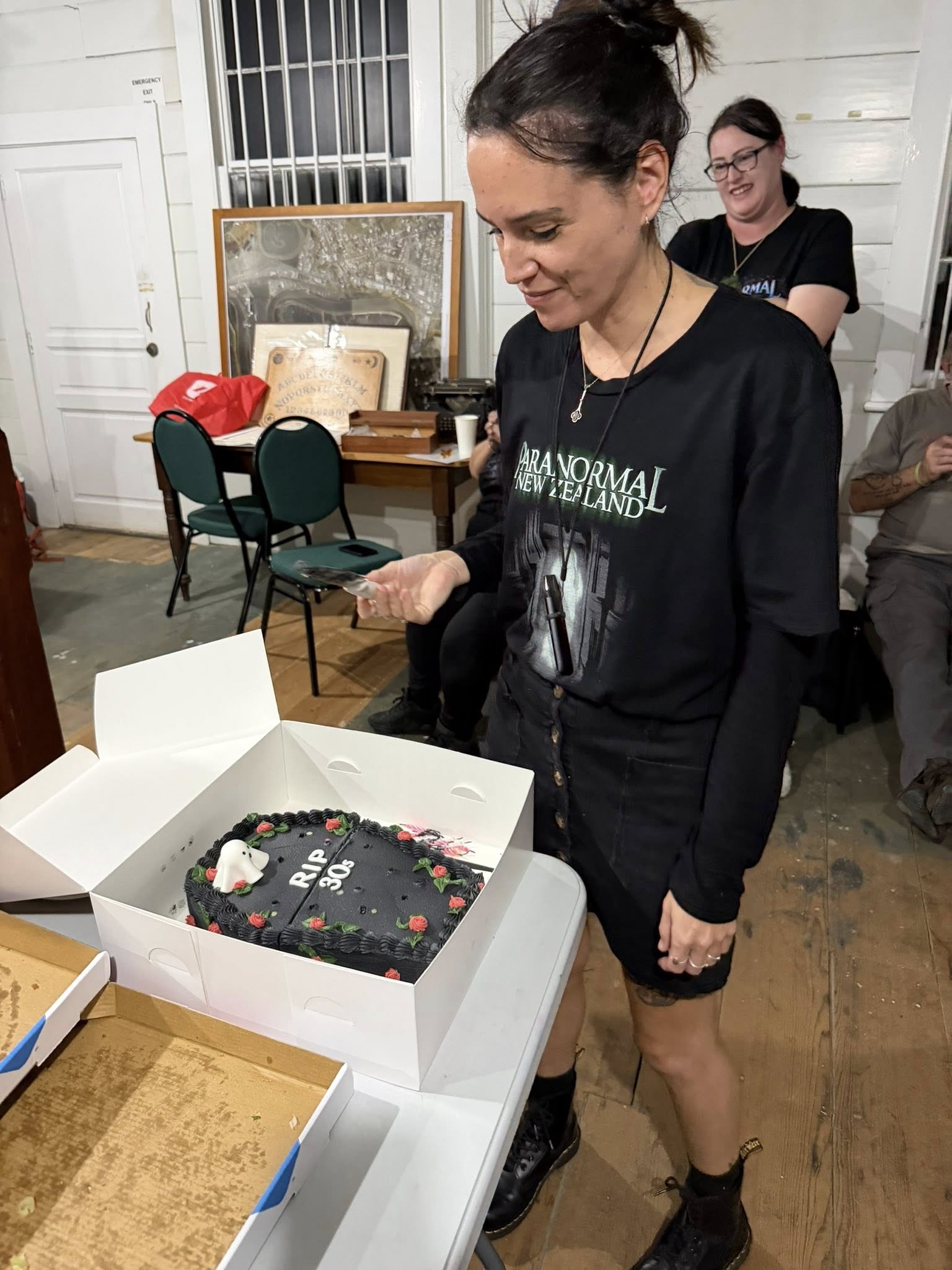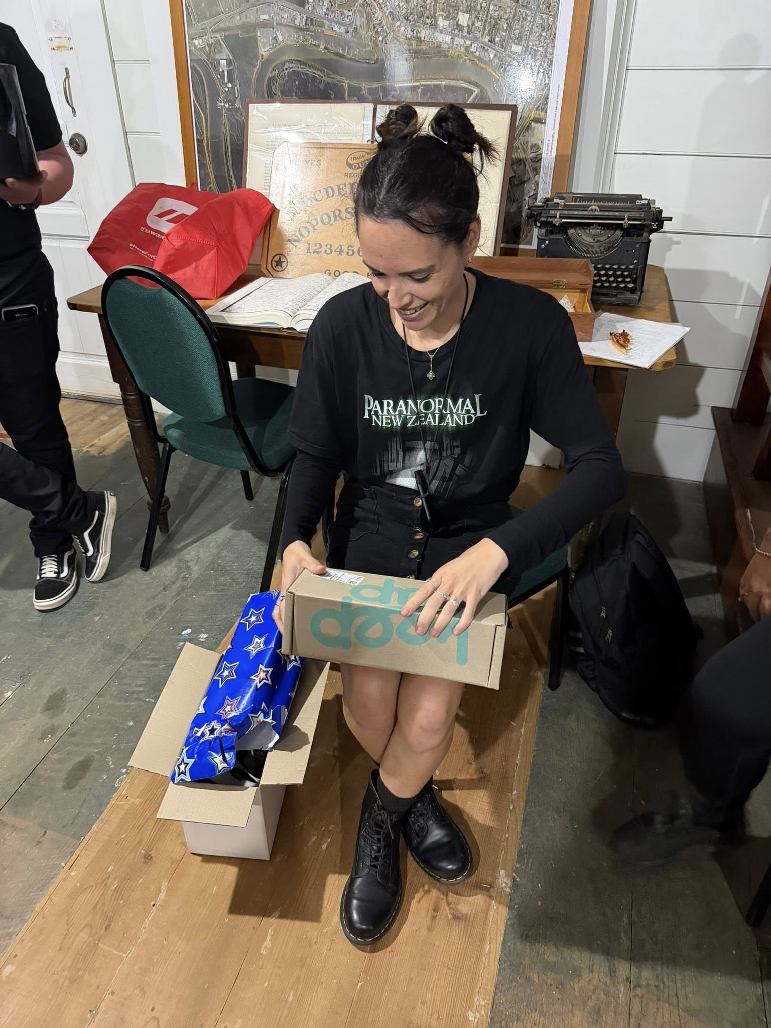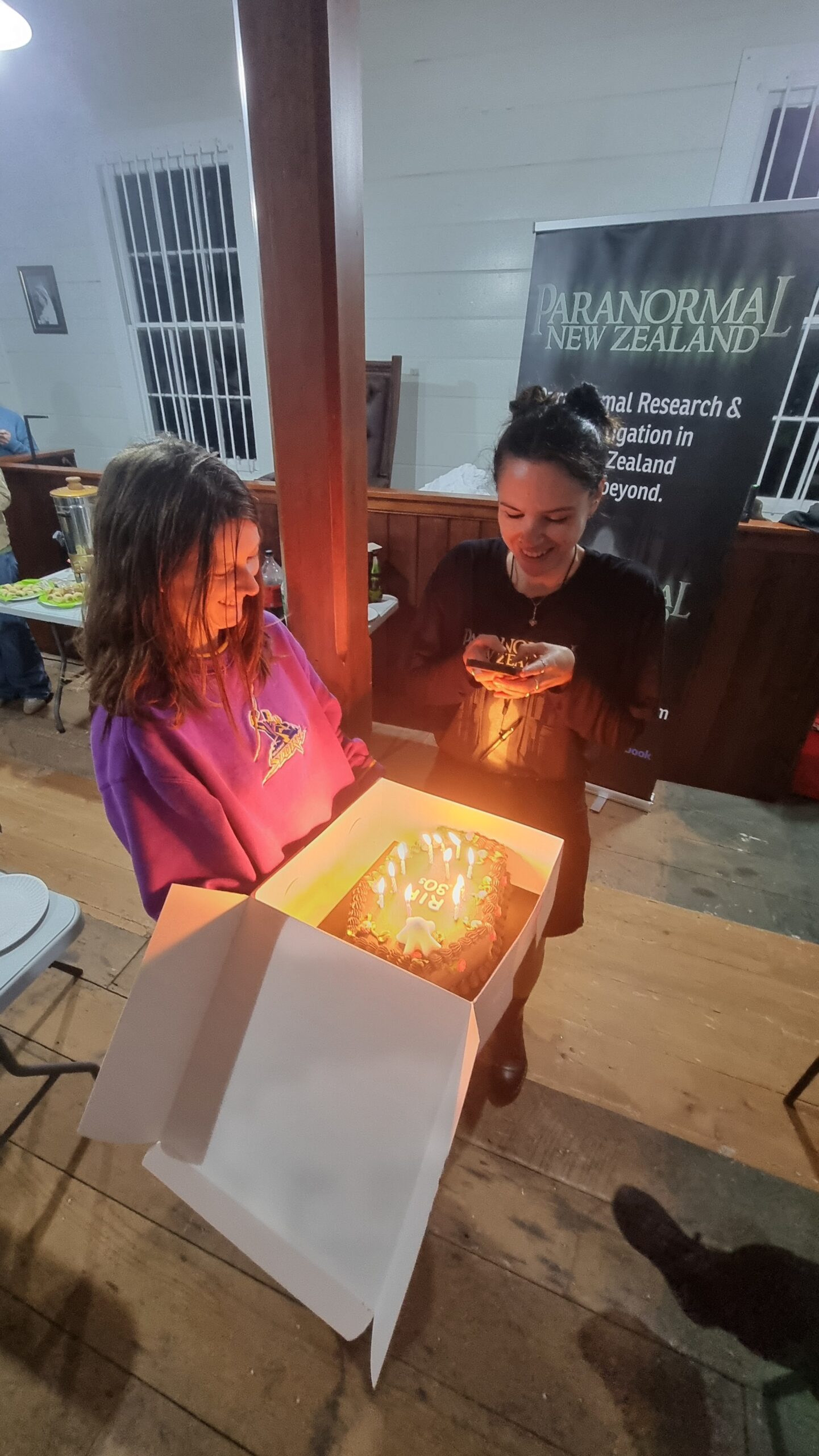 We wrapped up a little after midnight. Once everyone had headed off, we cleaned up, then sat down for a bit of a chill and debrief. Around 2 a.m., we all turned in, each claiming a different building for a few hours’ sleep. Sean was in the courthouse, Sam was out in the Waitoki Schoolhouse, Jenn and Bella were in the other old school building, and I took Hedley House.