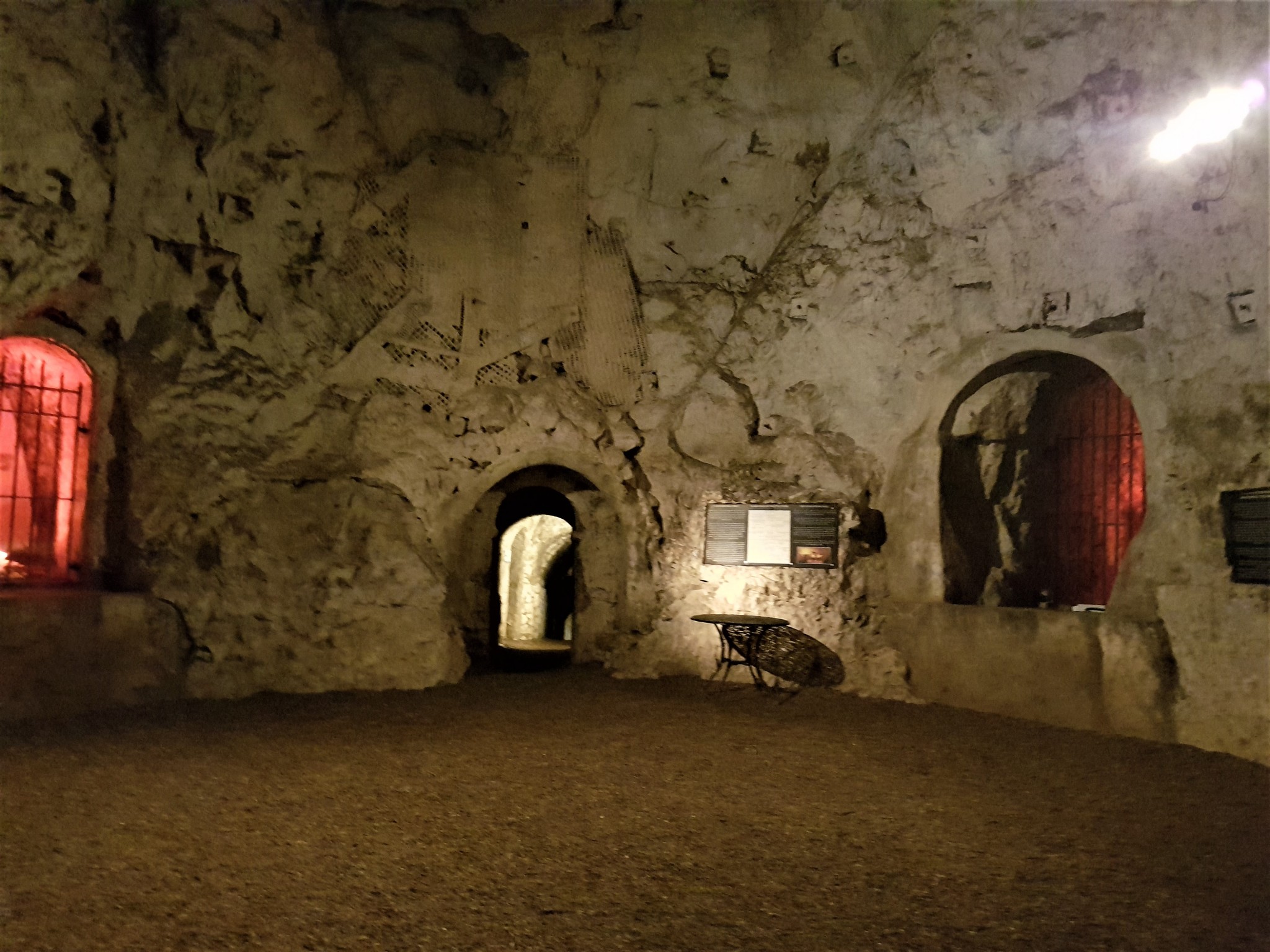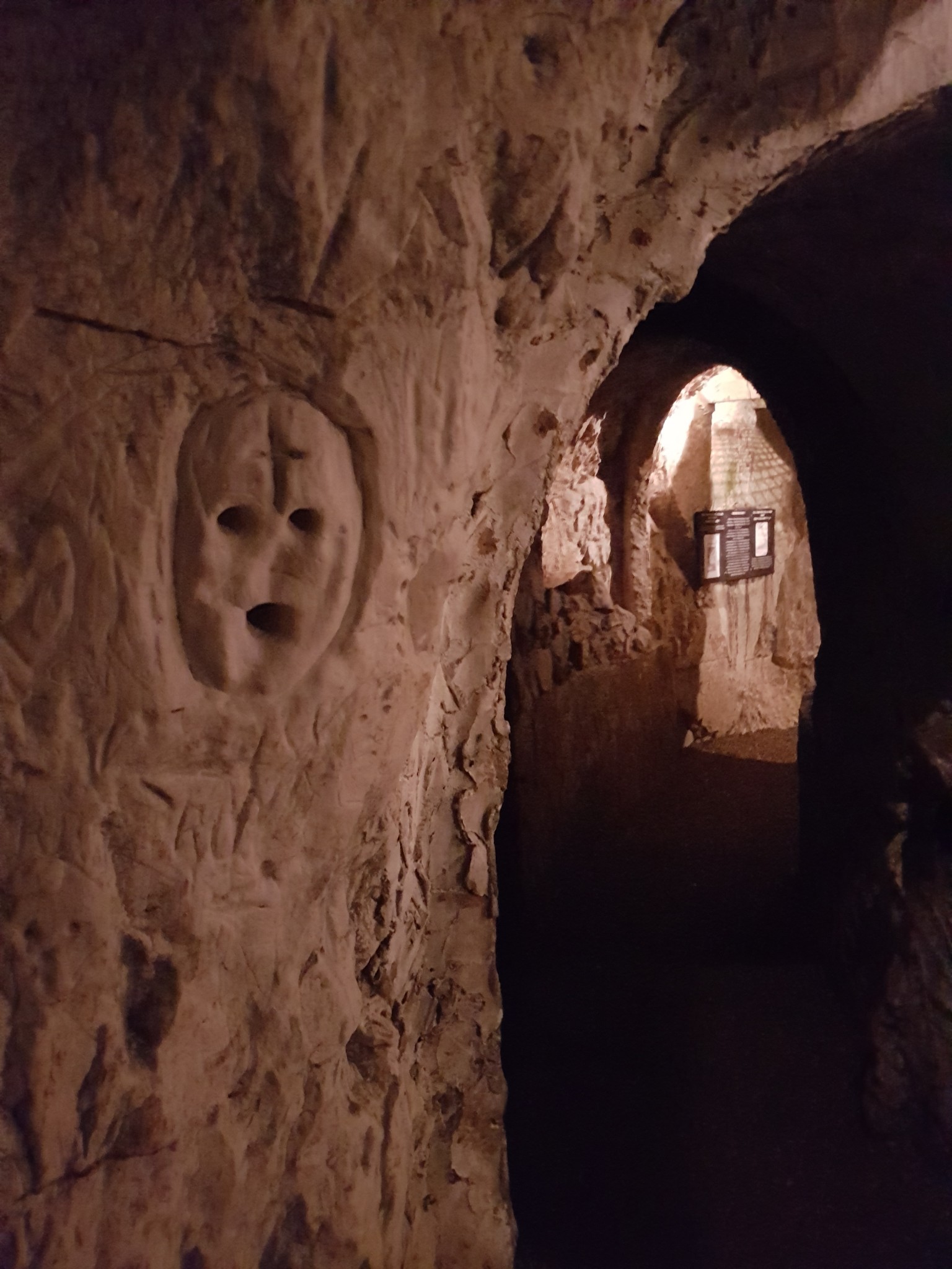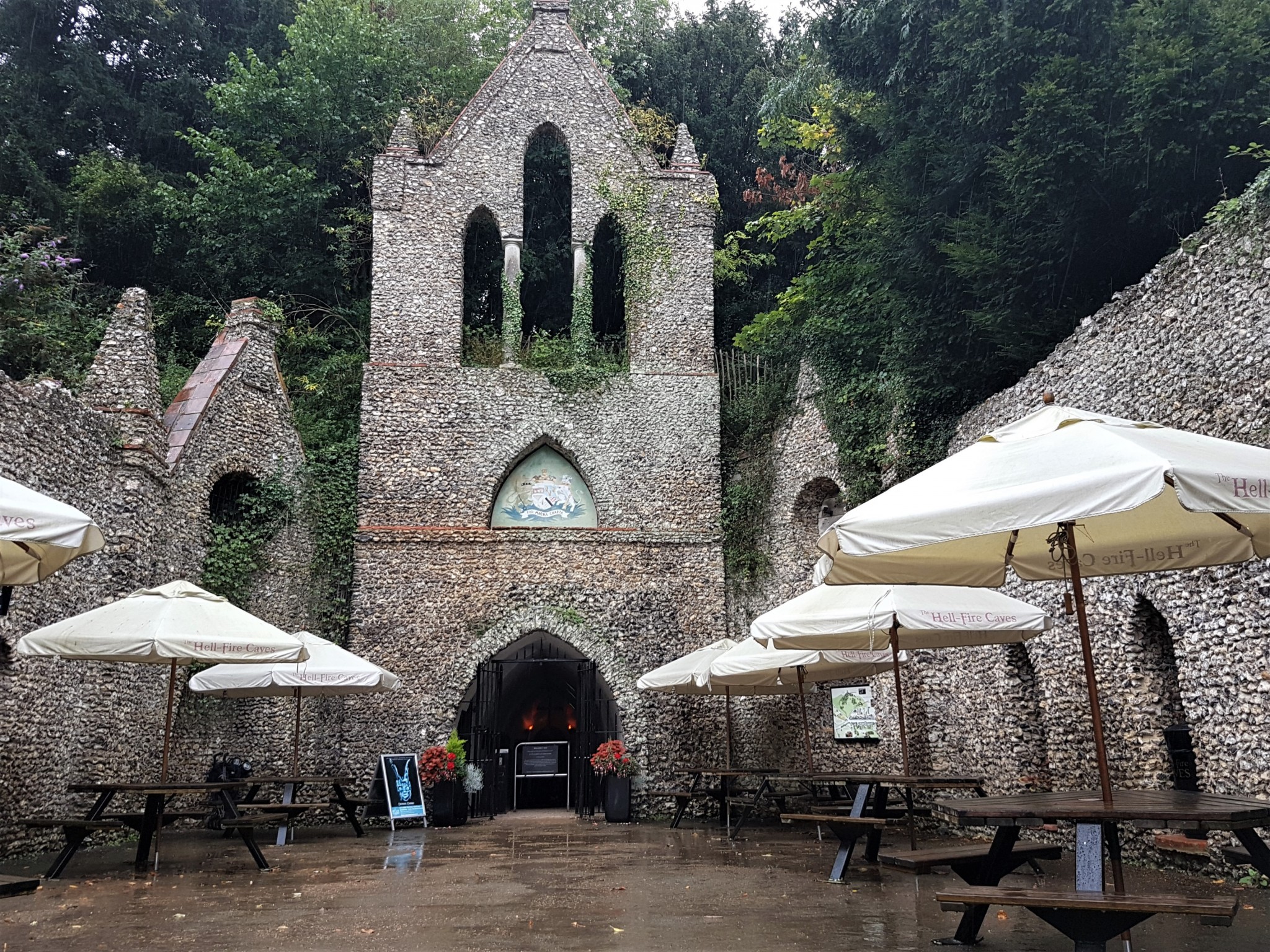 The Hellfire Caves (also known as the West Wycombe Caves) are a network of man-made chalk and flint caverns which extend a quarter of a mile (500 metres) underground. They are situated above the village of West Wycombe, at the southern edge of the Chiltern Hills near High Wycombe in Buckinghamshire, Southeast England.