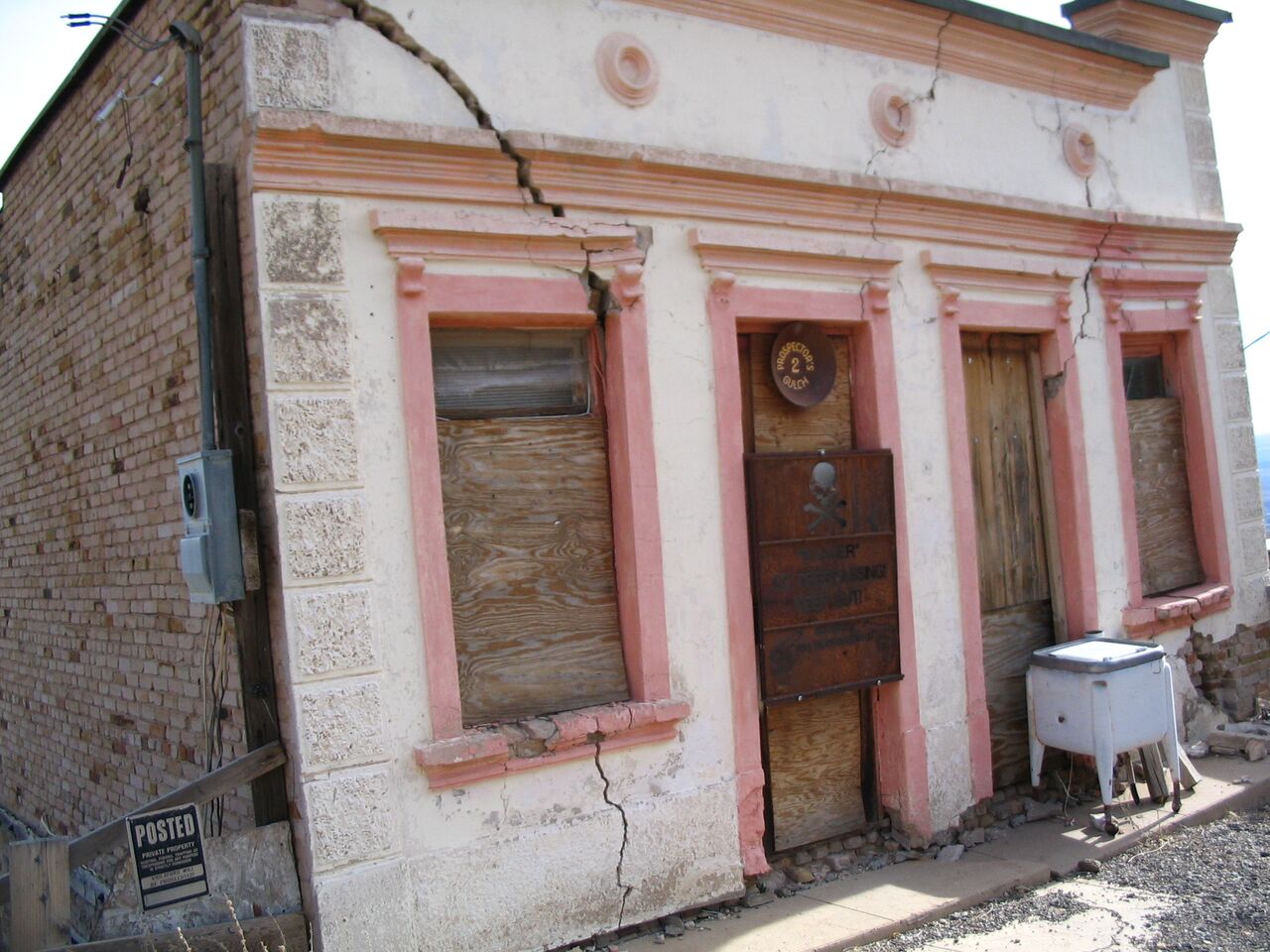A subsidence problem due to geological faulting in the area, vibrations from blasting in the mine and erosion resulted in dozens of buildings including the post office and jail being lost as the ground below them sank away. To prevent the town disappearing completely the remaining residents turned to tourism to attract visitors and new businesses to the area, and today Jerome is a thriving tourist and artist community which hosts art galleries, craft stores, and restaurants. Jerome is now known as The Largest Ghost Town in America and open businesses stand beside crumbling derelict buildings, which are slowly descending down Cleopatra Hill!