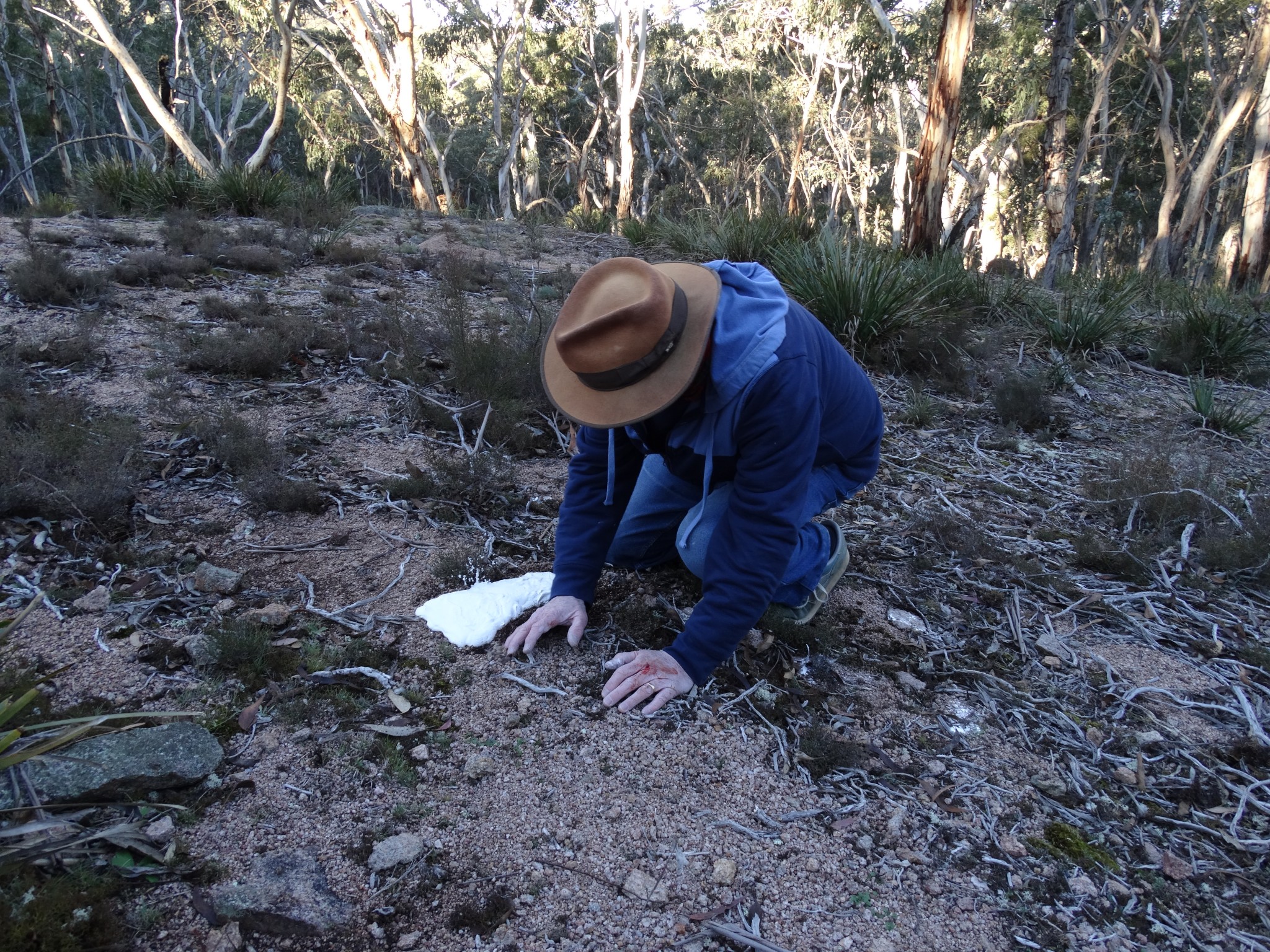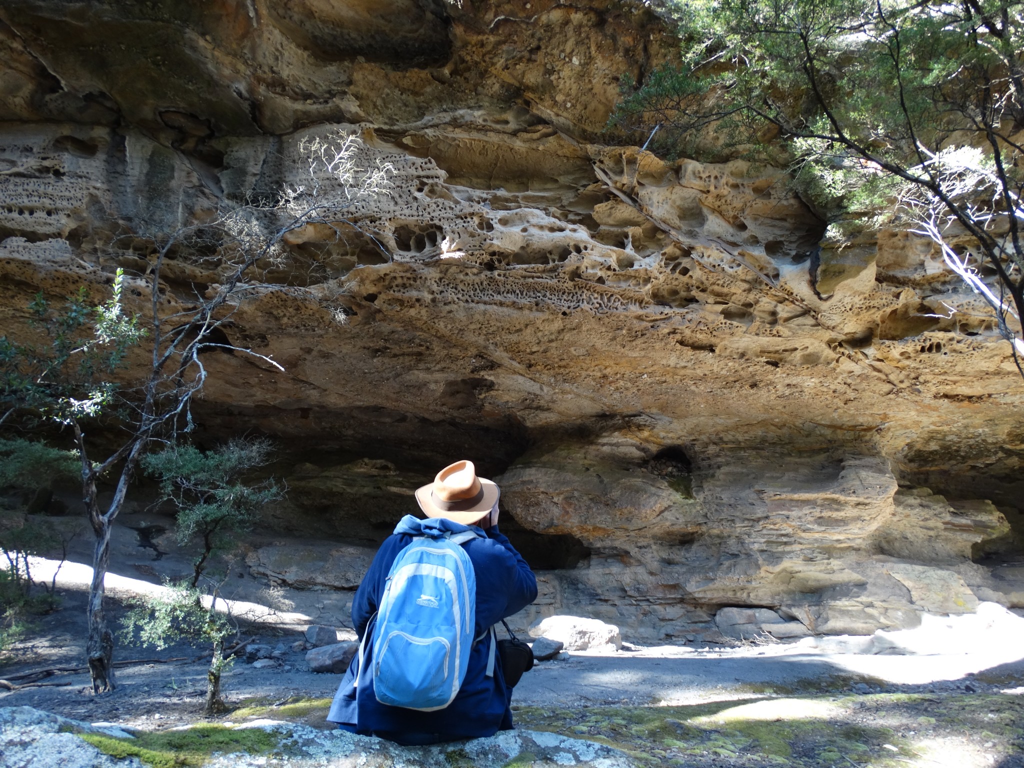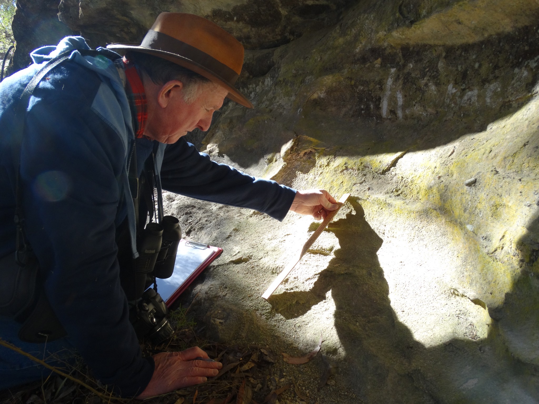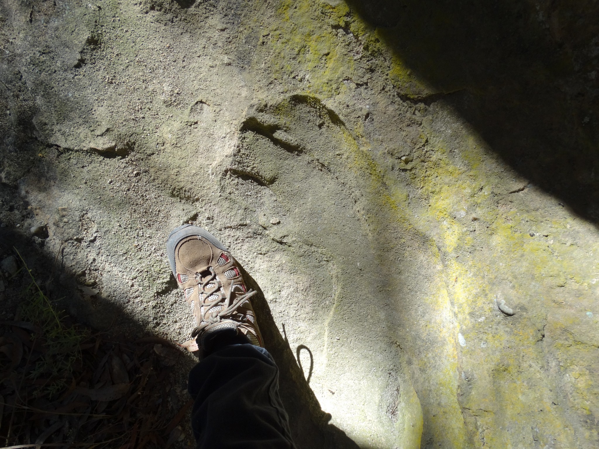 May 30th 2016: I spent the day (9am  – 9pm) wandering the vast Kanangra Ranges in search for evidence of the mysterious and elusive Yowie (Australia’s Bigfoot) and Thylacine (aka The Tasmanian Tiger). In our time in the dense wilderness, we saw kangaroos, wallabies and a wombat. Rex stumbled upon what looks like a large footprint in the gravel. This was plaster cast for further analysis. I discovered what appears to be a large very old footprint in a rocky gully. Clearly seen, are what appear to be large toes and slip marks; as if the creature had skidded in mud many years ago. Whether or not our print discoveries are actual creature impressions, we do not know, but have documented the finds as best we can for future reference. Thank you to Rex and Heather Gilroy for taking me out in the field yet again.