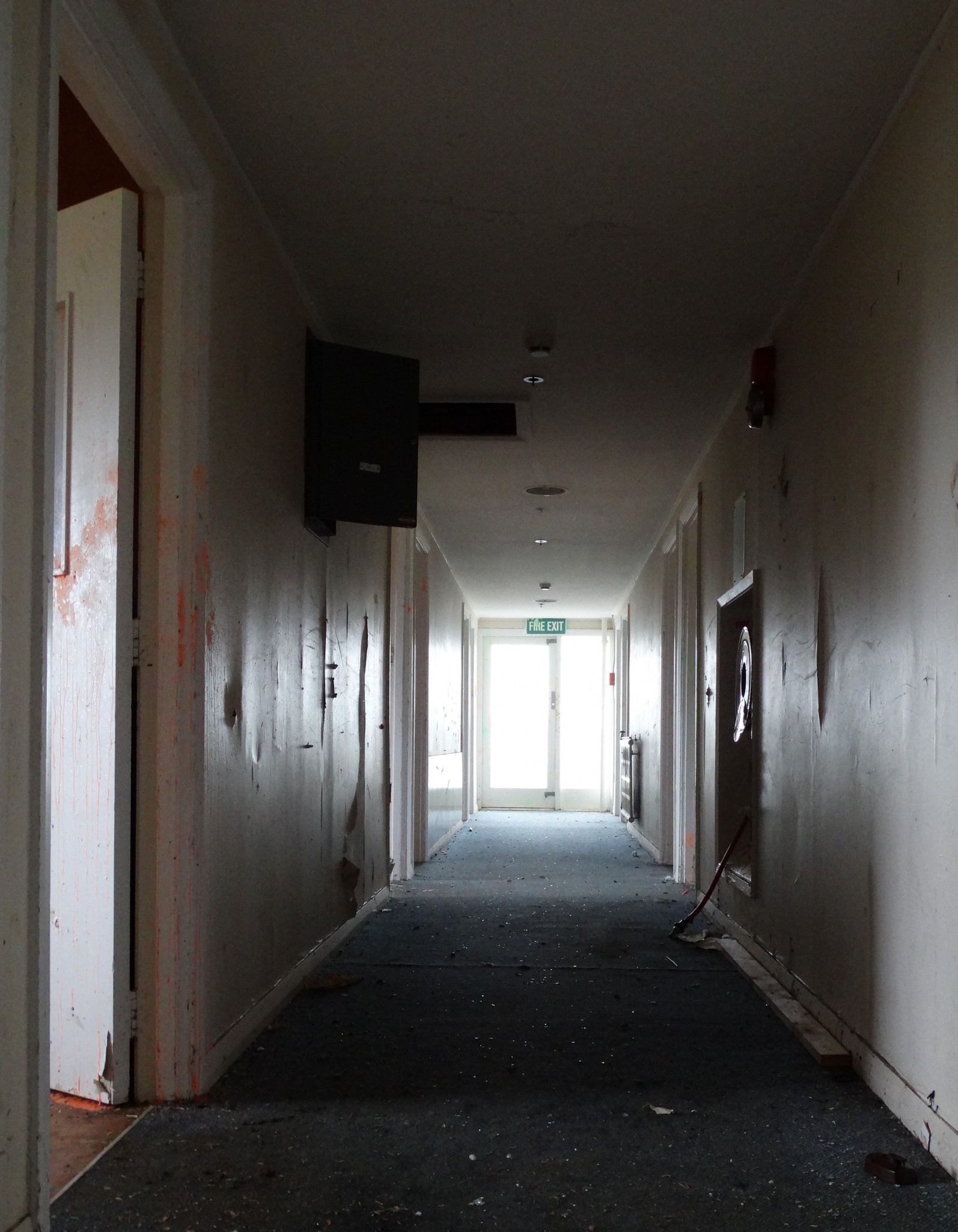 On November 6th 2016, I visited the centre in the hopes of taking a few photographs. What I initially thought were the front gates, were padlocked solid on my arrival. I rang the security firm listed on an old metal sign hanging on the rusty fenceline. Unfortunately, they didnt seem to know too much about the place and told me they were really only there for on-call security. I was told to try calling the owners. Having no contact phone number or name, I was about to give up and head off, when soon after, on the other side of the fence a man was ambling along the roadway walking his dog. I yelled out to him asking if he worked there and would I be able to come in to snap some quick photos. He smiled a rough beardy smile and said ”sure mate, just drive your car down the road a bit to the main entrance, but be careful”. This lead me to the construction entrance. Not wanting to be in the way, I parked out on the main road, grabbed my camera and spent the next hour wandering around some of this vast building complex.