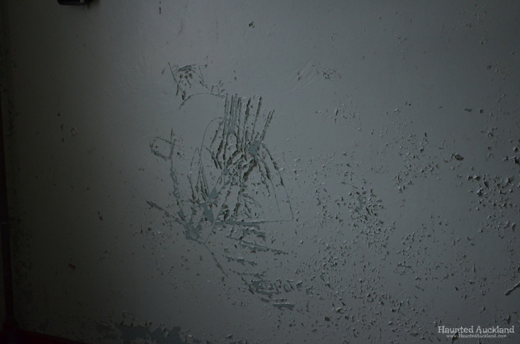 Scratches on the walls, upstairs in Admin Building