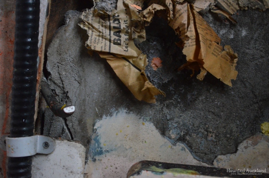 Maximum Security interior, old newspapers in the walls