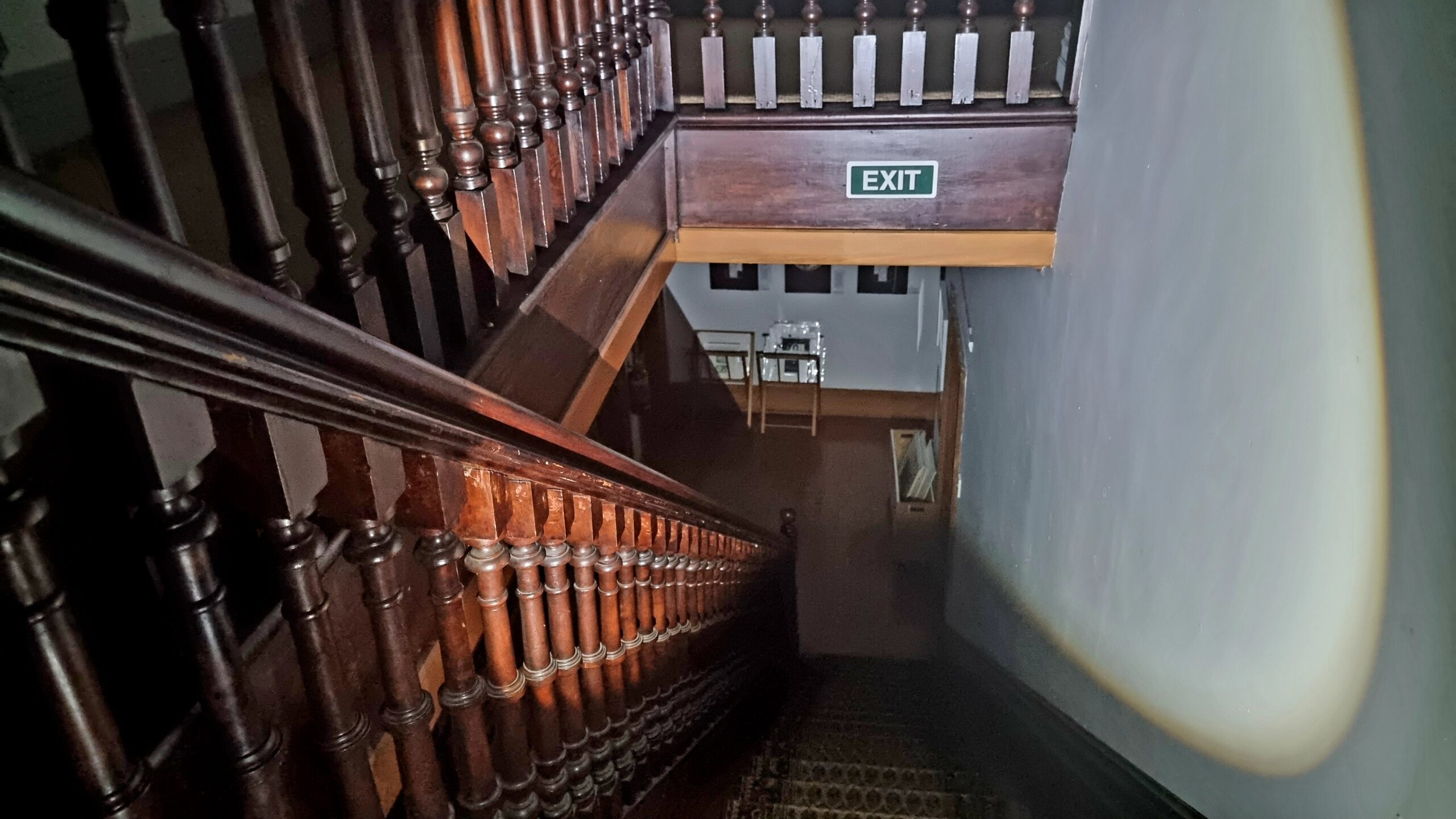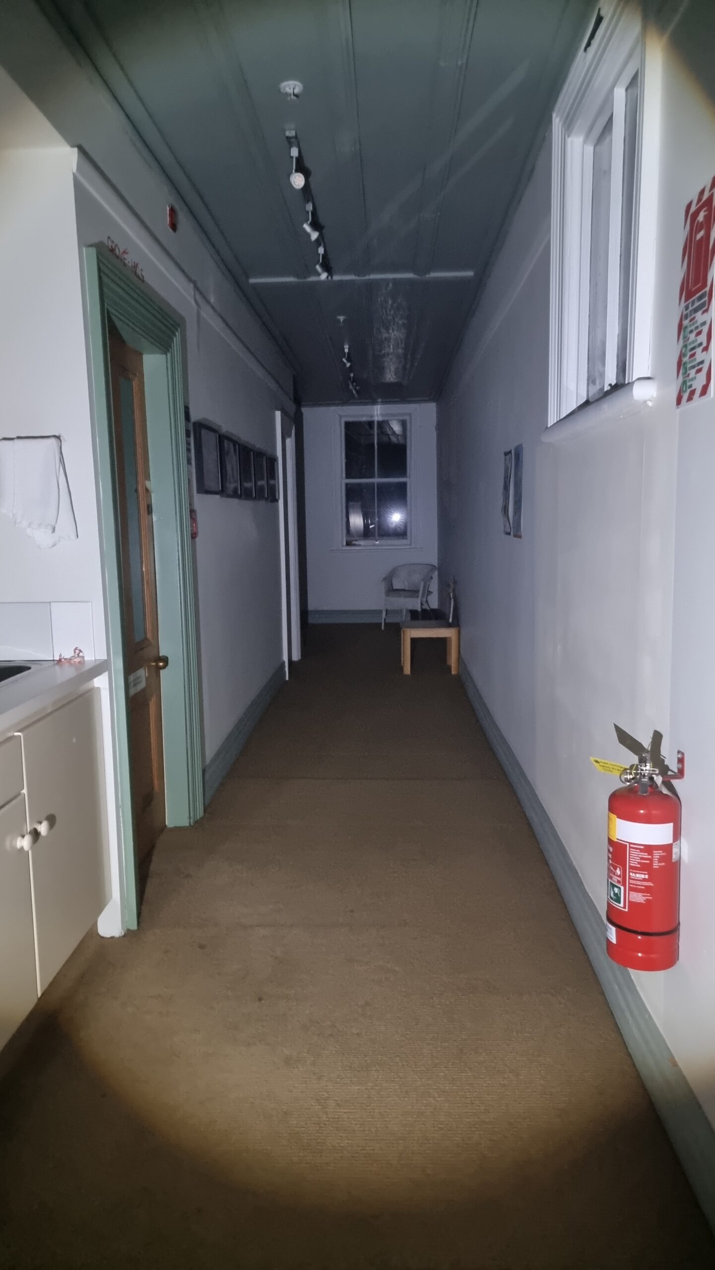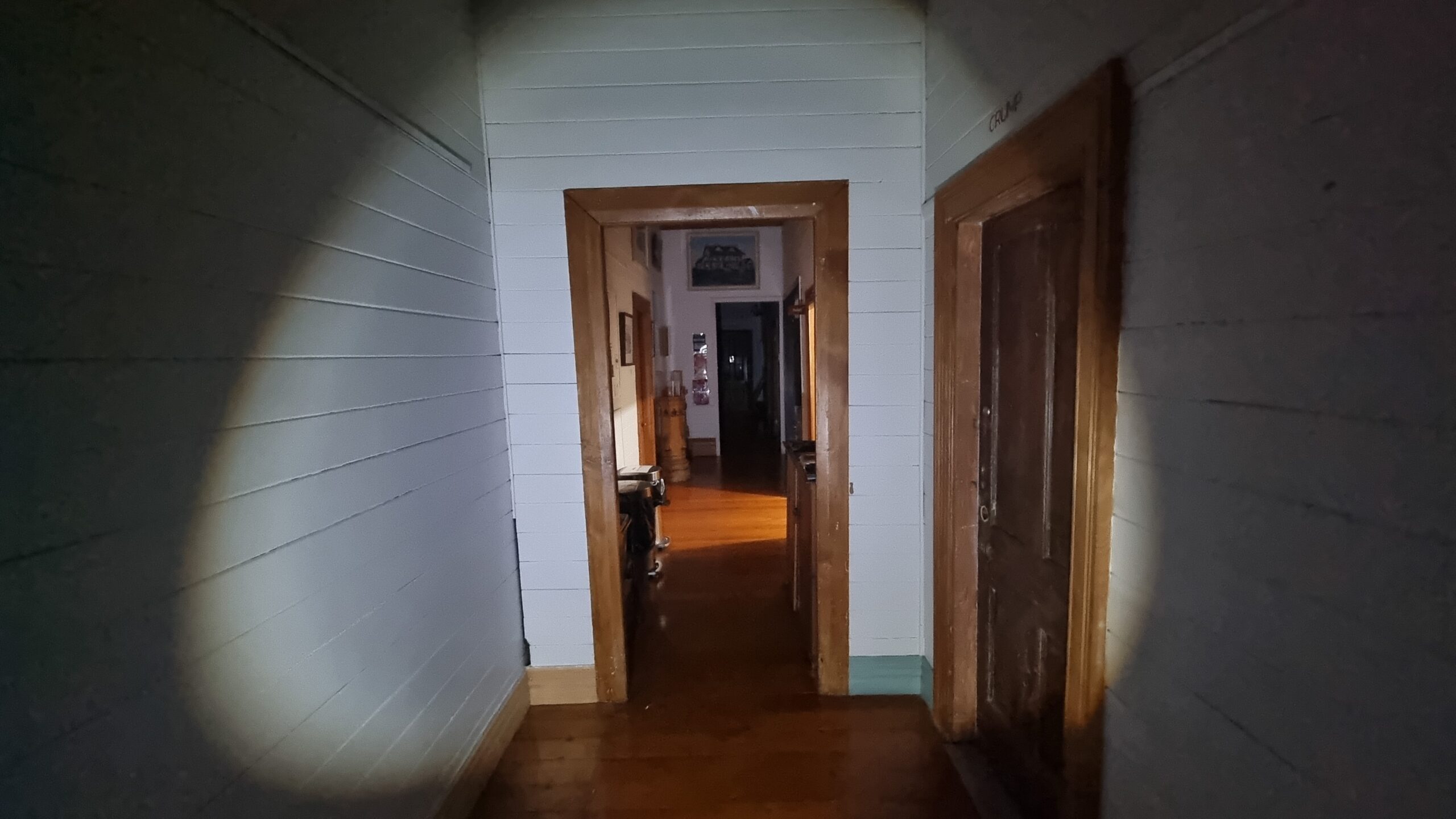 - 11.30 pm – I’m downstairs in ”Hayes” Room. Loud bang upstairs. Like something dropping or falling over. Go check. Can’t see anything. Maybe in one of the locked offices up there?