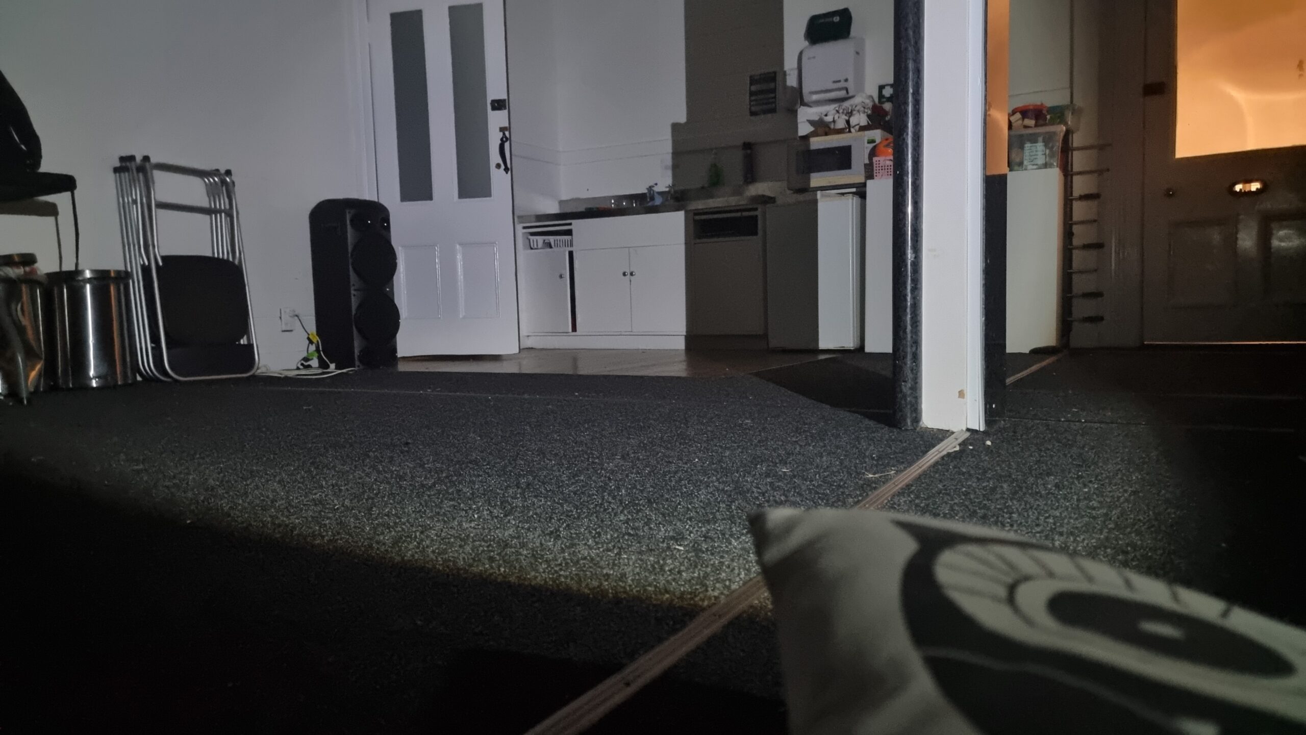 - 8.00 pm – I’m here and the gear is unpacked. Base camp is our usual ”Hayes” room. I’ll sleep down here tonight. Close to power sources, toilets, and the kitchen. It’s lightly raining, but other than that it’s dead quiet out there. I’ve had a feed of Burger King, the sleeping area is made and I’m settled in. Bring it on!