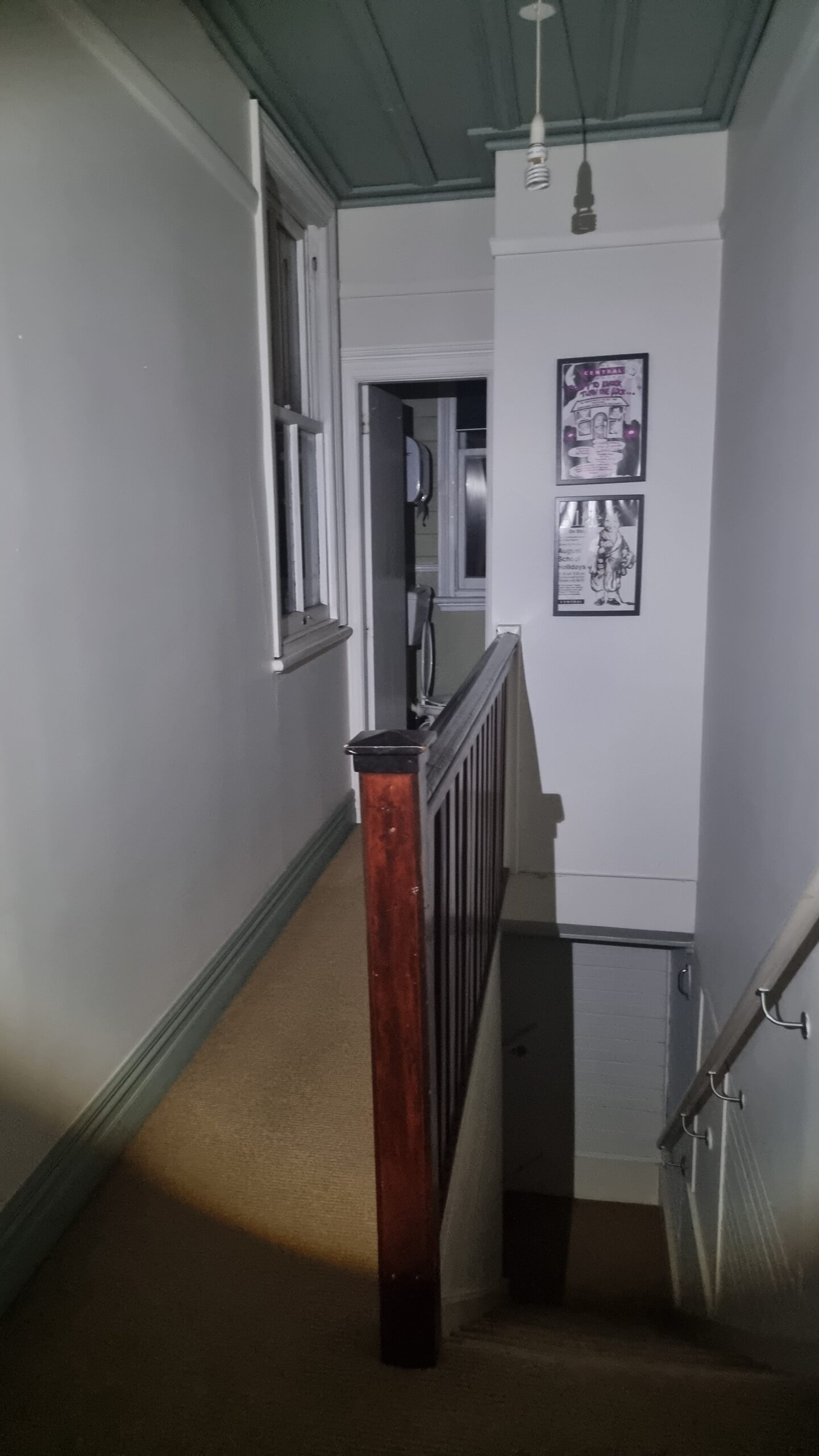 - 9.45 pm – A series of about 3 wooden creaks. Couldn’t tell if on the main stairwell of the floor below / the entrance. Did a little calling out just in case it was our little ”friend” who plays on the stairs.