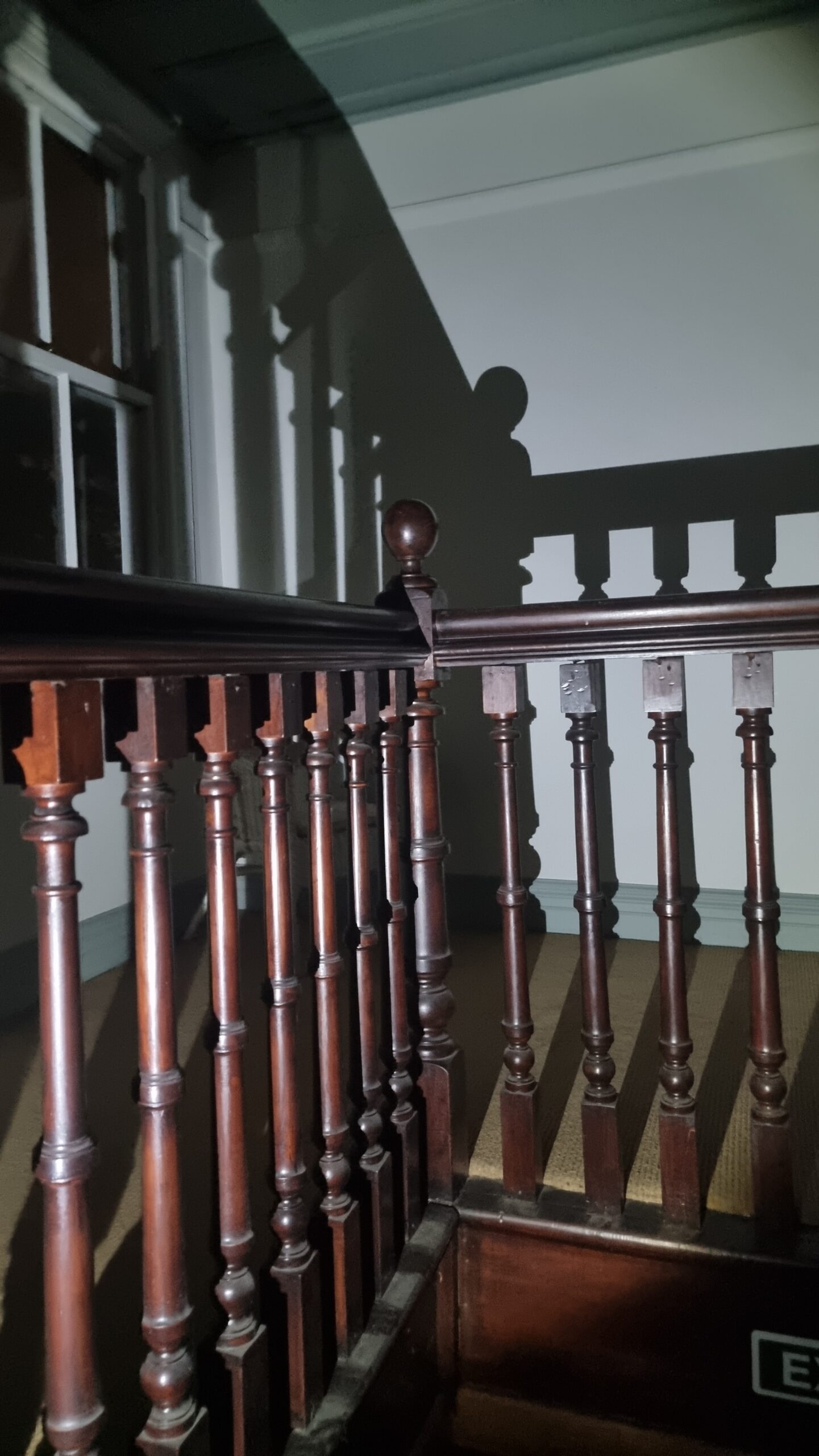 - 10.35 pm – Upstairs sitting in ”Patty’s” corner. Talking out loud and just chilling. Hearing creaks to my right on the stairwell. No one to be seen, of course. But it’s like someone is either walking up or down for a few steps. Possibly it’s the banister creaking and not the stairs. Not sure. Stops when I get up to look. Sat at the top of the stairs looking down for a bit. About 10 mins. No creaking.