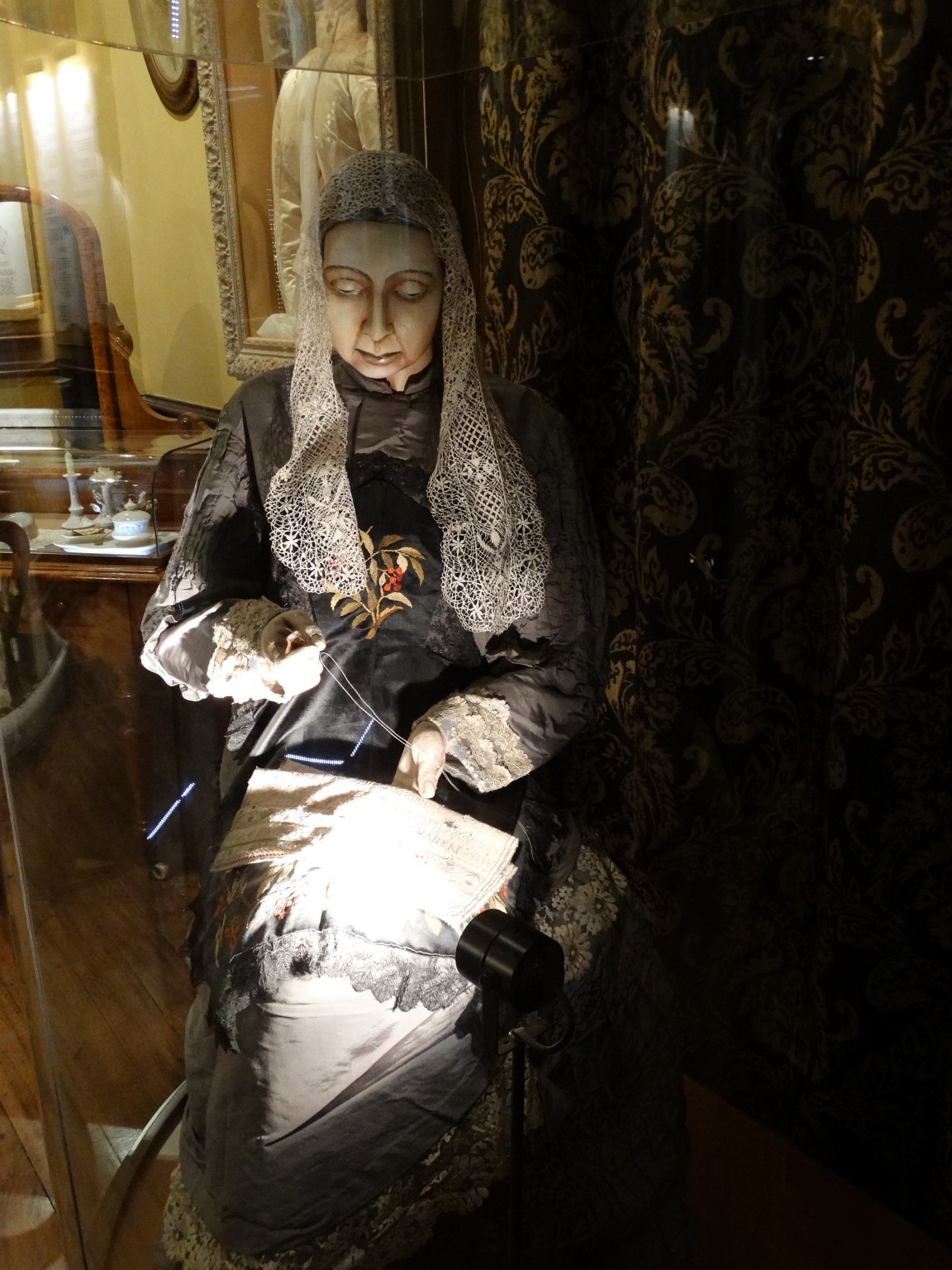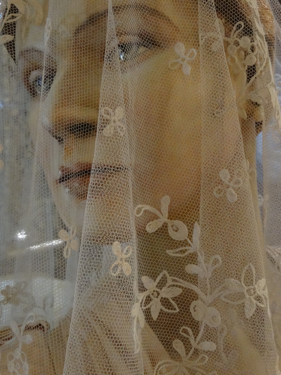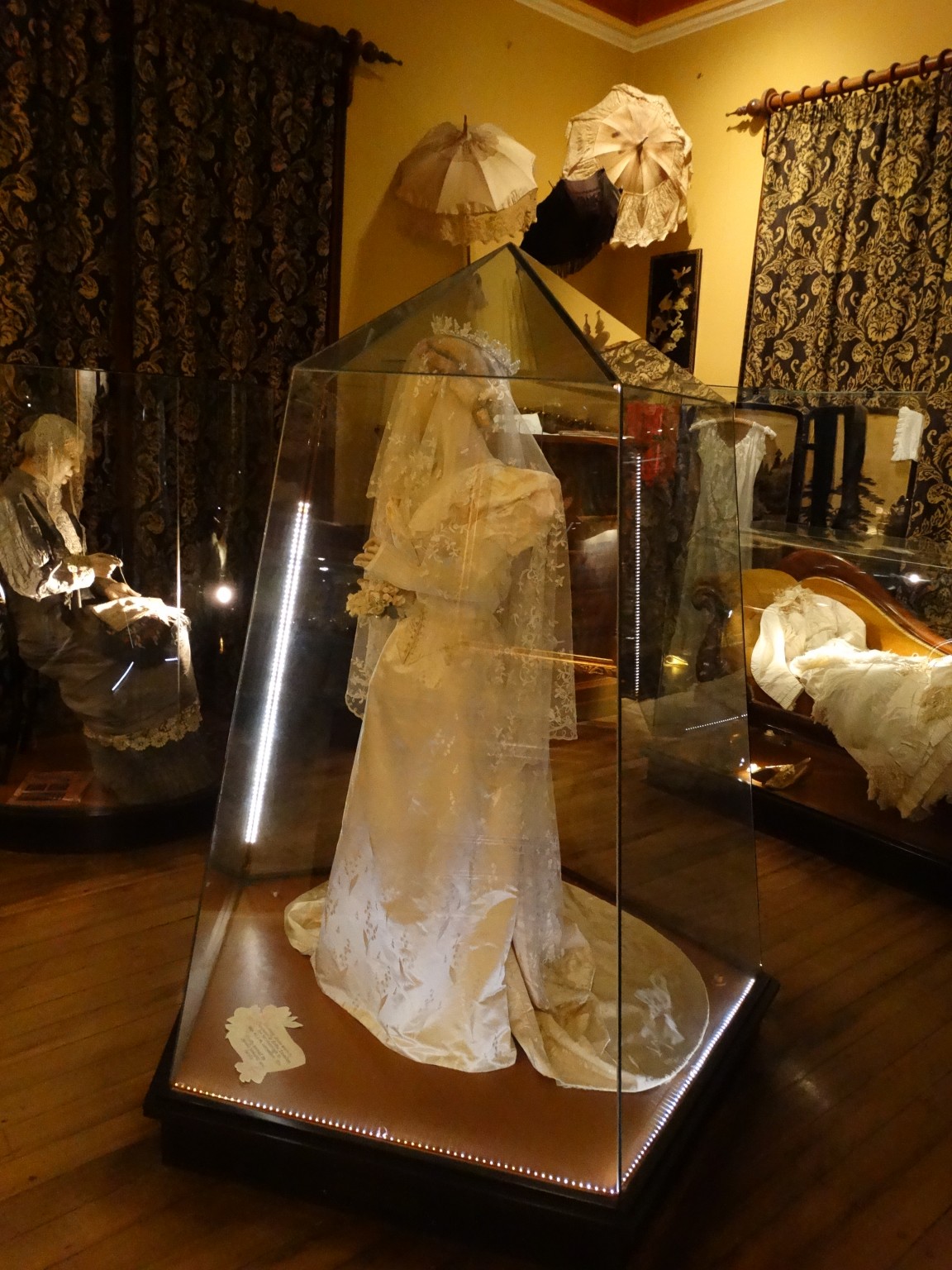 Perhaps it is Constance herself, whose ivory silk wedding dress is on display in the boudoir.