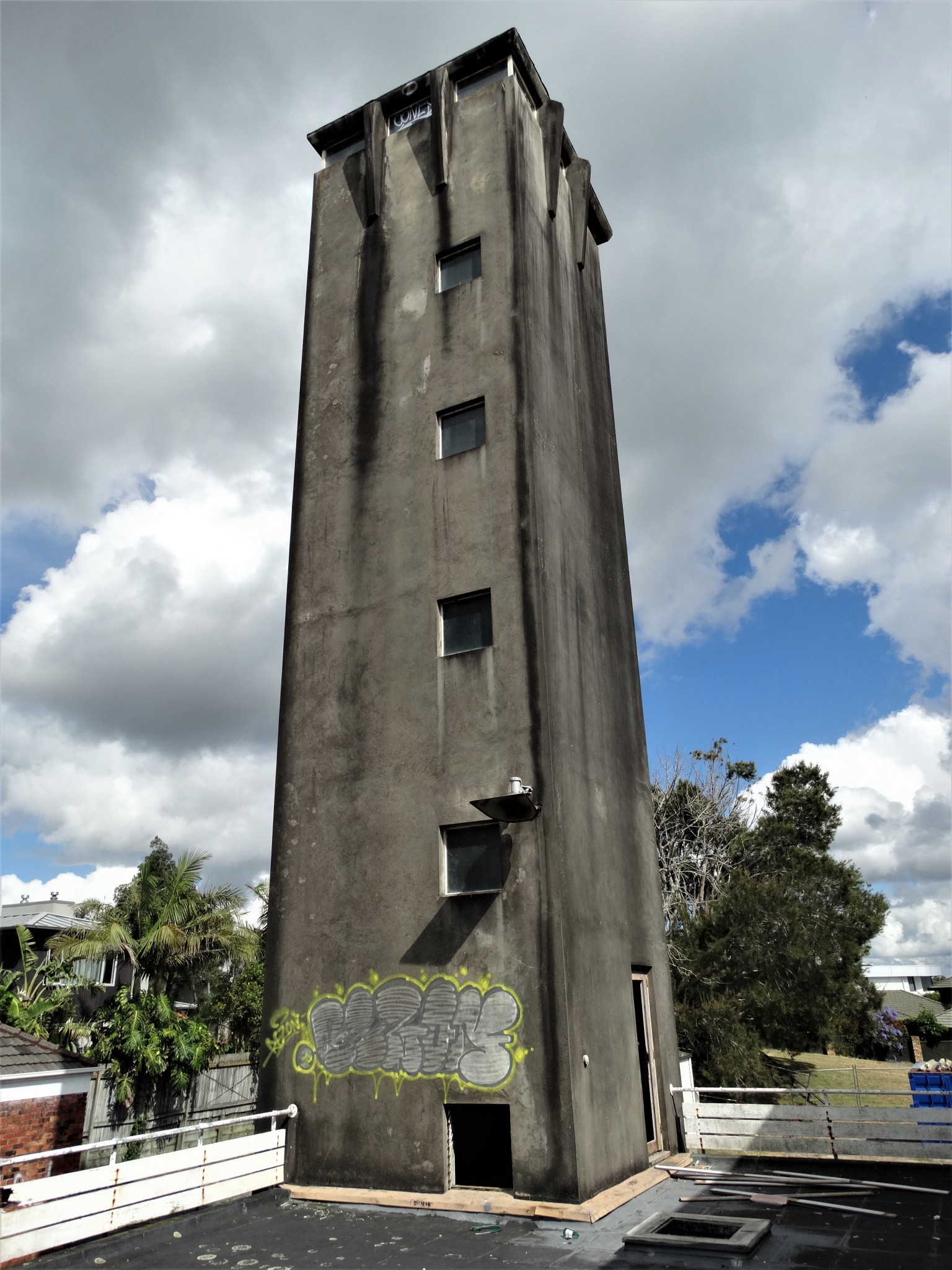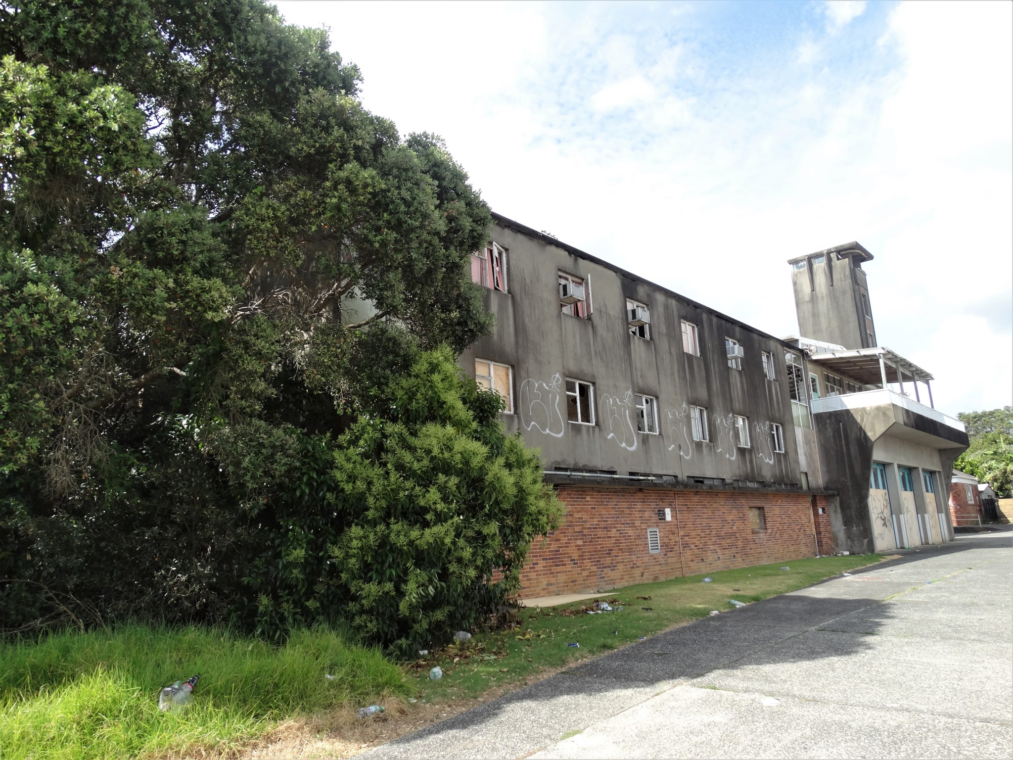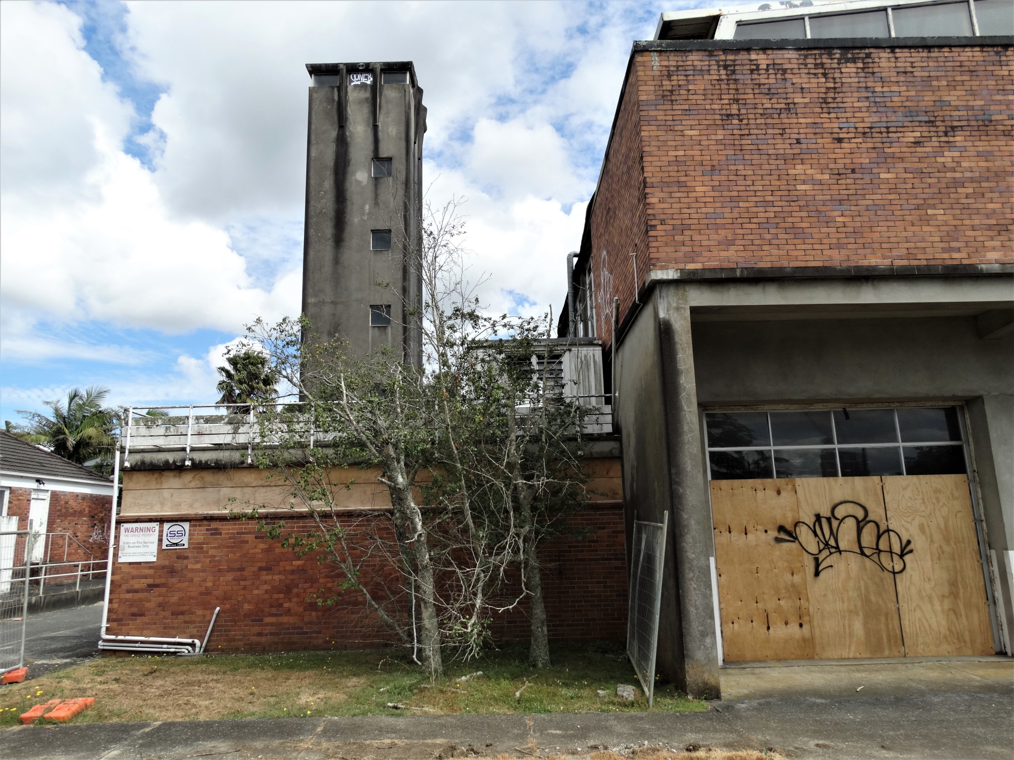 The Takapuna Fire Station and administration buildings include the original 1952 single storied fire station of 134 sq m; the larger multi-level 1959 fire station with accompanying training tower encompassing 1530 sq m; a 1972 fire training building and a double garage in the north western corner of the site.