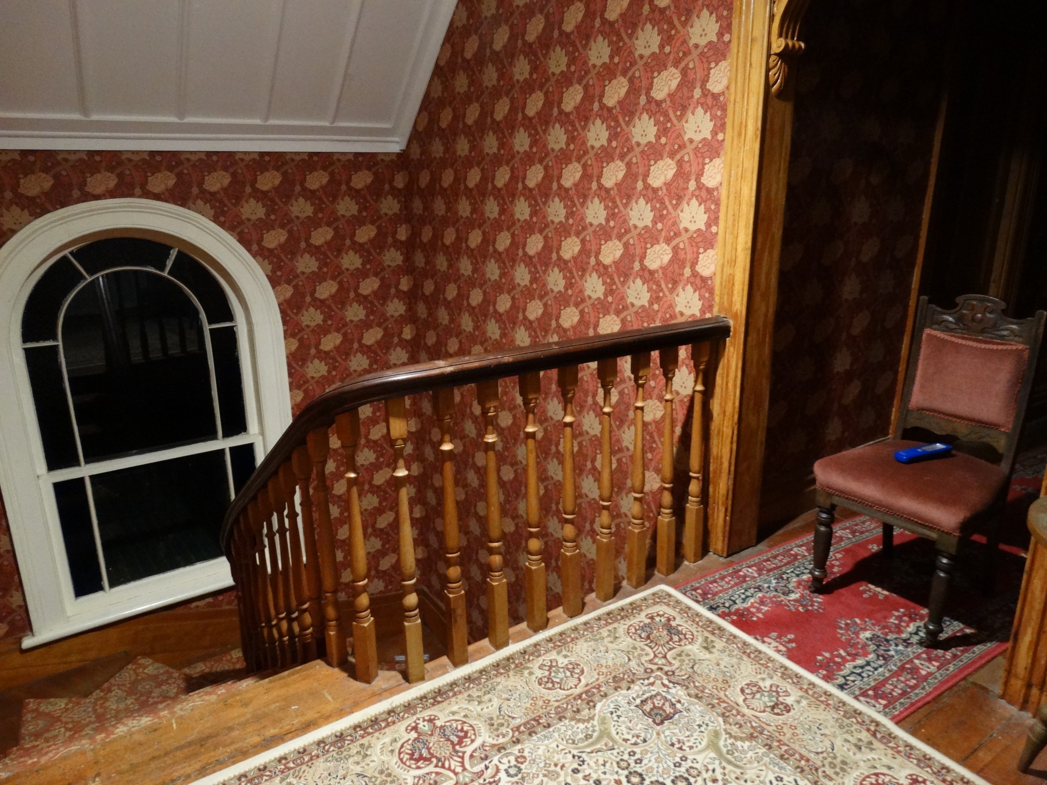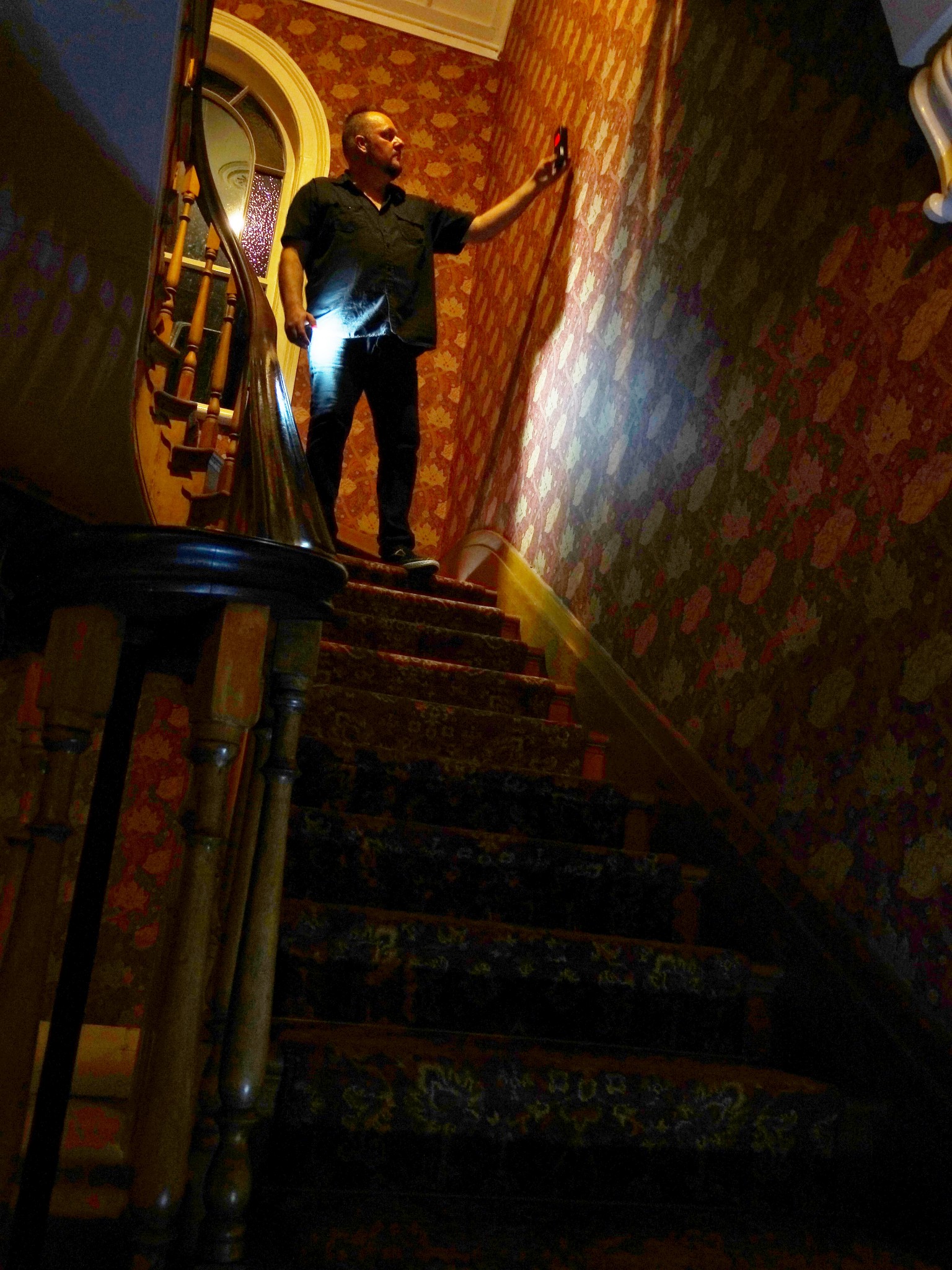 It was then I realised that the activity had happened 25 minutes after my head had hit my pillow and played out for around 12 minutes. What follows is a series of noises that suggest a heavy cabinet being dragged across a wooden floor, perhaps draws being slid open, scuffing and sliding sounds, what could possibly be footsteps and a couple of loud clunks very similar to that made by a metal bucket. Then there’s the physical and visual action. A small, unknown moving ‘object’ is seen casting a shadow, through the stair railings onto the stairs. It appeared to be blocking the light behind it.