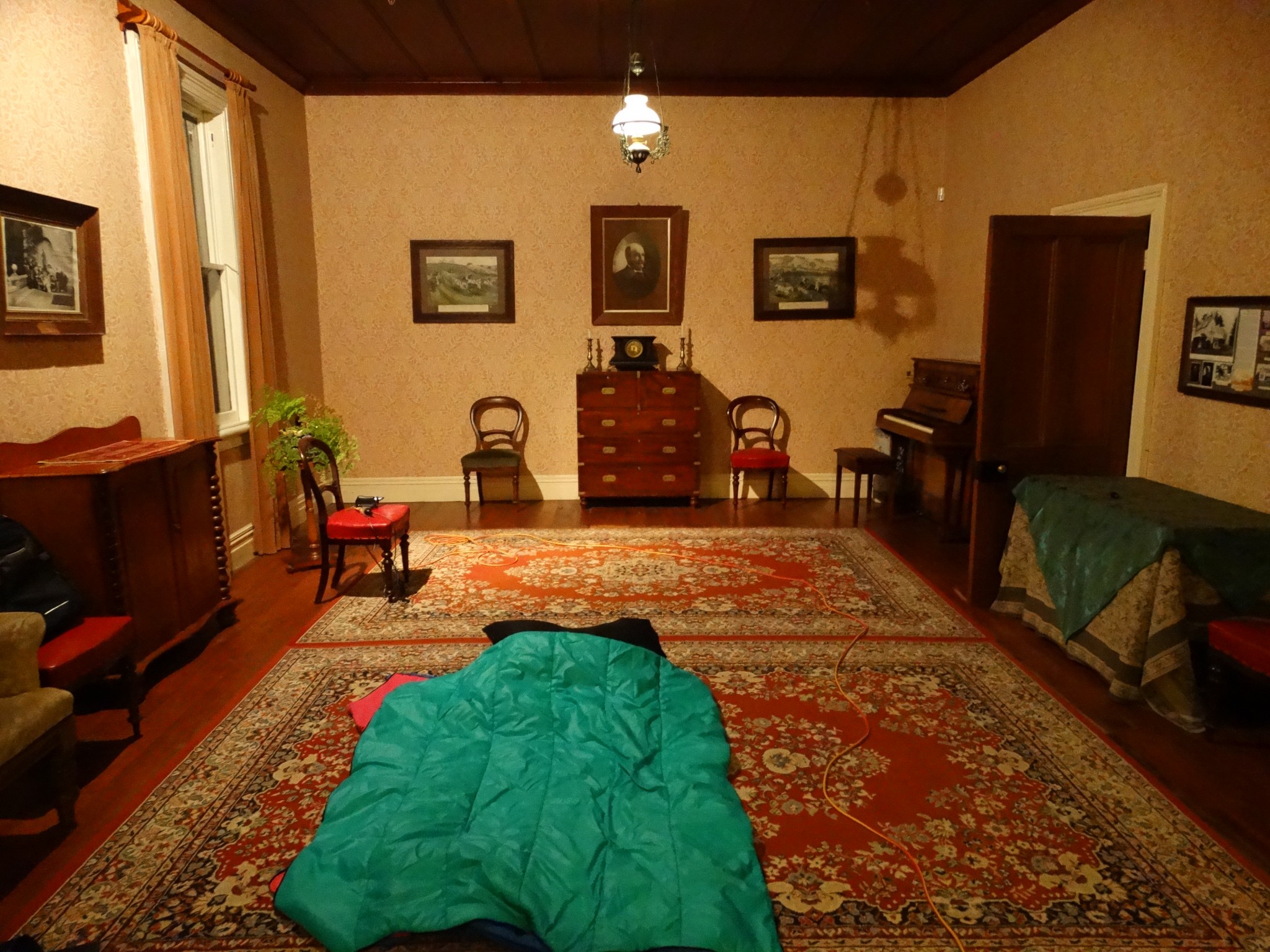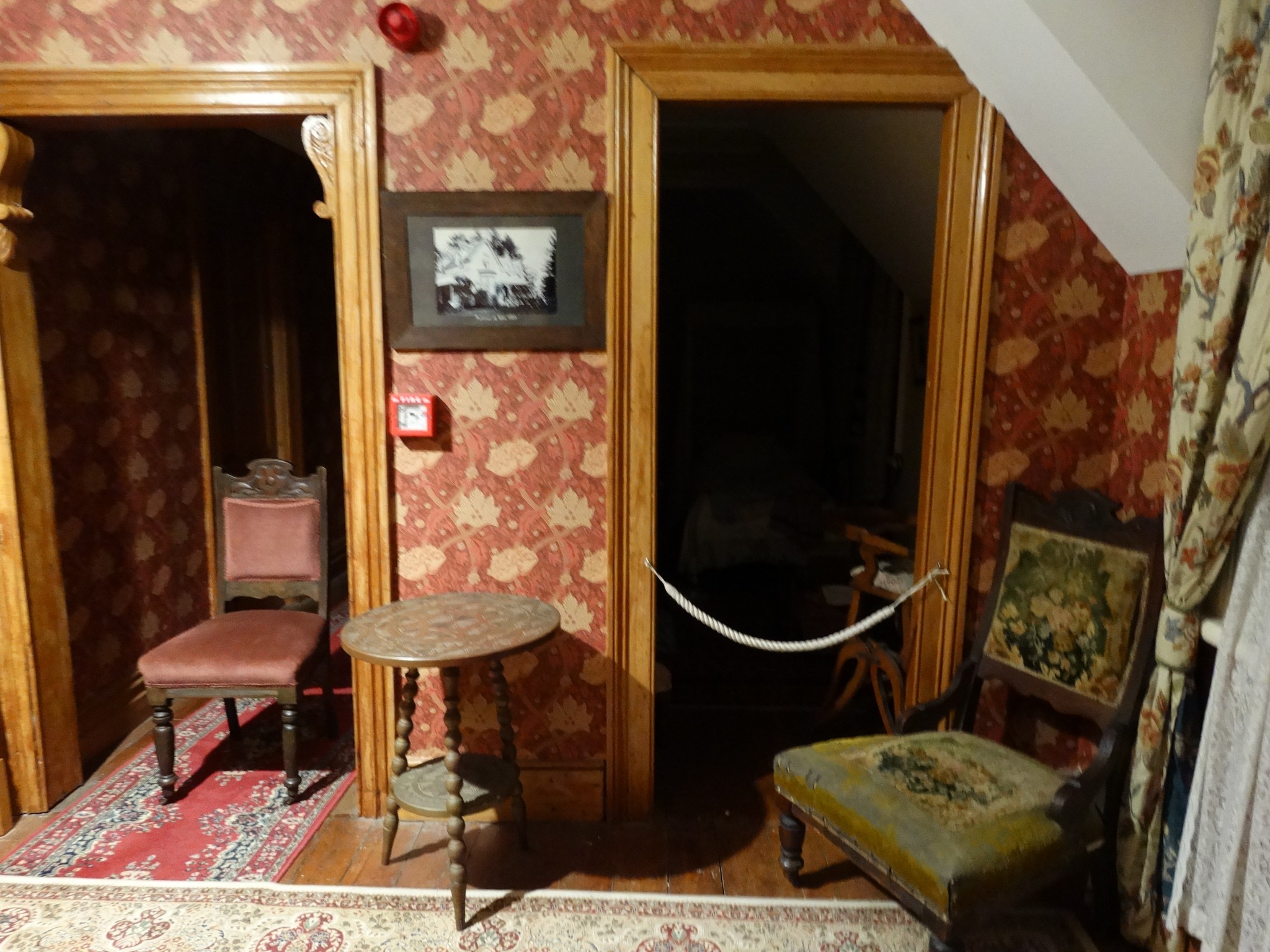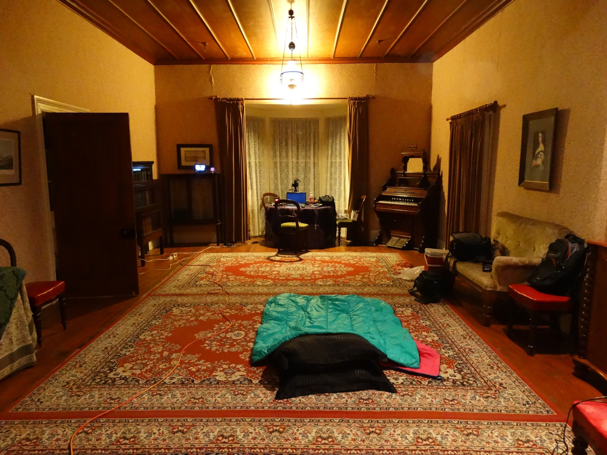 In addition, one team member reported seeing the movement of one of the curtains in the main parlour of the house. The curtain was large, at least three metres tall and made from a heavy velvet material. While it was a windy day, and the window behind the curtain had been removed for renovation (the gap left covered in tarpaulin), the movement seen appeared to be a deliberate tug, rather than movement caused by the wind.