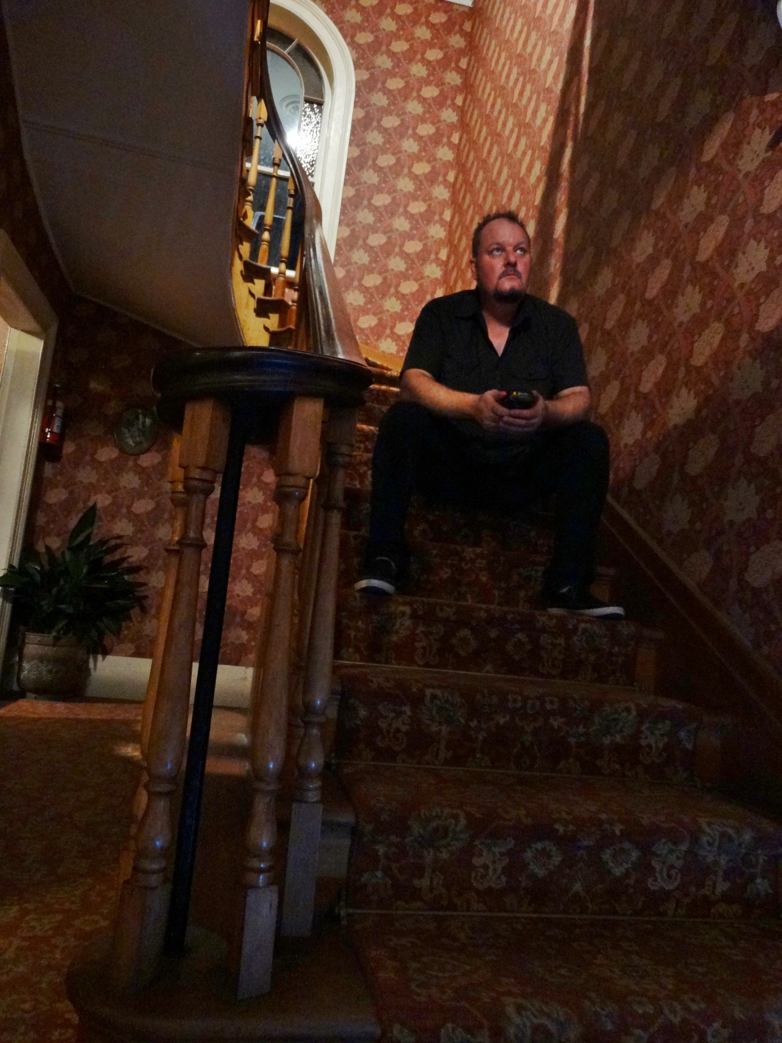 It’s weird. If you stare at a bunch of shadows long enough, they start to merge together and move. I’m looking at the shadows cast onto the stairwell wall.
