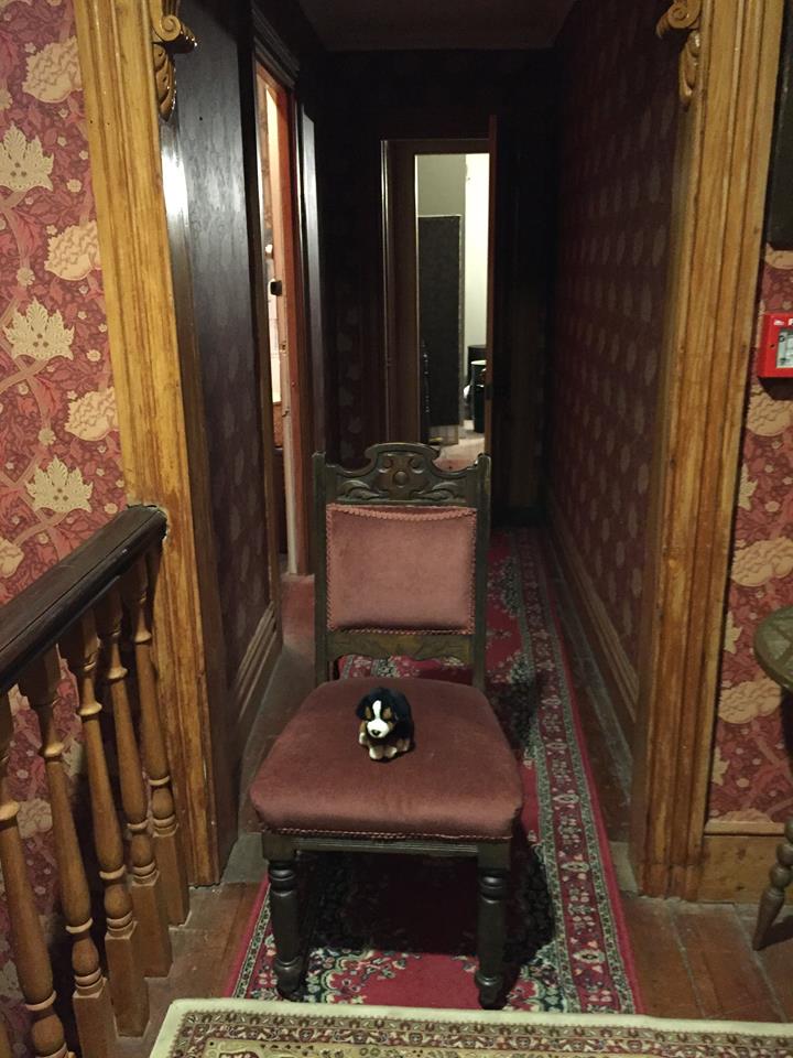 We spent some time setting up the DVR cameras. These were placed at the bottom of the staircase, looking up the stairwell, in the hallway at the top of the stairs, in the room containing filing cabinets and a metal bin and in the main living room. At the top of the stairs I also placed a toy stuffed dog on a chair as a trigger object but this hadn’t moved by the morning.