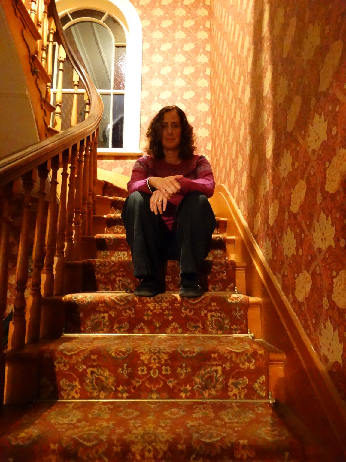 At 9.45 pm I decided to do a communication session. I sat on the lower stairs. I asked if Serita was there. I asked lots of questions about the house and who was there, whether they owned the house or had worked there. I asked for names. I asked whether they minded all the people who had stayed overnight recently. I picked up what sounded like male and female voices. I hear what I think sounds like the following: