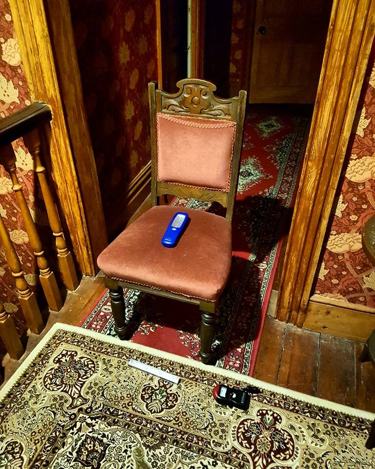 Various trigger objects were used throughout the night including Marks blue torch placed on a chair in the upstairs hallway (that was central to activity recorded during his own investigation). A slinky placed midway on the staircase, playing cards semi-dealt and placed on the small table upstairs and lettering dice that were placed randomly in the downstairs hallway. All trigger objects were placed in view of a camera. On inspection of the trigger objects early the following morning it appeared that nothing had been moved or altered from their original places.