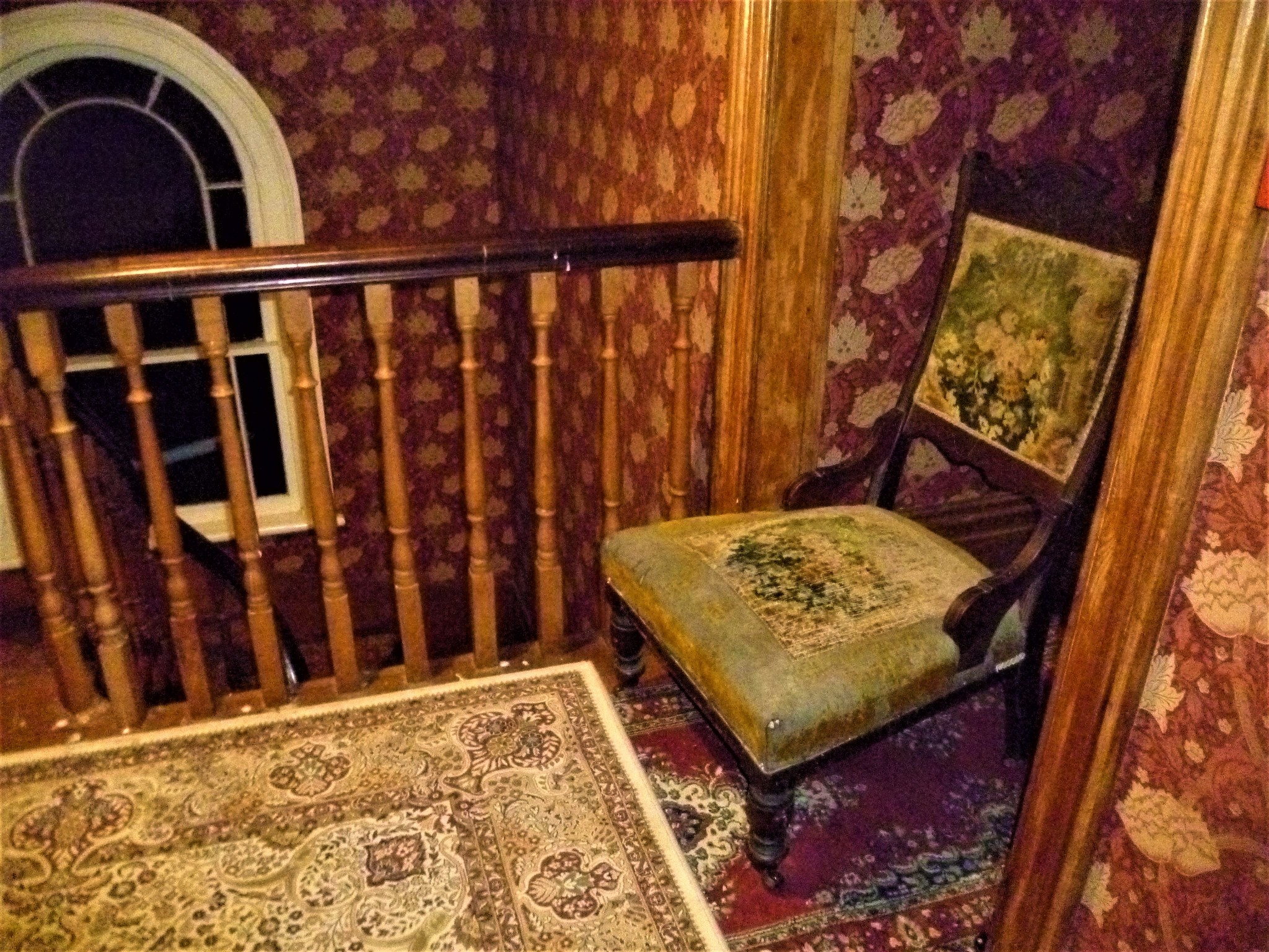 A lady wearing a white dress has apparently been seen on the stairs. The sound of objects being moved and or dragged across the wooden floors.