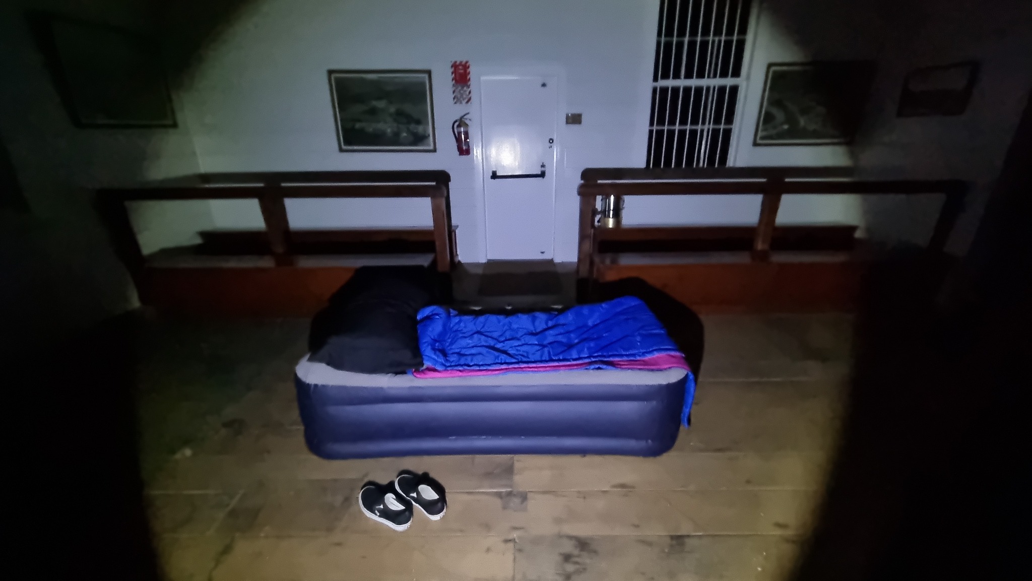The last few pictures are of Mark and Sam’s sleeping arrangements for the rest of the night: Mark in the Courtroom and Sam in Hedley House. We stayed up a couple of hours investigating, then slept the last few hours before packing up and heading out for breakfast.