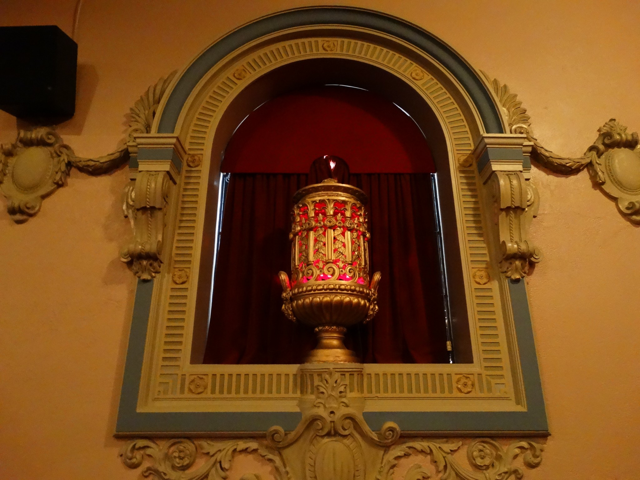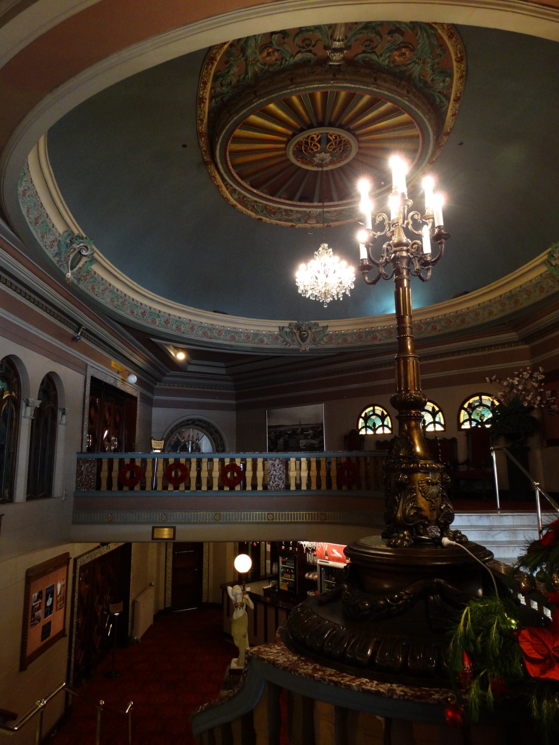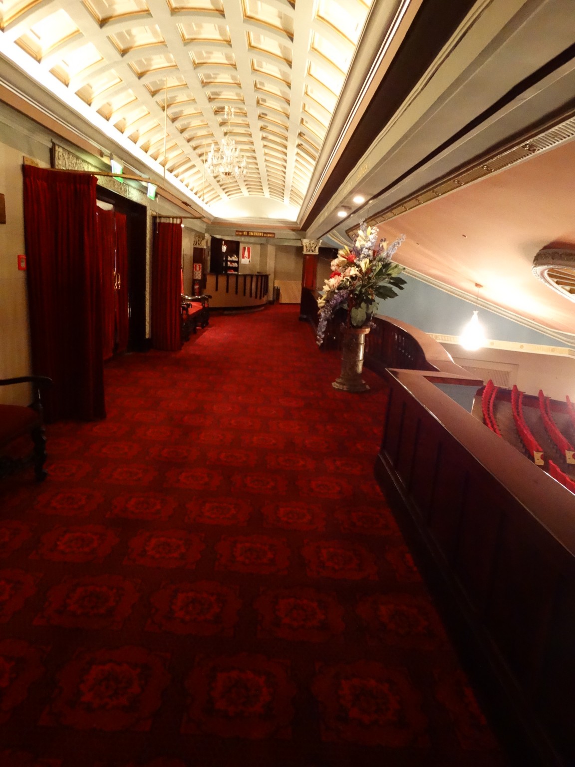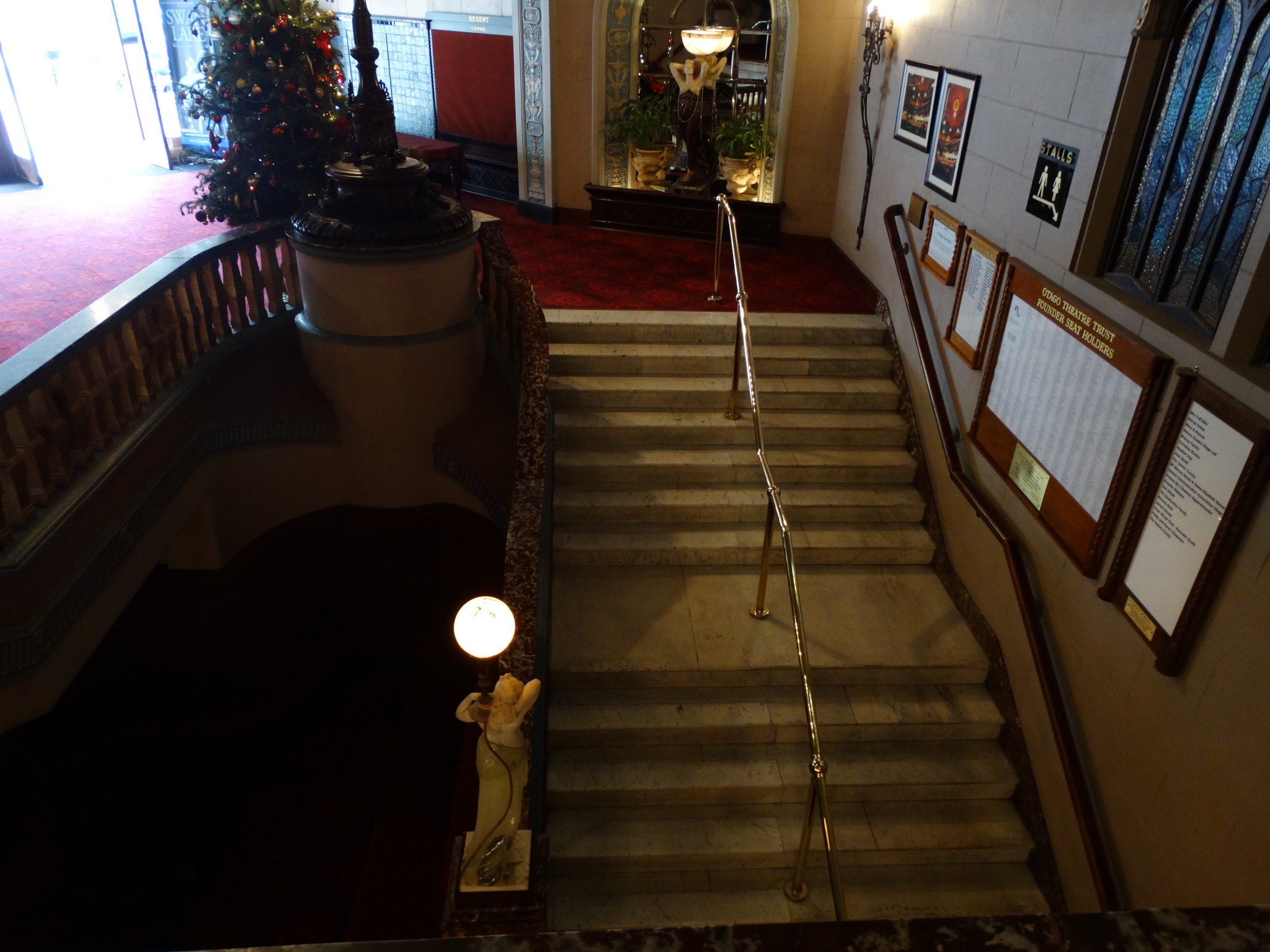 Originally a 2,000 seat cinema the Regent opened on 1 June 1928, and the interior is elaborately decorated in a revived baroque style, characteristic of the super cinemas of the time. The design is a variation of Robert Atkinson’s for the 1921 Regent cinema in Brighton, England, which was demolished in 1974. There were comparable picture palaces in other cities in Britain and Australia, few of which now survive and, apart from the Dunedin building, none in their original form. (There was one in Brisbane which survived until recently, Regent Theatre (Brisbane), another in Sydney, Regent Theatre (Sydney) demolished in 1988, and a still existing but re-modelled structure in Melbourne, Regent Melbourne.) All these designs are descended from Charles Garnier’s for the Paris Opera, (palais Garnier) completed in 1875. The Regent’s auditorium succeeds in replaying the exuberance of the original in a very different time and space.