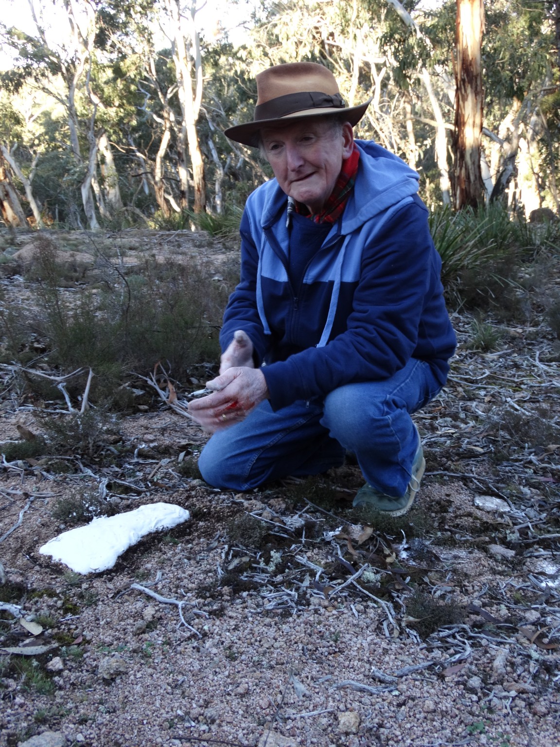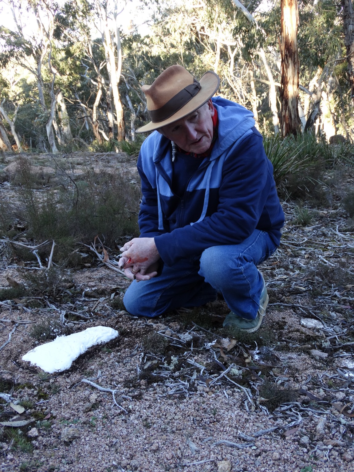 We also found a couple of interesting footprints in the dirt, which Rex, always the prepared one, got out his plaster and water bottle and made a casting of.