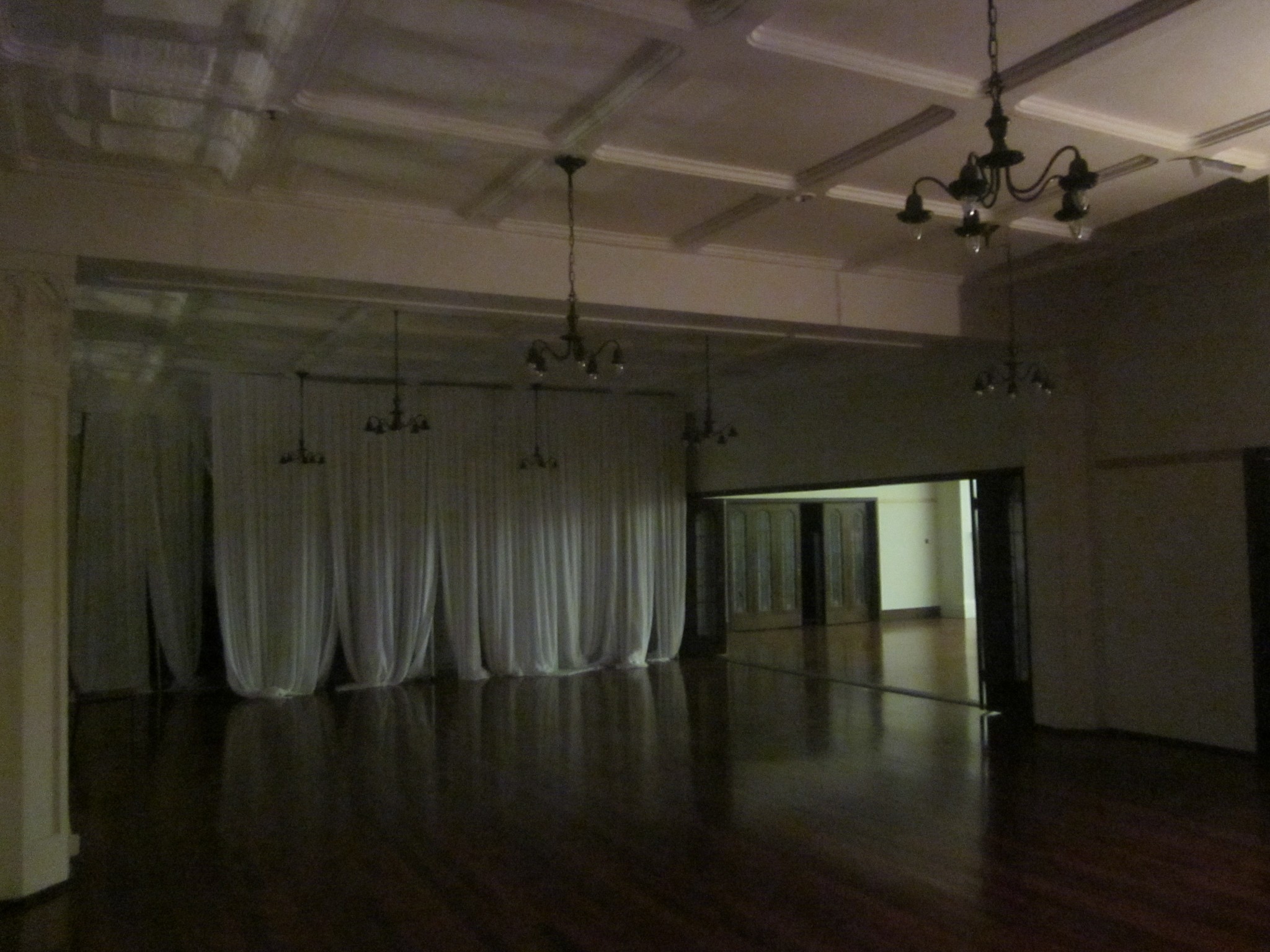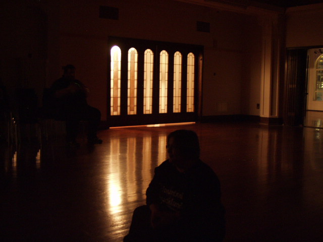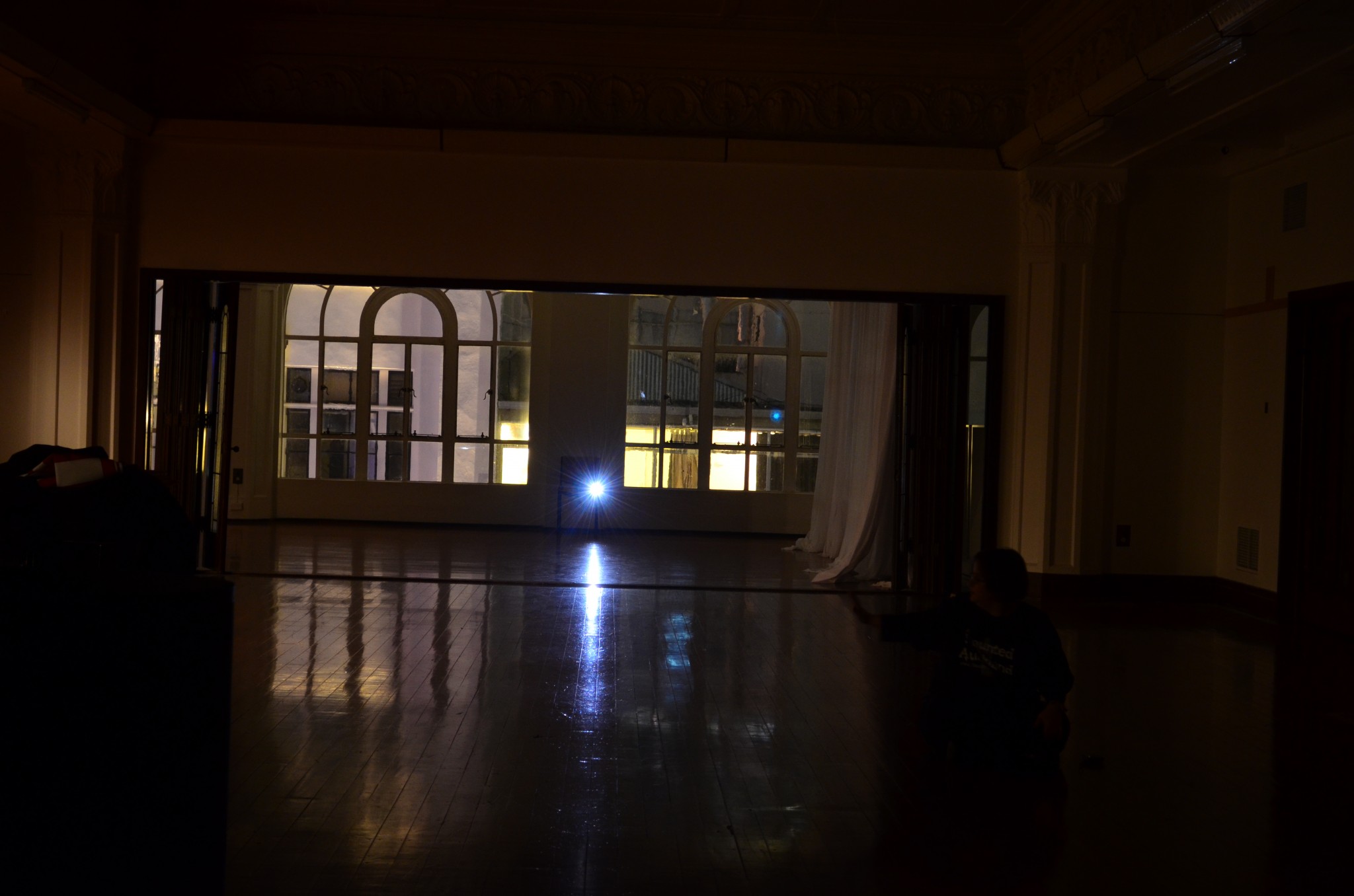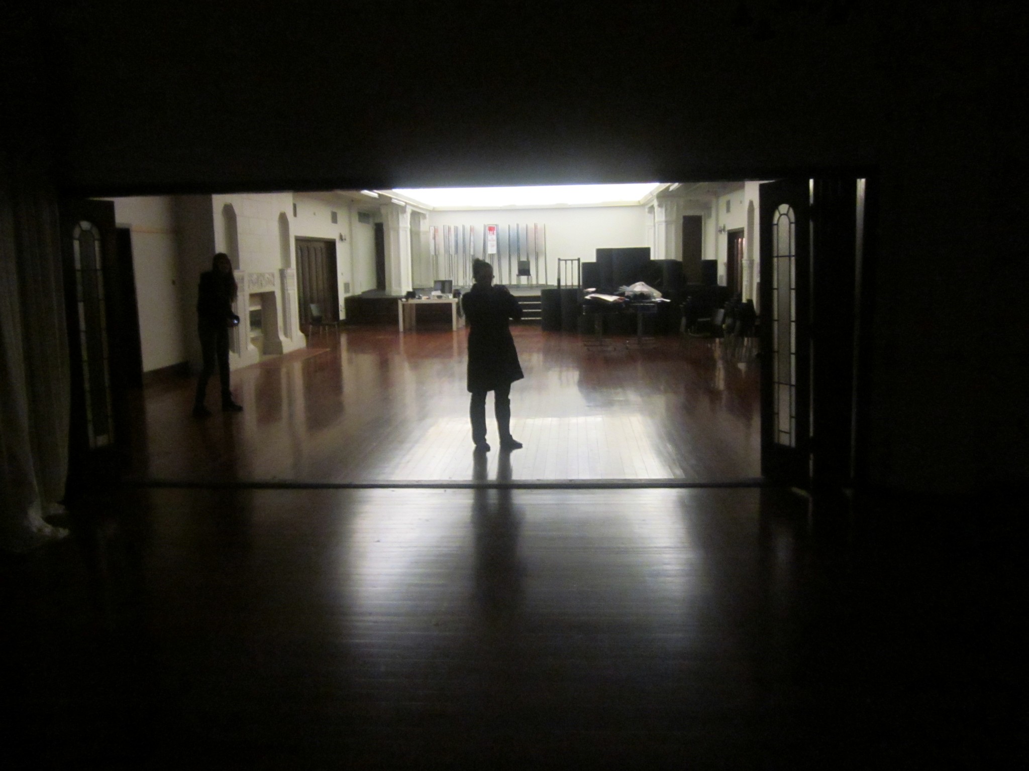 During our session of the upstairs top floor, our group conducted a full photographic, infrared video and audio sweep of the entire floor, including all the side rooms, hallway, back storage rooms and toilets. Mark, Tanya, Heather and Lauren held a couple of EVP (Electronic Voice Phenomenon) sessions, one in the main ‘dance hall’ room and a brief one up on the stage. Tanya commented during the EVP session in the main dance hall, that she could hear something coming from the other end of the room near the stage. Heather also thought she had heard a sound.