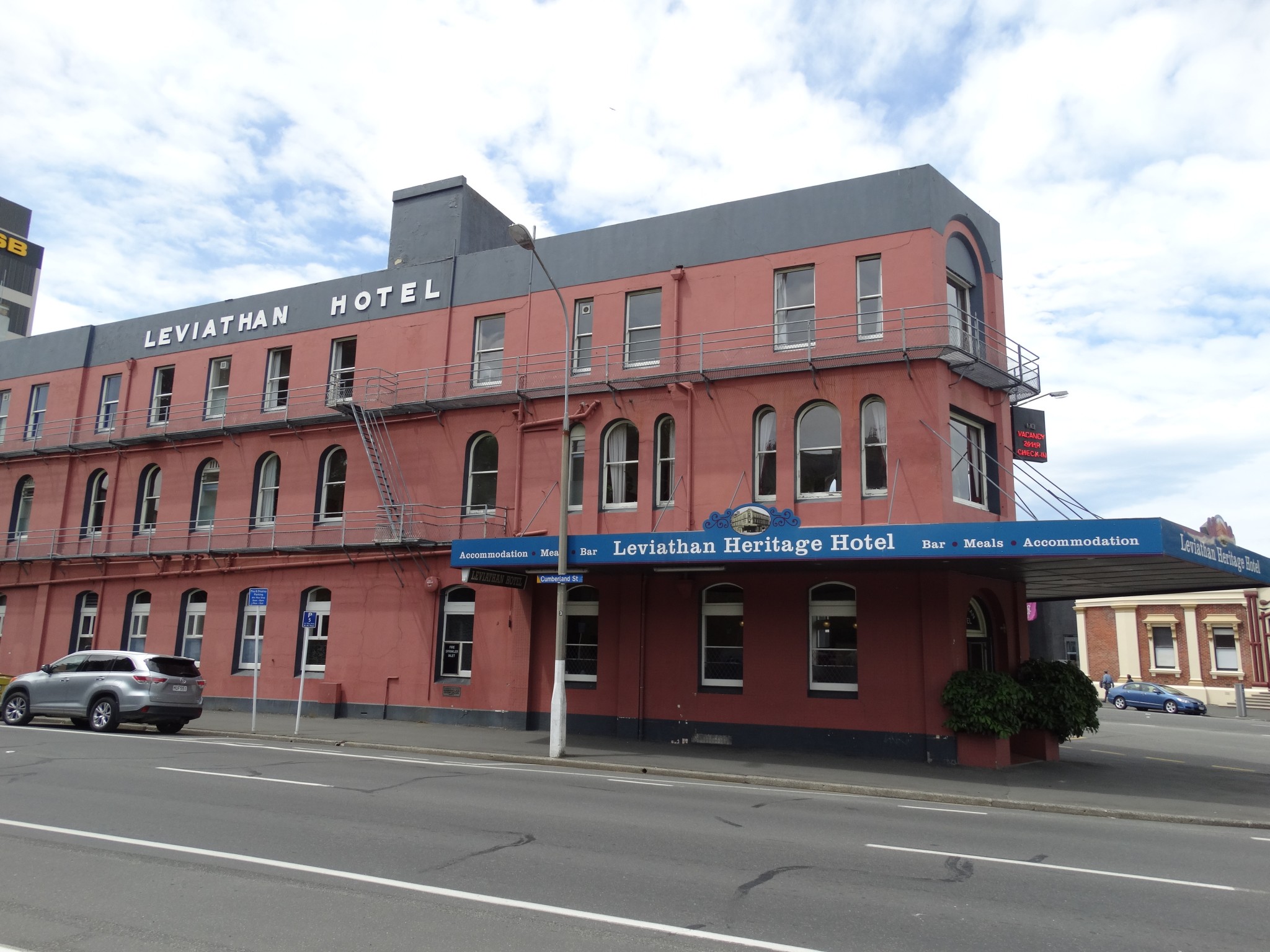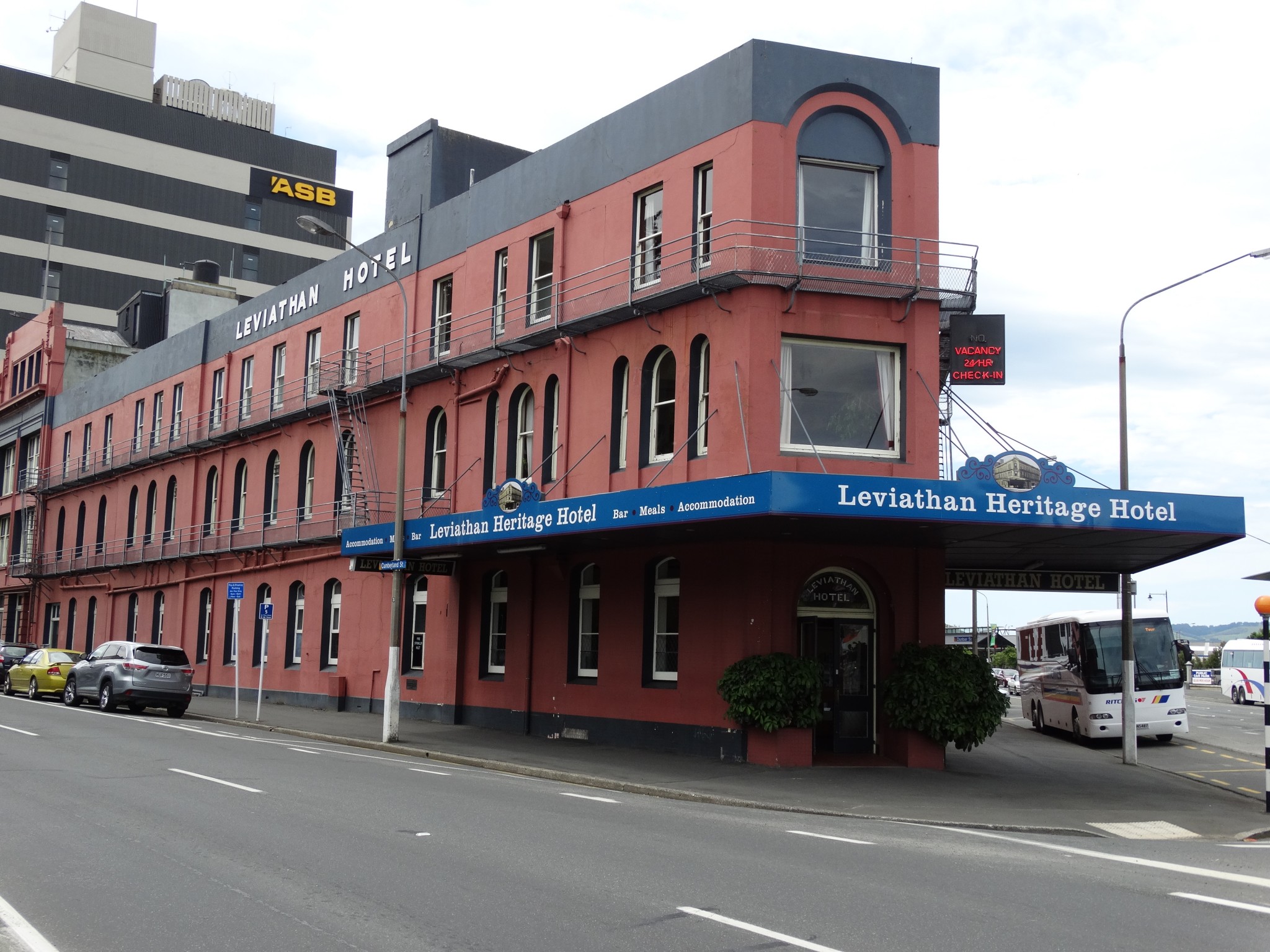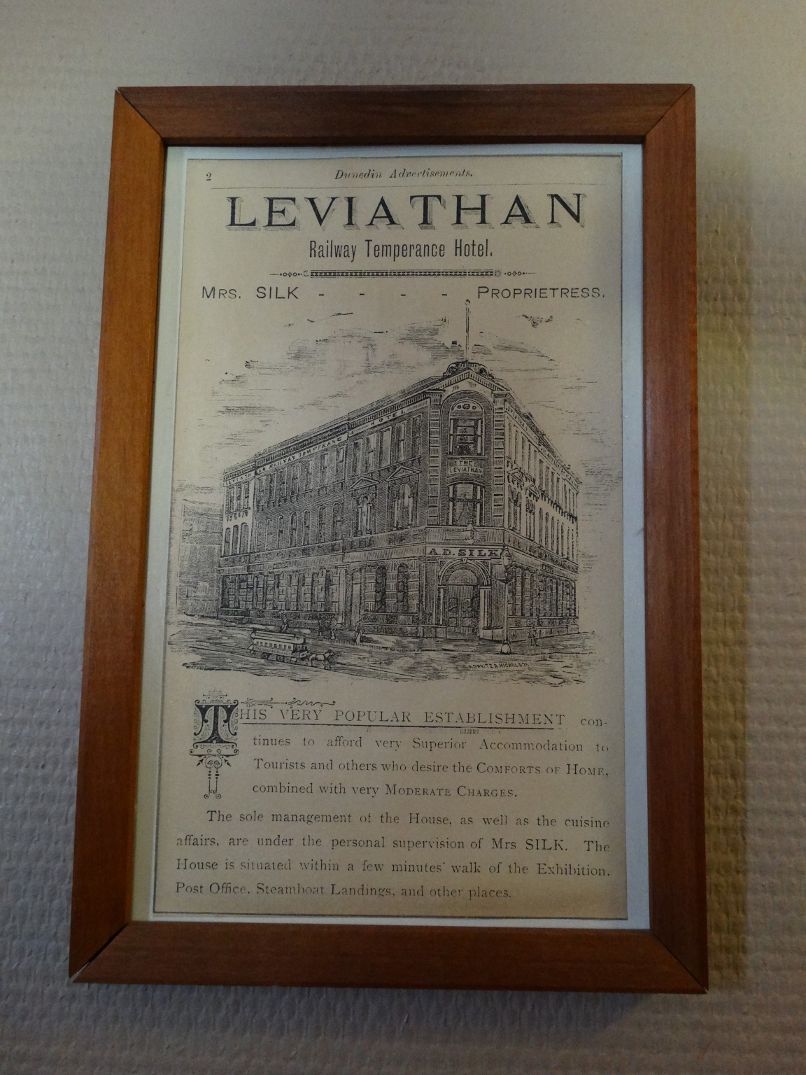At the time the Exchange area of Dunedin was the hustling hub of the city with many fine buildings situated nearby. The railway station, steamboat landings and tram terminus were all minutes away making the Leviathan Temperance Hotel, unquestionably the most advisable Hotel, in every sense, to stop at, according to newspaper cuttings of the 1890s. This area has always been a wonderful site for hotels because of its proximity to all forms of transport and its ample parking. (Another, now historical hotel nearby was the Terminus Hotel, now the Gresham.)
