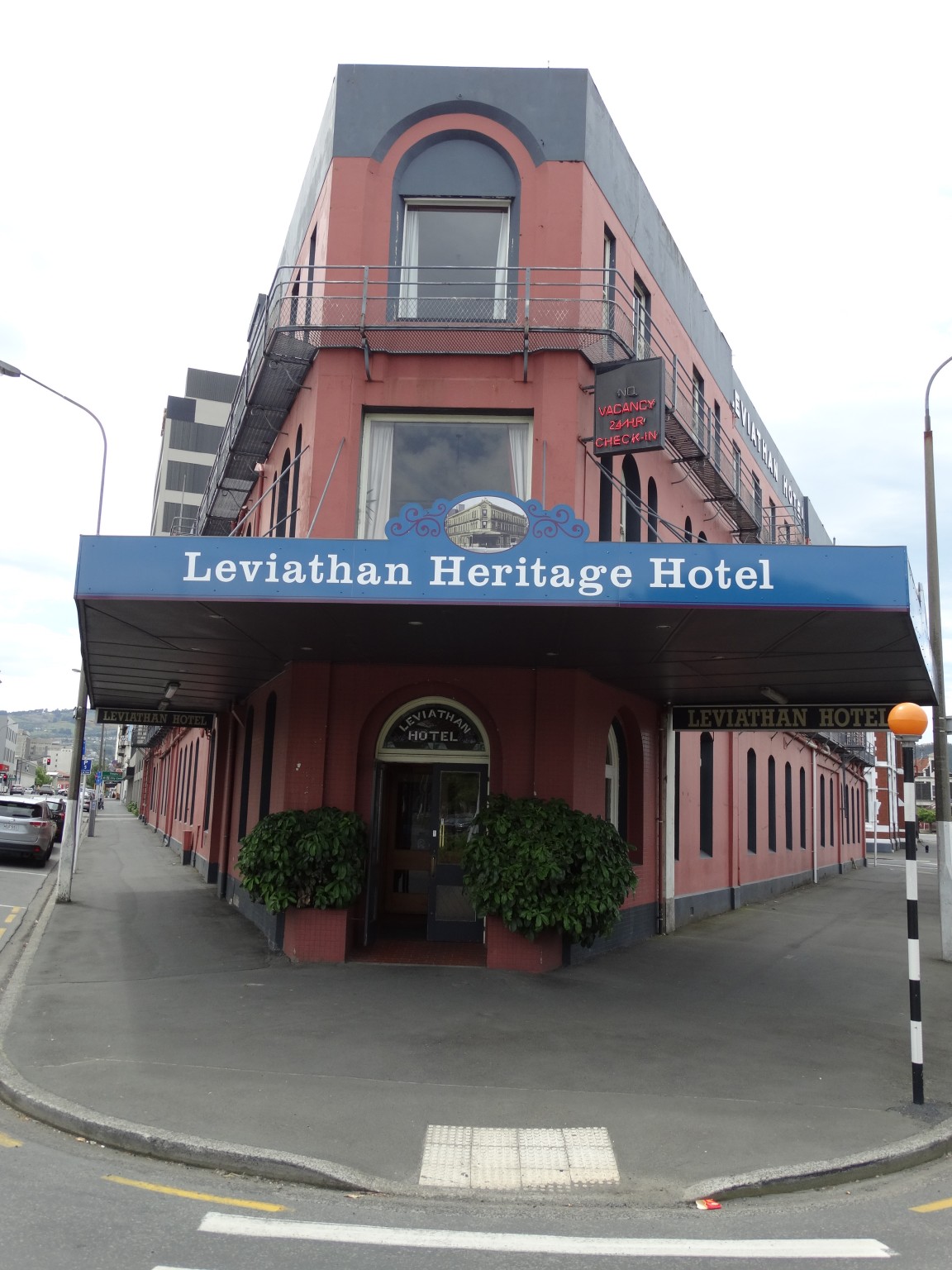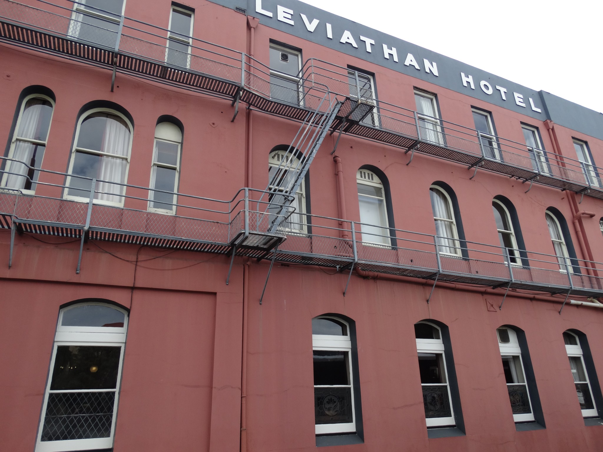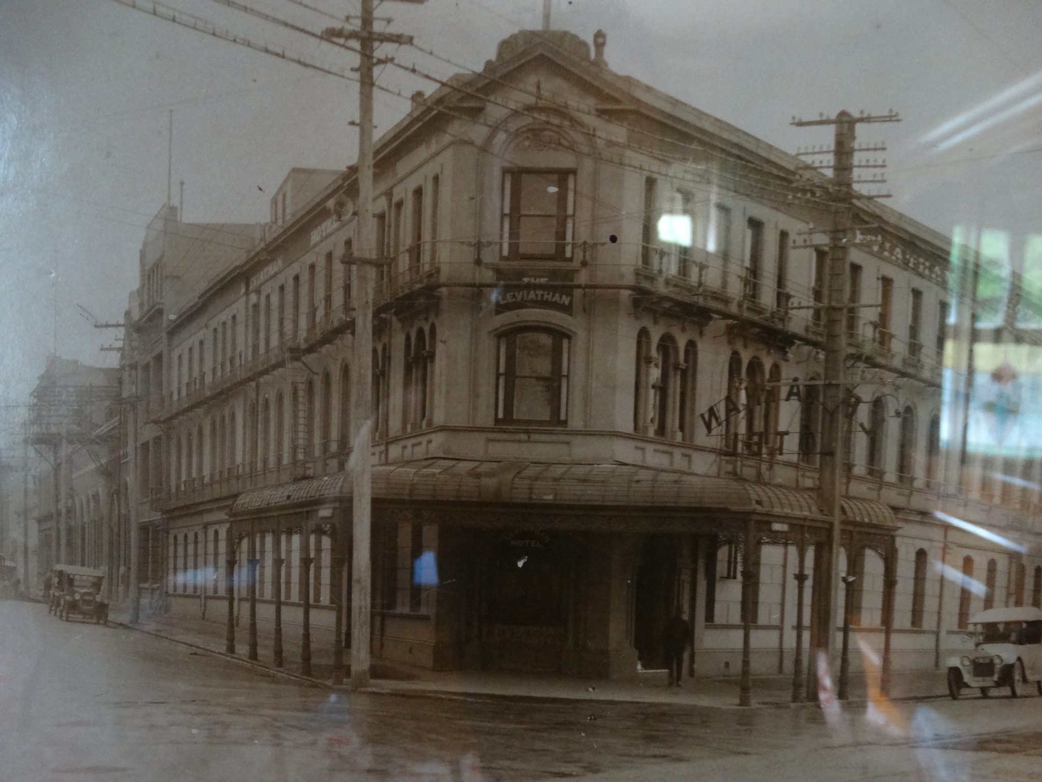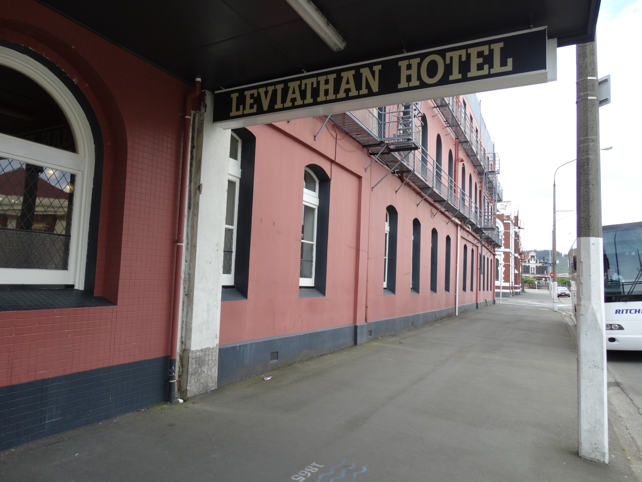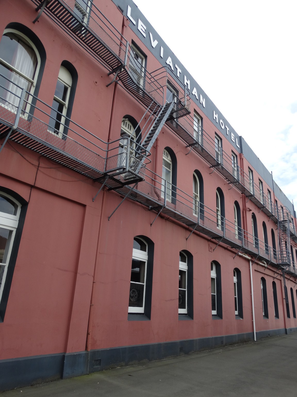 When the Leviathan Railway Temperance Hotel was built in 1884 it was situated beside the harbour, beside the original railway station, on land, which had been reclaimed from the harbour, with rock dumped during the flattening of Bell Hill. With 150 bedrooms, the Leviathan was then reputed to be the largest hotel in Australasia. The name Leviathan originates from the book of Revelation in the Bible and is used to describe a huge creature usually of the sea.